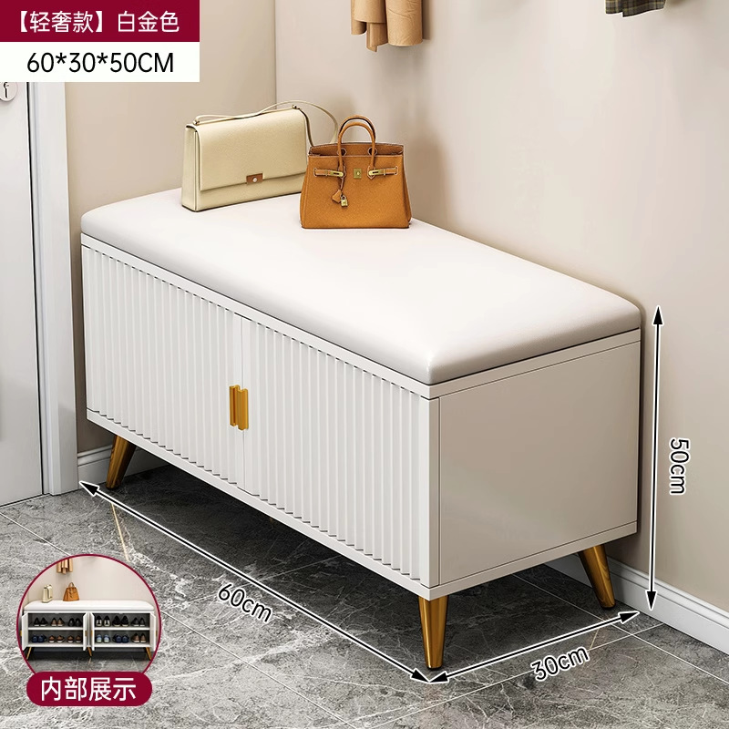 • [라이트 럭셔리 모델 - 캐비닛 도어 메탈 다리] 60cm 화이트 골드 + 가죽 시트 쿠션