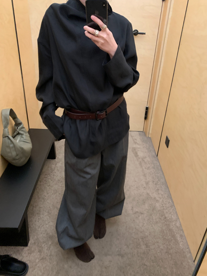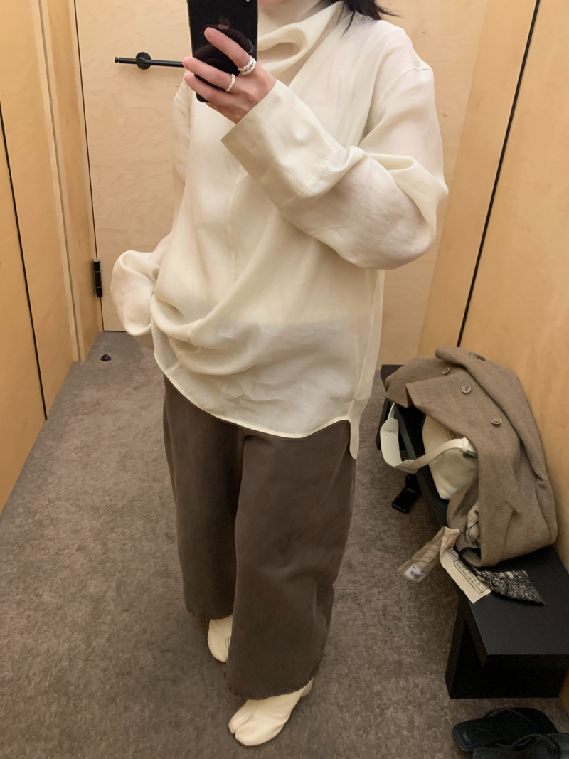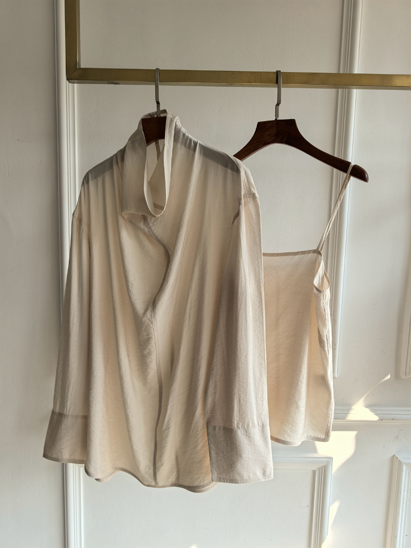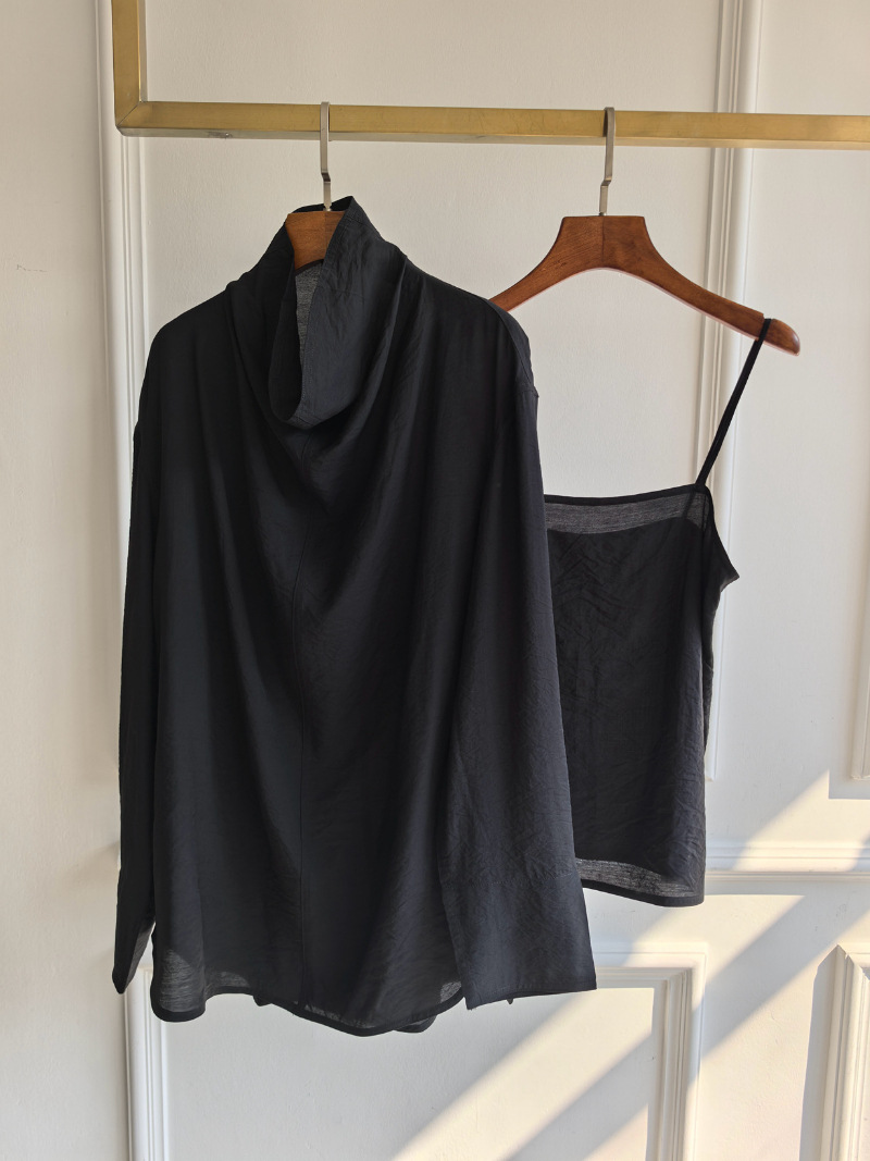 Longmei 노르딕 TOT 셔츠 서스펜더 투피스 세트 여성 2025 이른 봄 신작 캐주얼 루즈 긴팔 탑