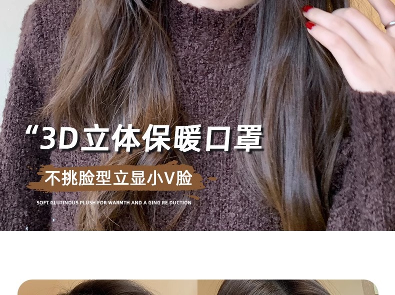 Da Li Maillard 가을과 겨울 따뜻한 마스크 방풍 추위를 타고 추적없는 슬리밍 수정 작은 얼굴 세척 가능한 보호스토어 가기