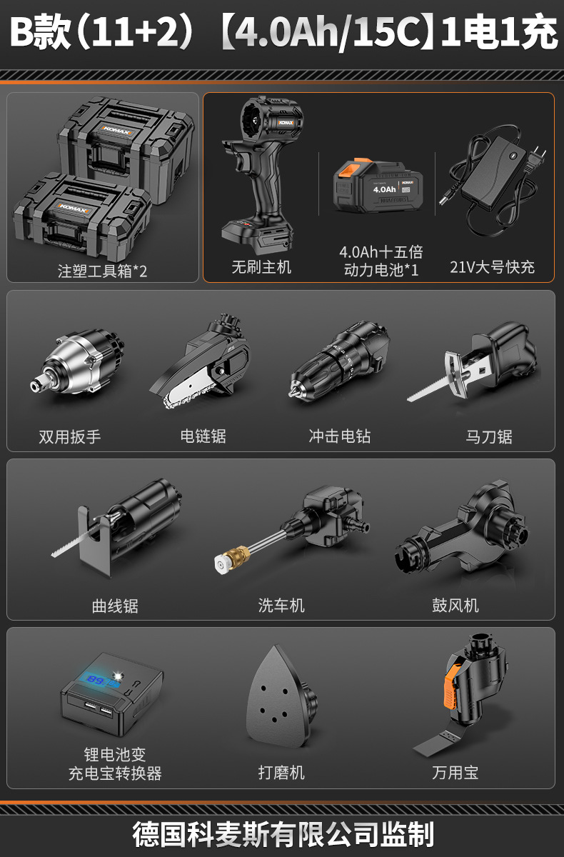 • 모델 B(11+2) [4.0Ah/15C] 배터리 1개, 충전 1개