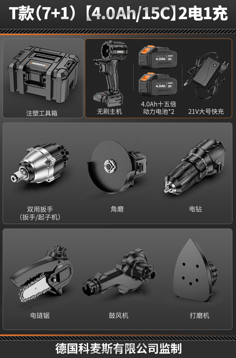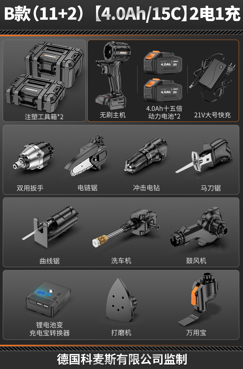• 【4.0Ah/15C】배터리 2개 및 충전 브러시리스 호스트 1개