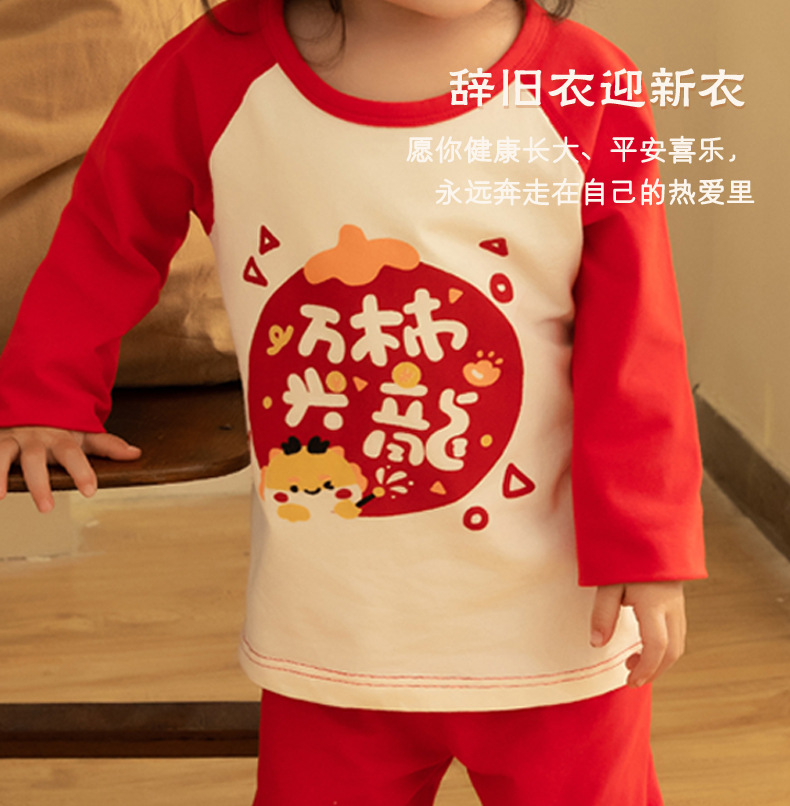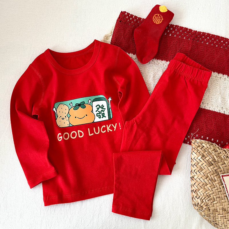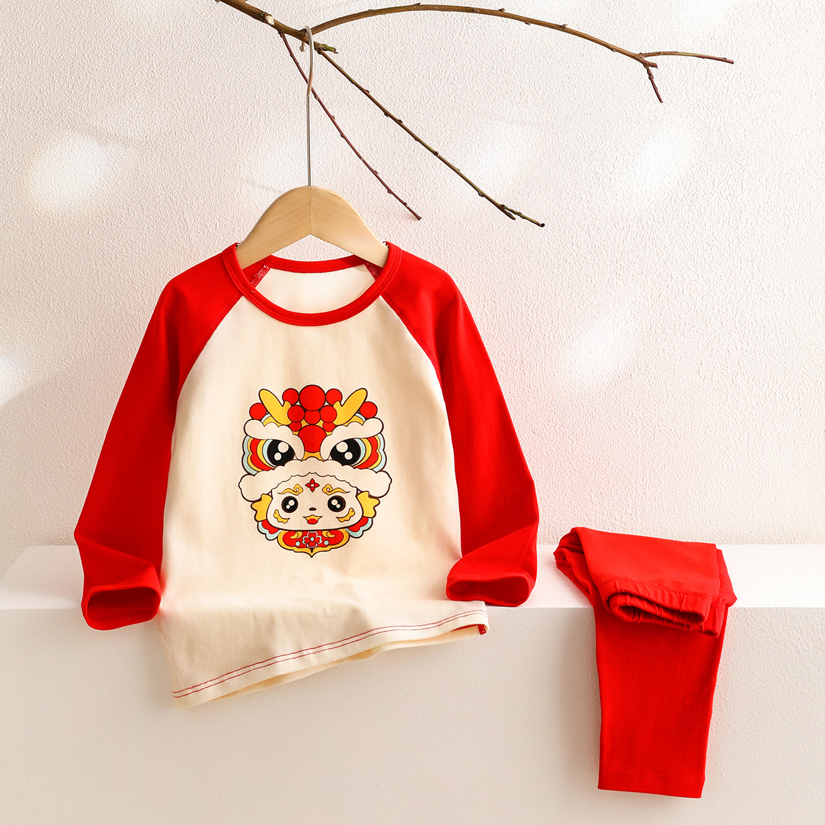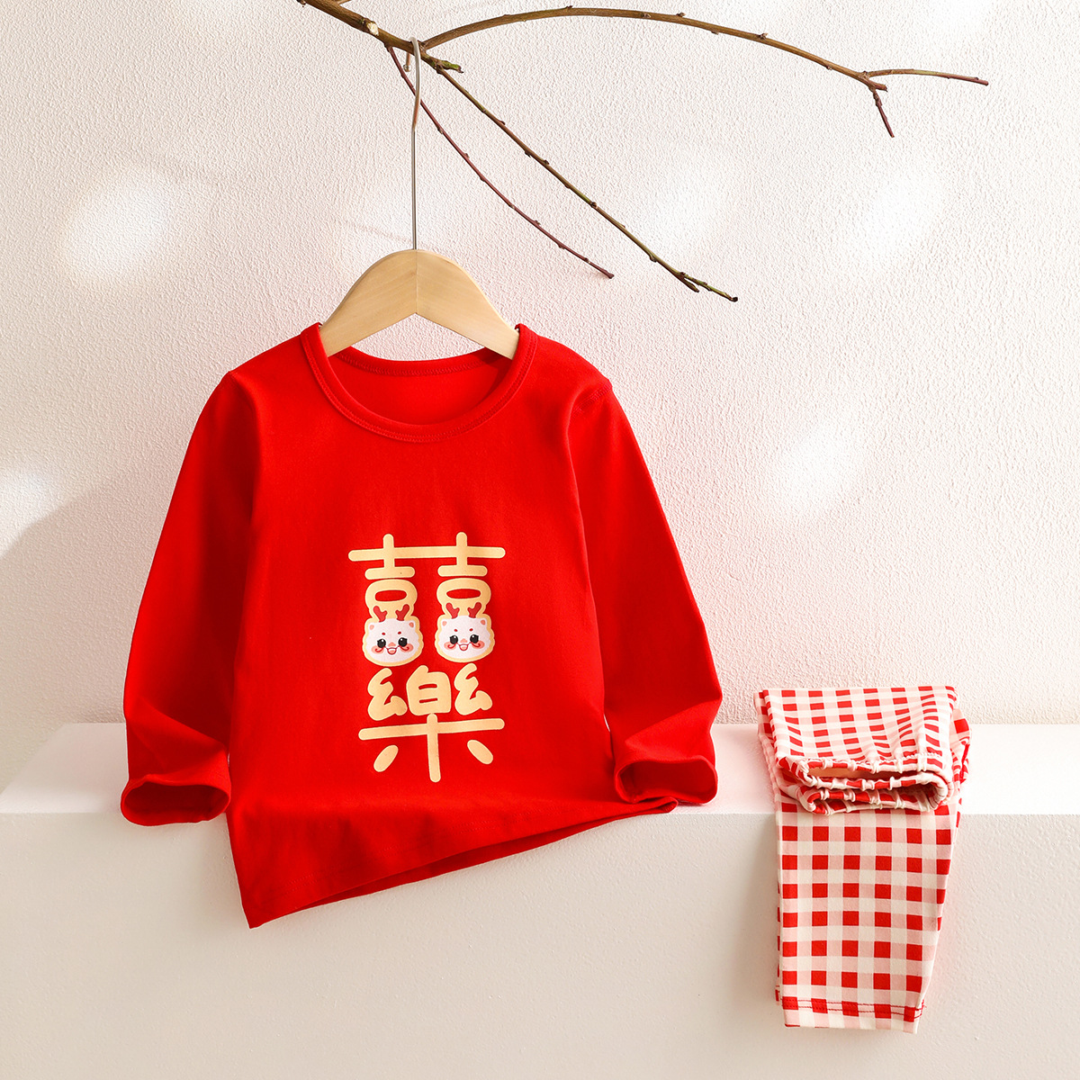어린이 세트 가을 옷과 바지 속옷 순수한면 레드 라이프 해 소녀와 소년 빨간 새해 가정 옷스토어 가기