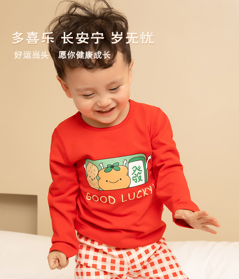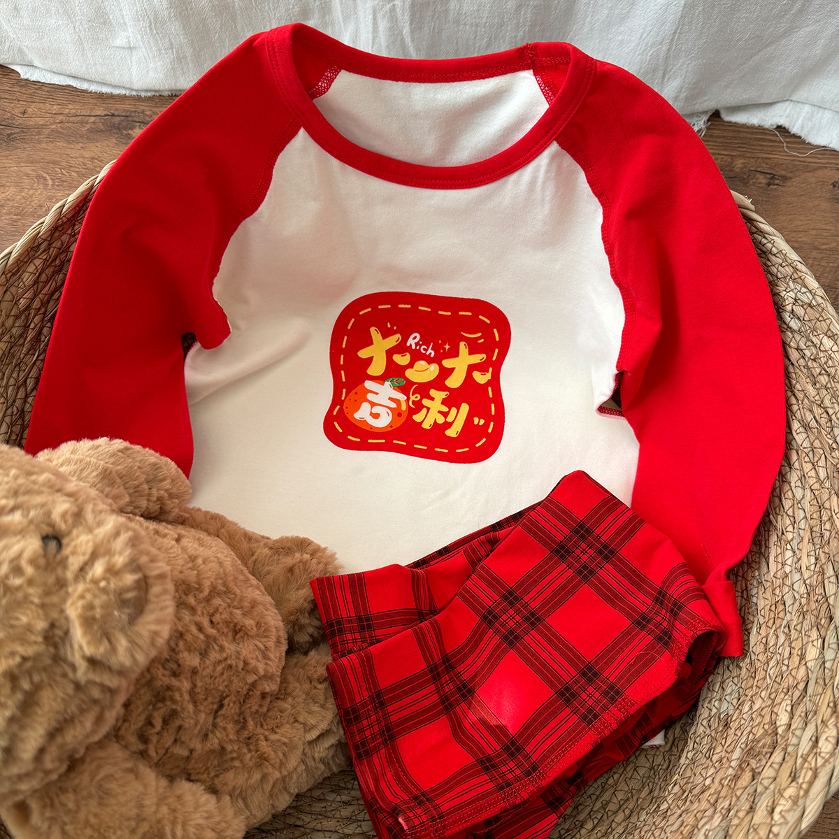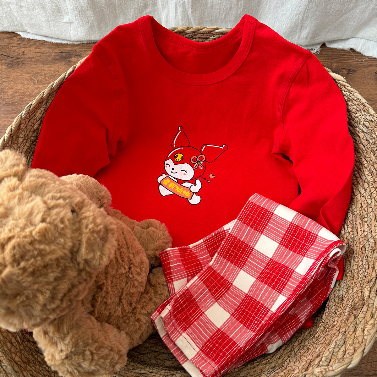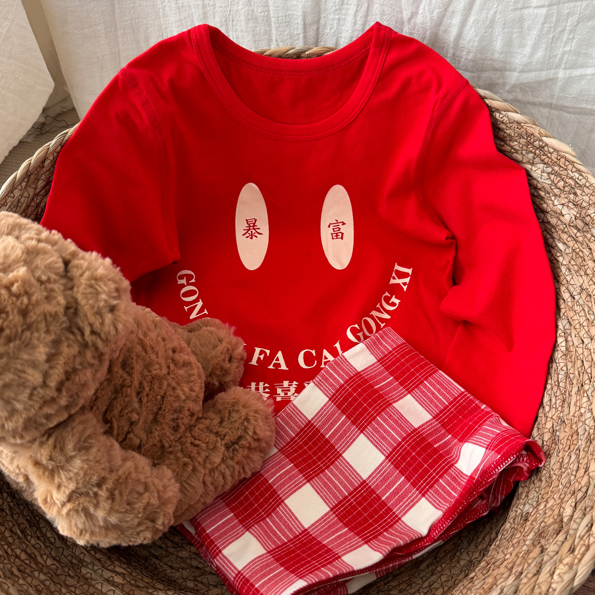 어린이 세트 가을 옷과 바지 속옷 순수한면 레드 라이프 해 소녀와 소년 빨간 새해 가정 옷스토어 가기