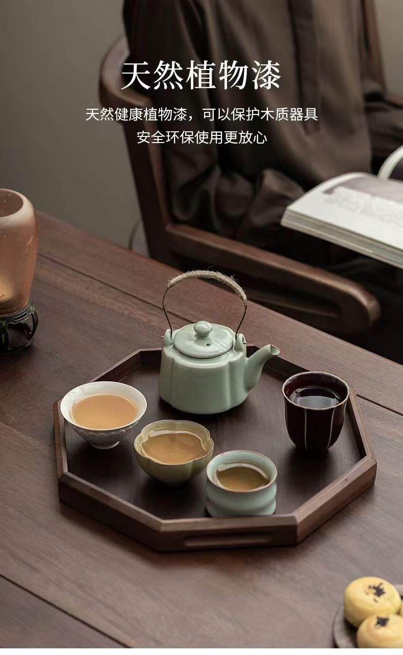 검은 호두색 차 트레이 원목 팔각형 접시 심플한 과일 접시 가정용 물컵 차 받침대 과일 간식 접시