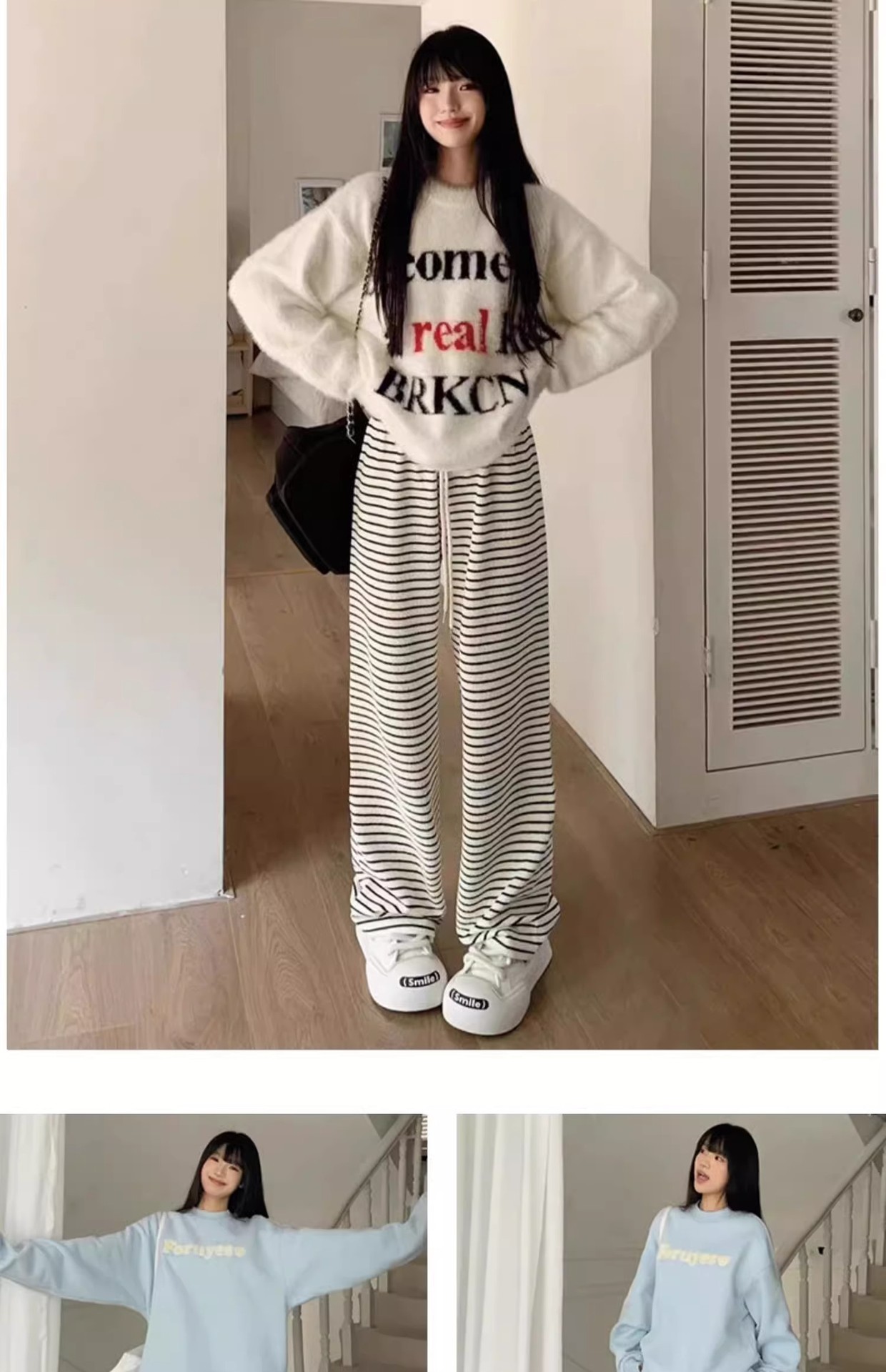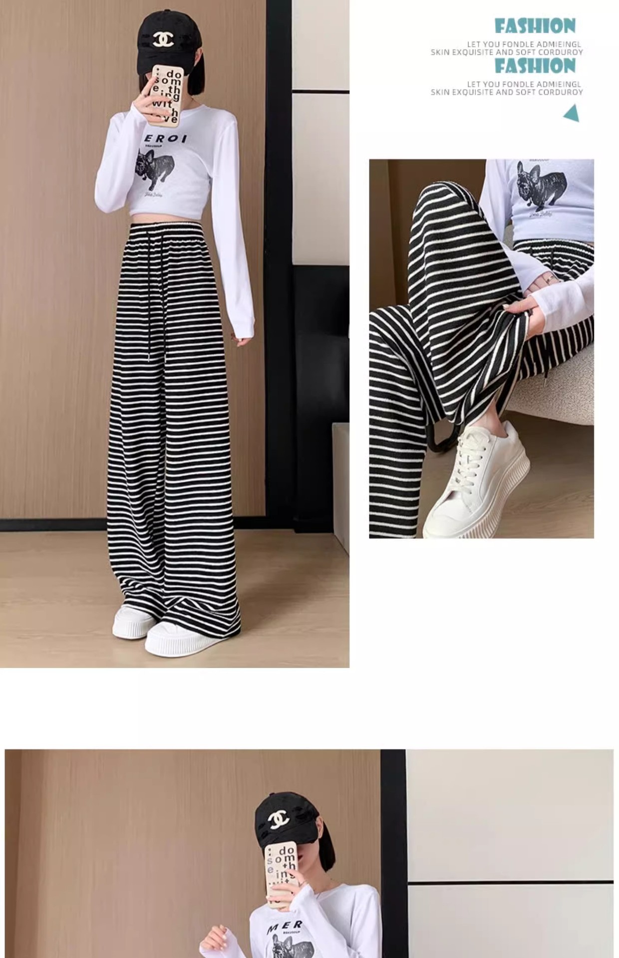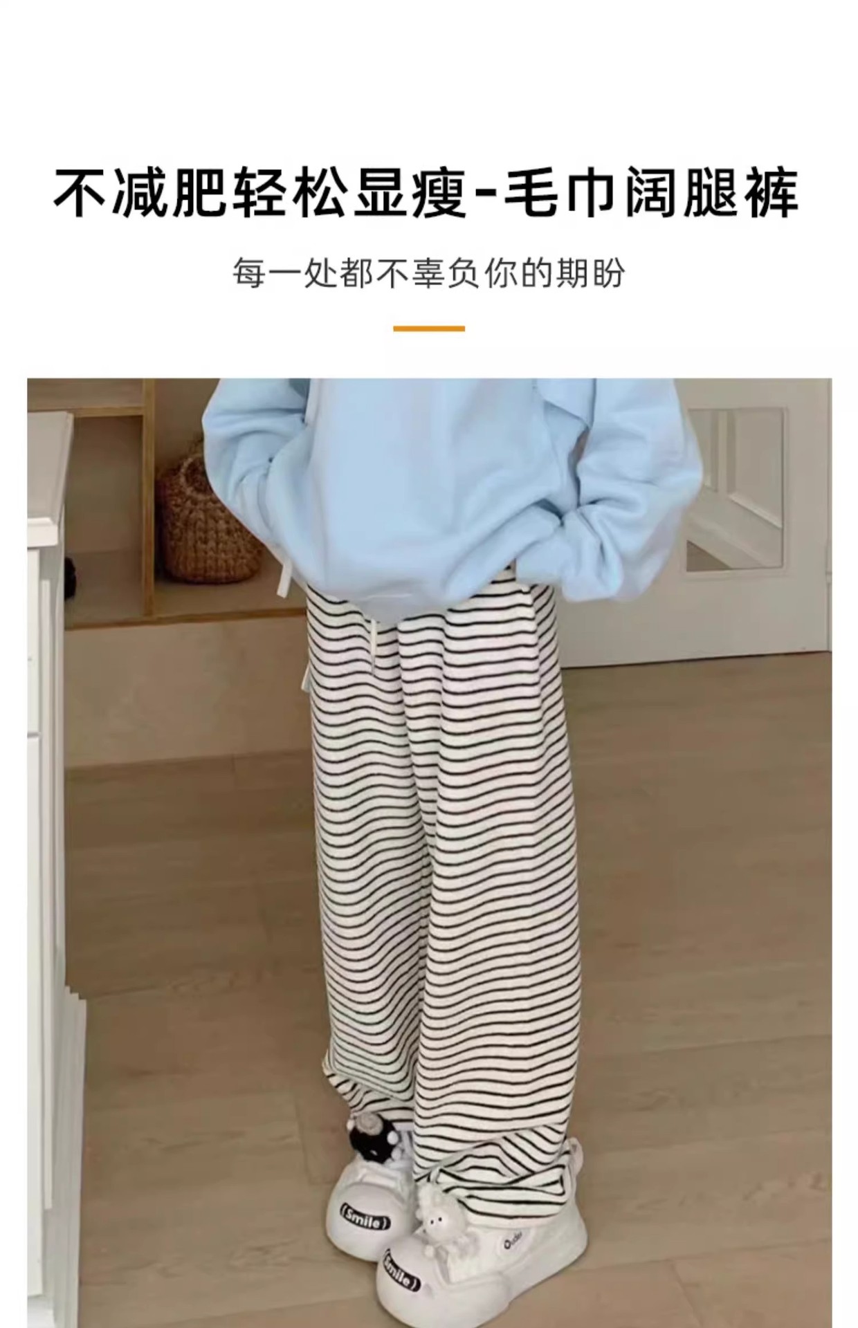 흑백 줄무늬 타월 팬츠 여성용 봄 가을 겨울 2024 신상 하이웨이스트 스트레이트 캐주얼 기모 와이드 팬츠 캐주얼하고 다용도스토어 가기