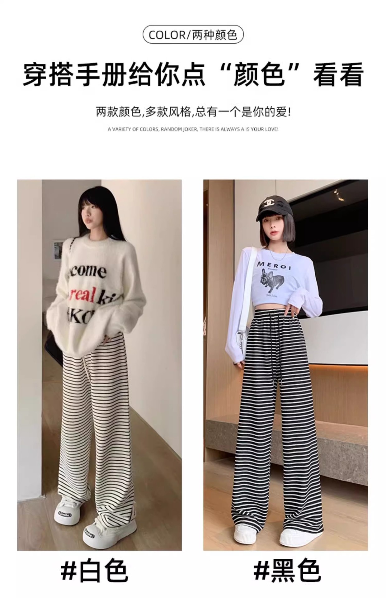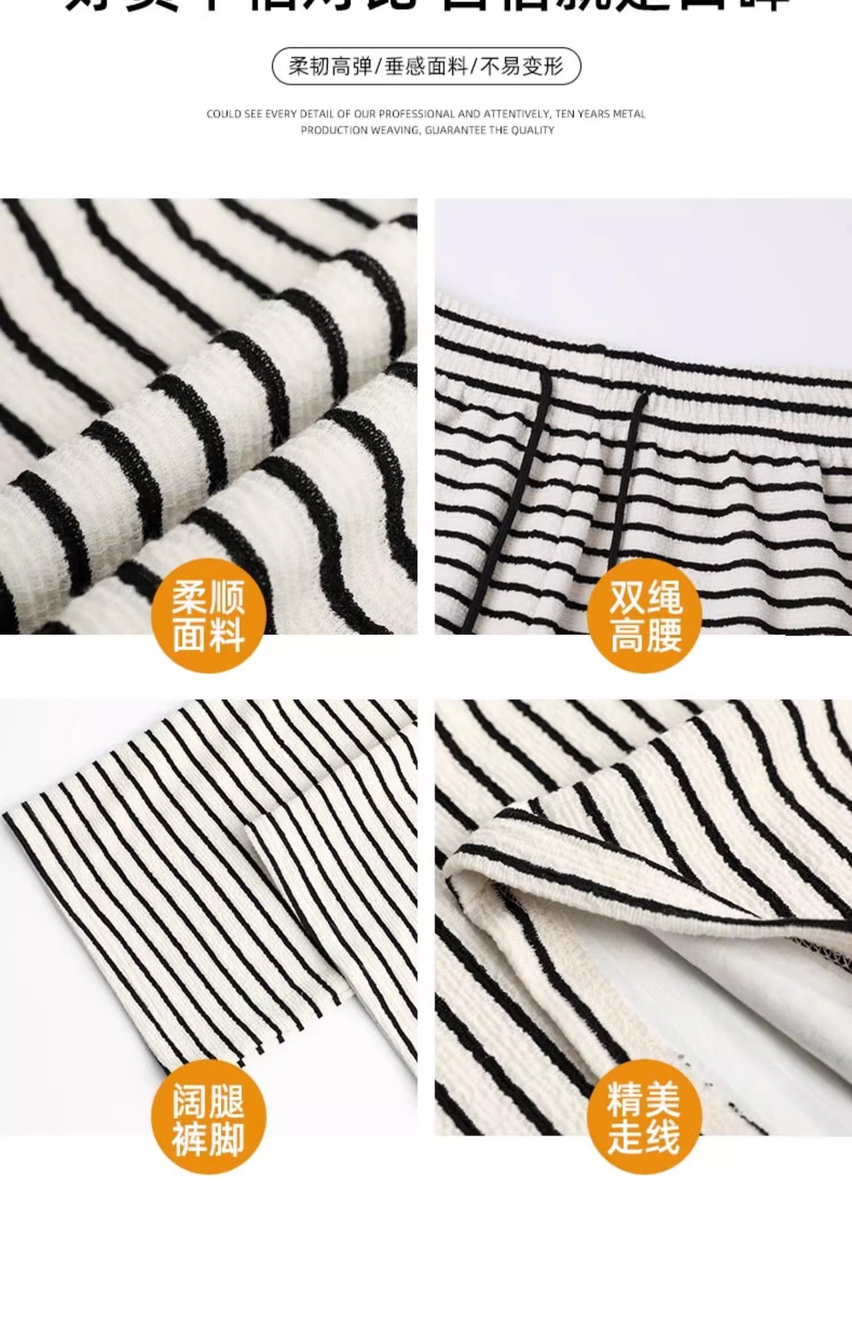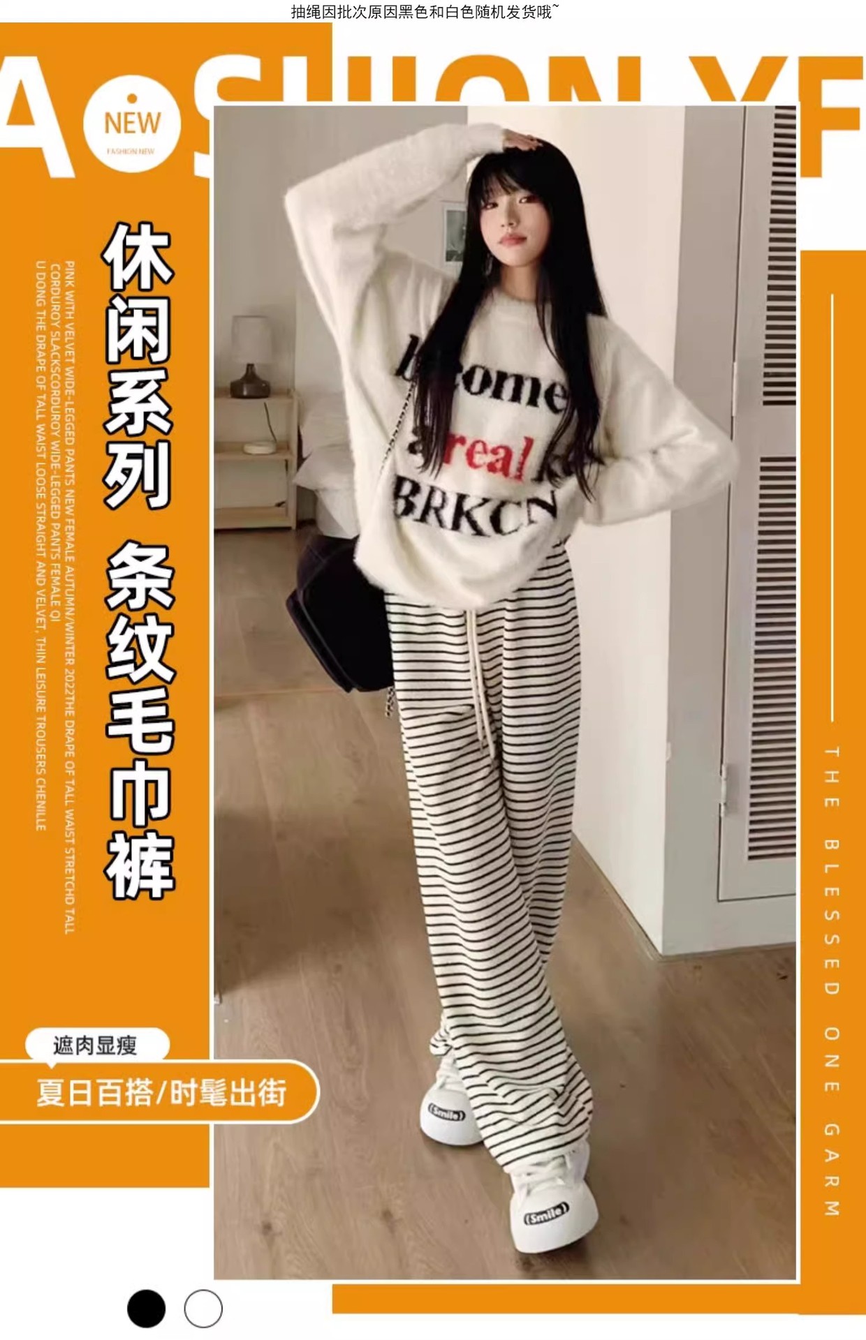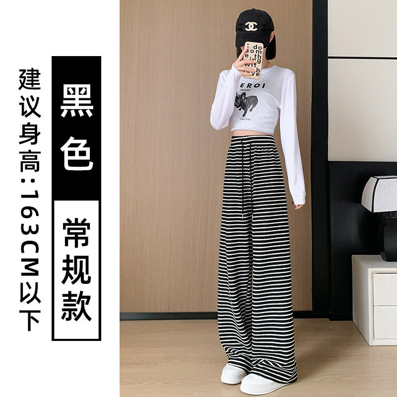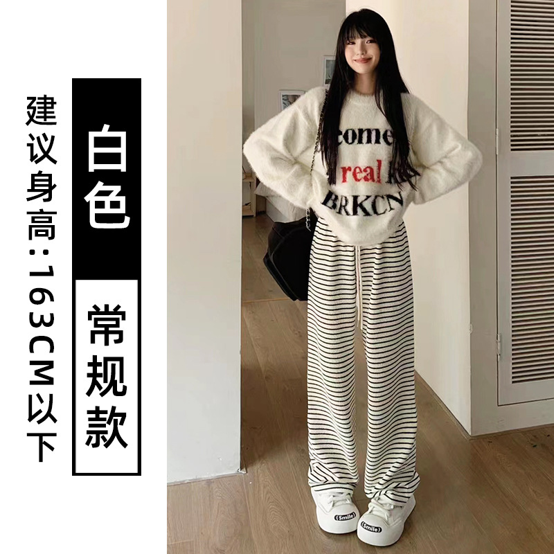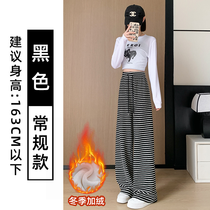 흑백 줄무늬 타월 팬츠 여성용 봄 가을 겨울 2024 신상 하이웨이스트 스트레이트 캐주얼 기모 와이드 팬츠 캐주얼하고 다용도
