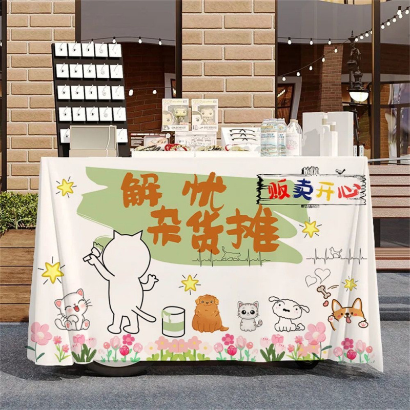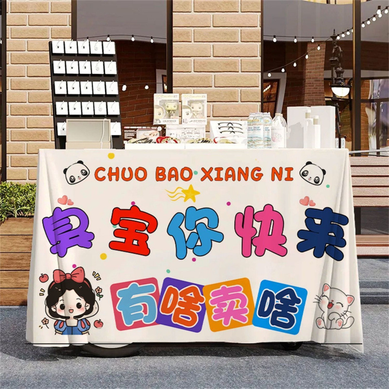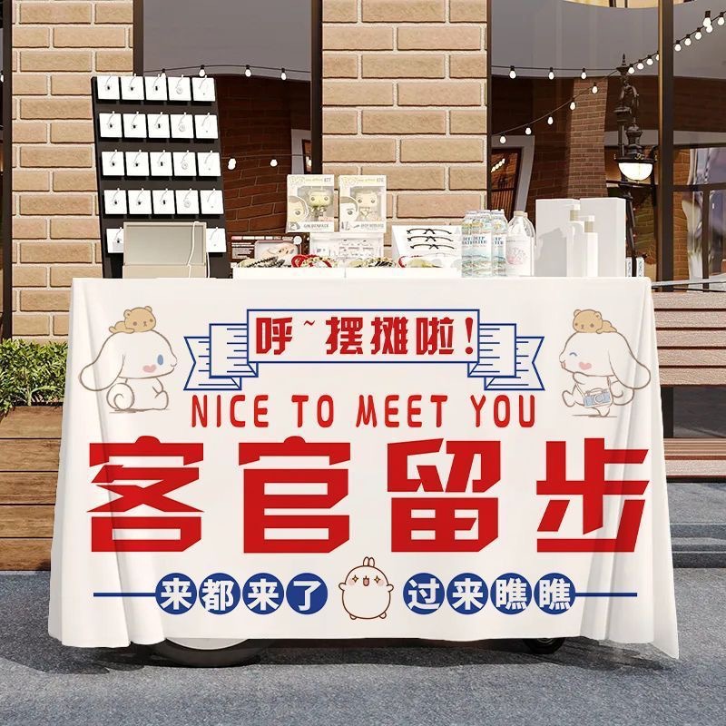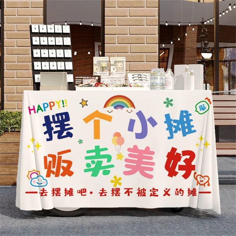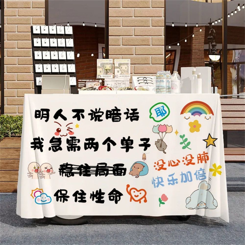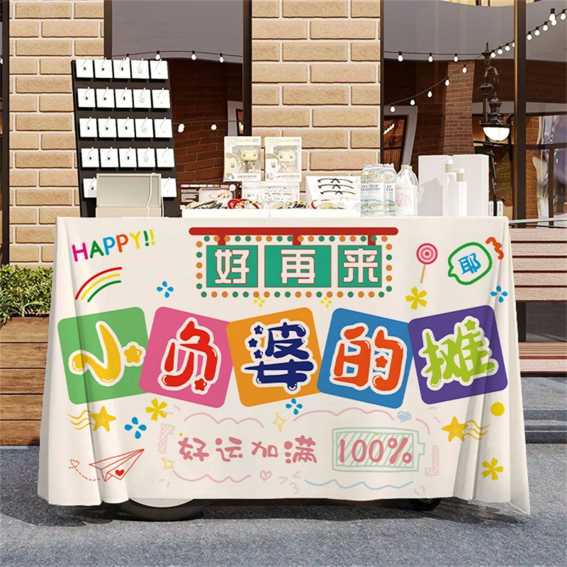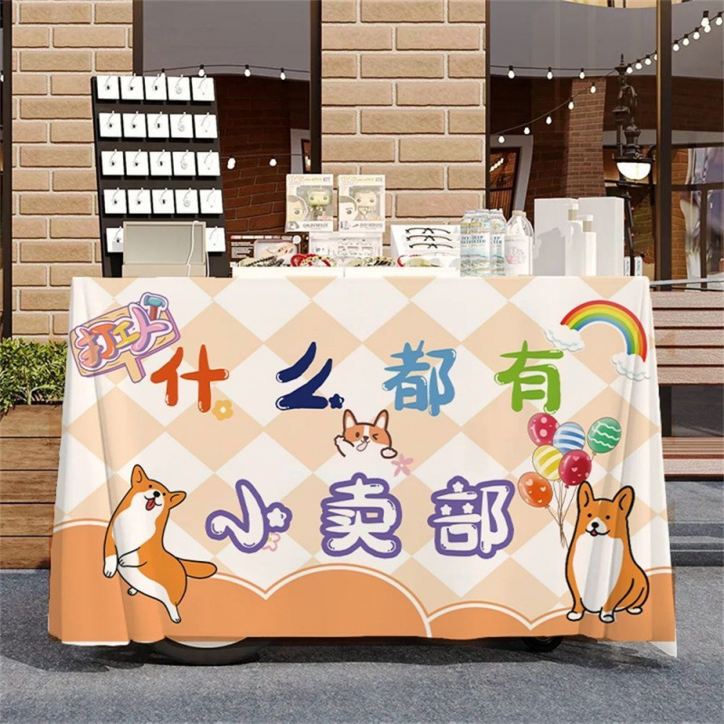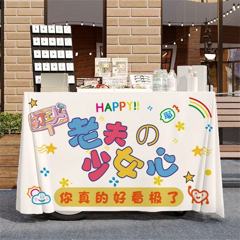 작은 마구간 디저트 야시장 노점 시장 온라인 유명 인사 장바구니 식탁보 우유 차 얼음 가루 장식 광고 부스 천