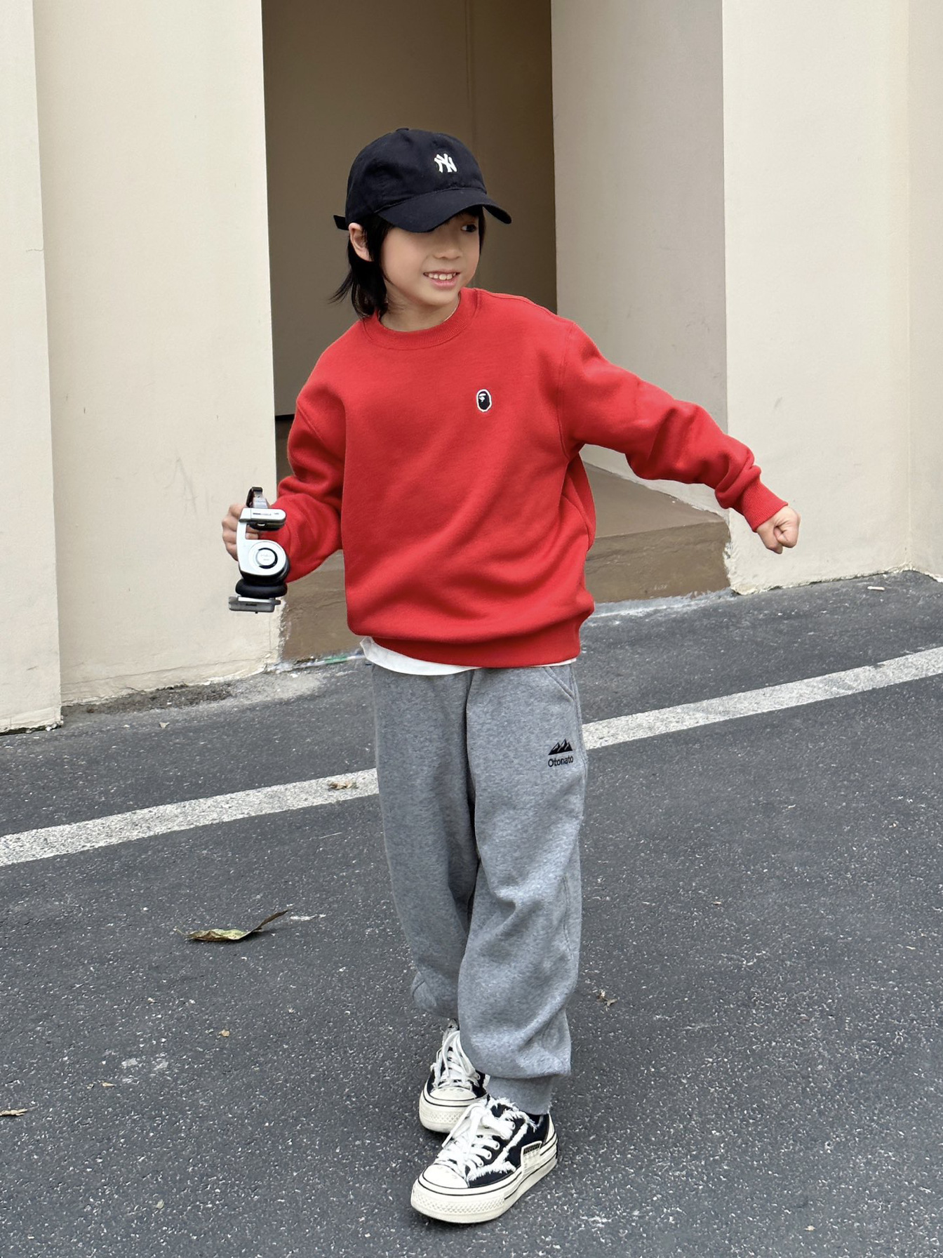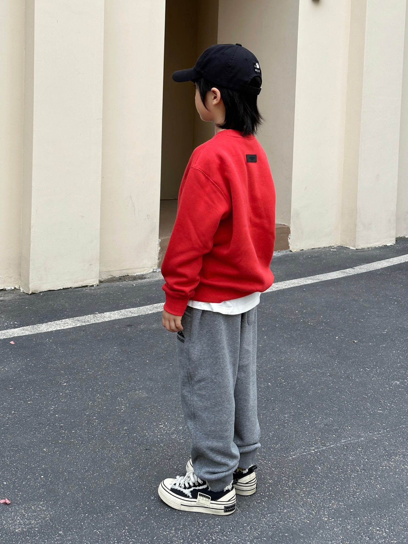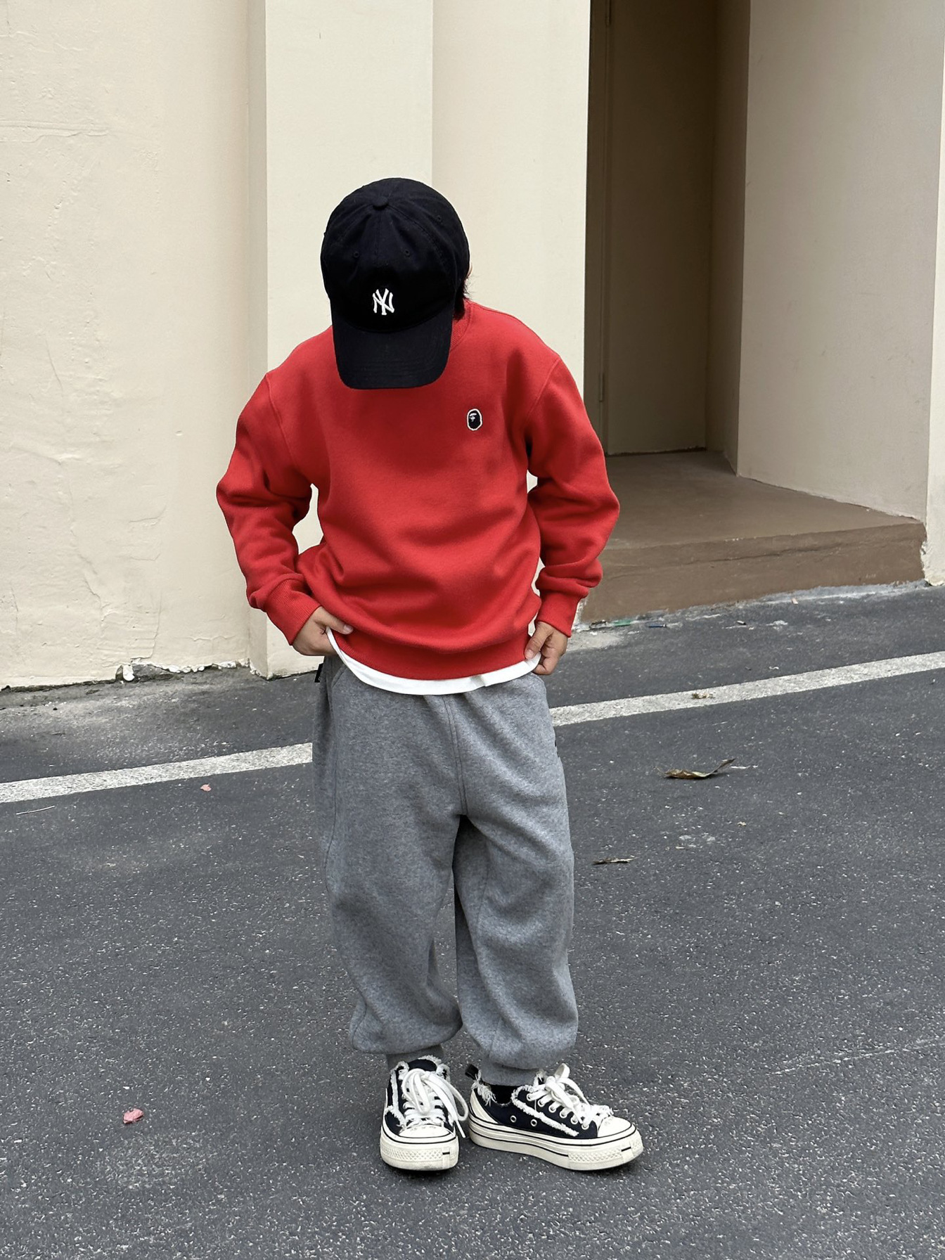 어린이 의류 소년 소녀를위한 어린이 빨간 기모 스웨터 어린이 아기 서양 스타일 두꺼운 풀오버 소년의 올 매치 라운드 넥 탑