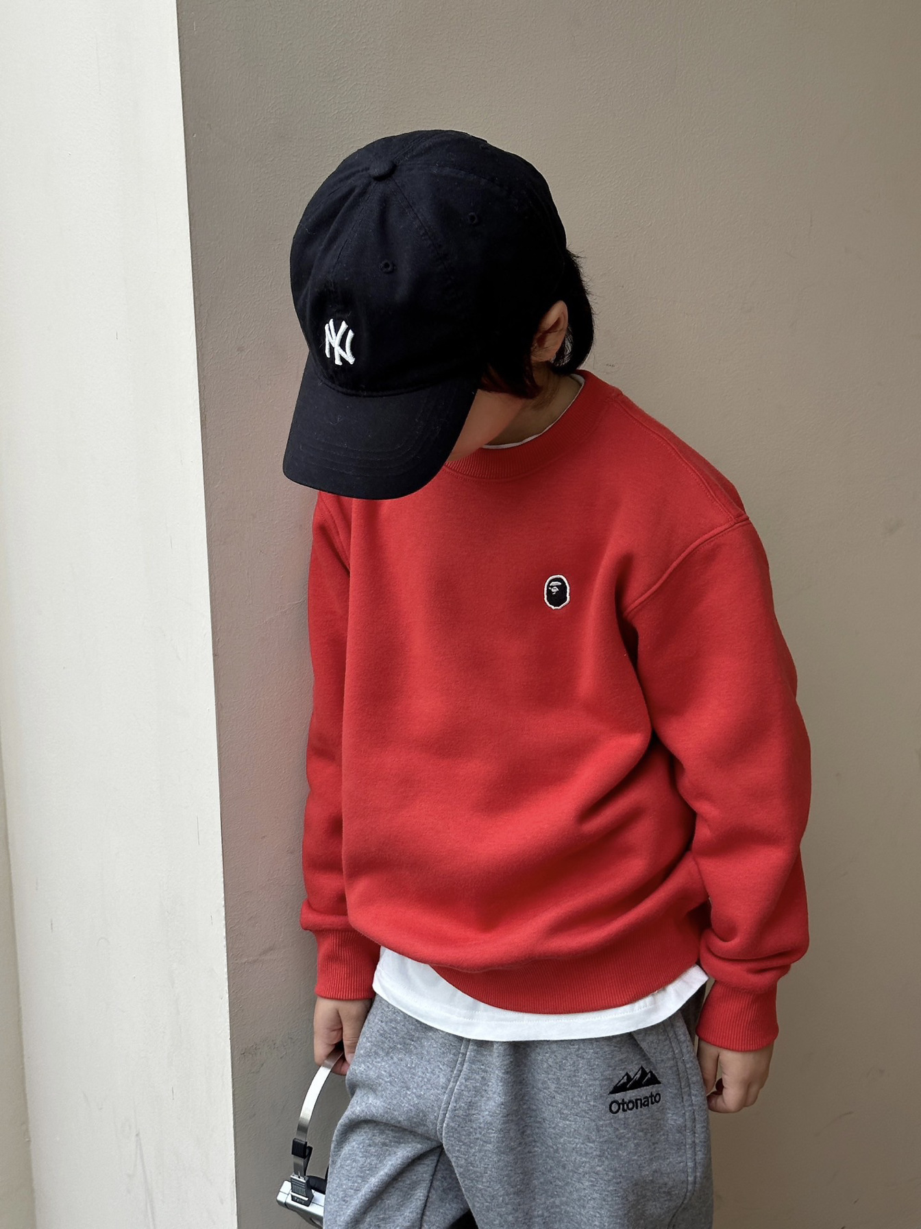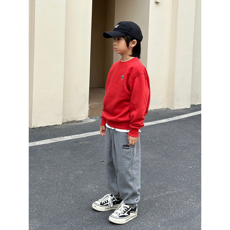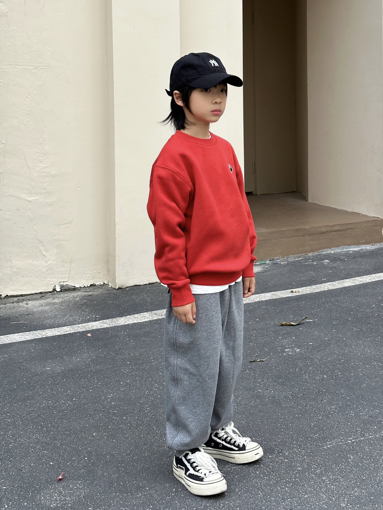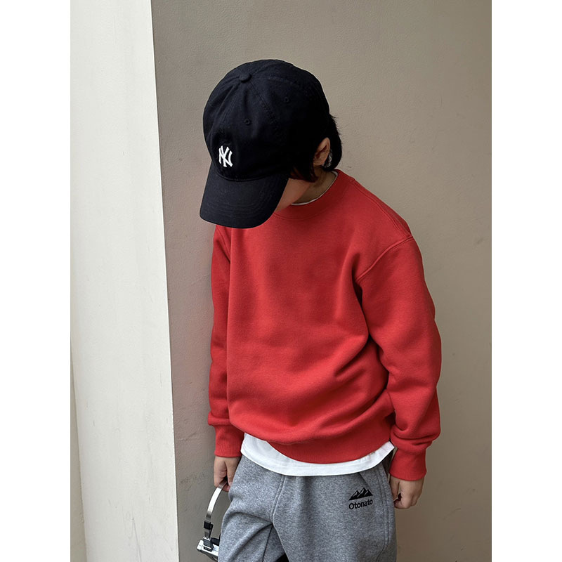 어린이 의류 소년 소녀를위한 어린이 빨간 기모 스웨터 어린이 아기 서양 스타일 두꺼운 풀오버 소년의 올 매치 라운드 넥 탑