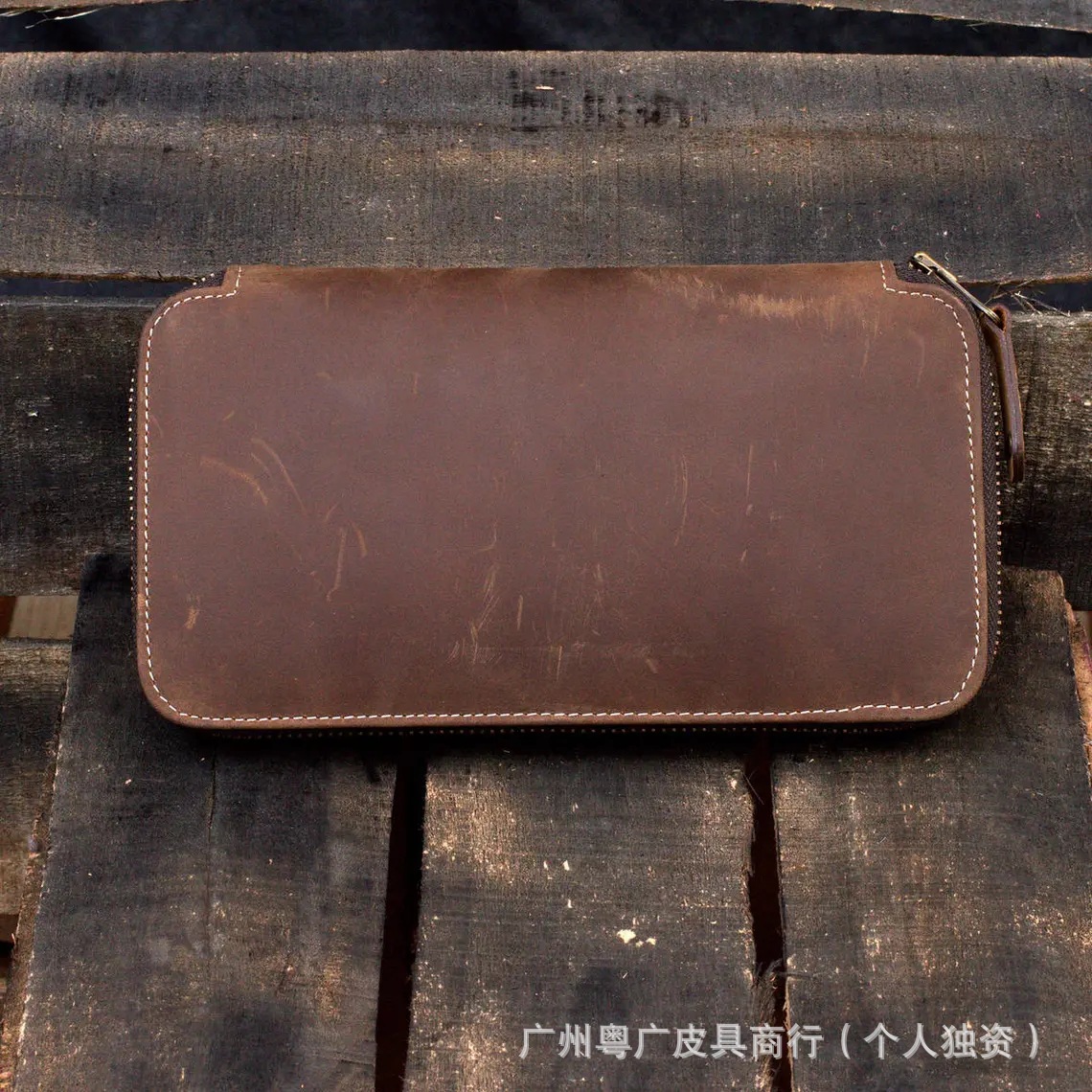 유럽과 미국의 새로운 빈티지 정품 가죽 남성 통장 가방 미친 말 가죽 지퍼 20% 접힌 다기능 여행 통장 홀더 남성용스토어 가기