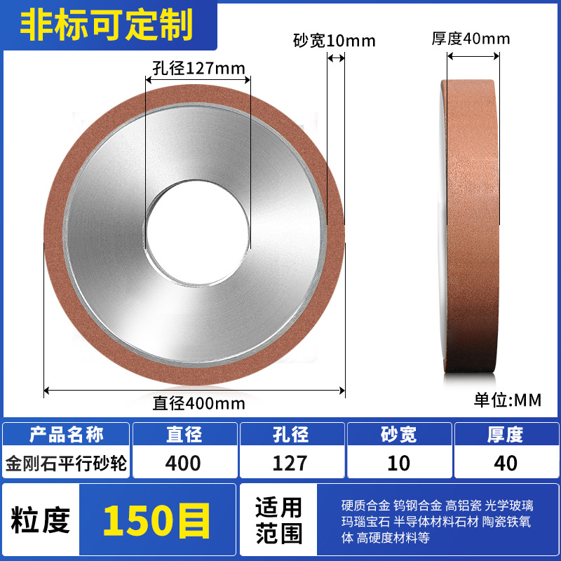 • 다이아몬드 연삭 휠 400*50*203 구멍*10(150 메쉬)