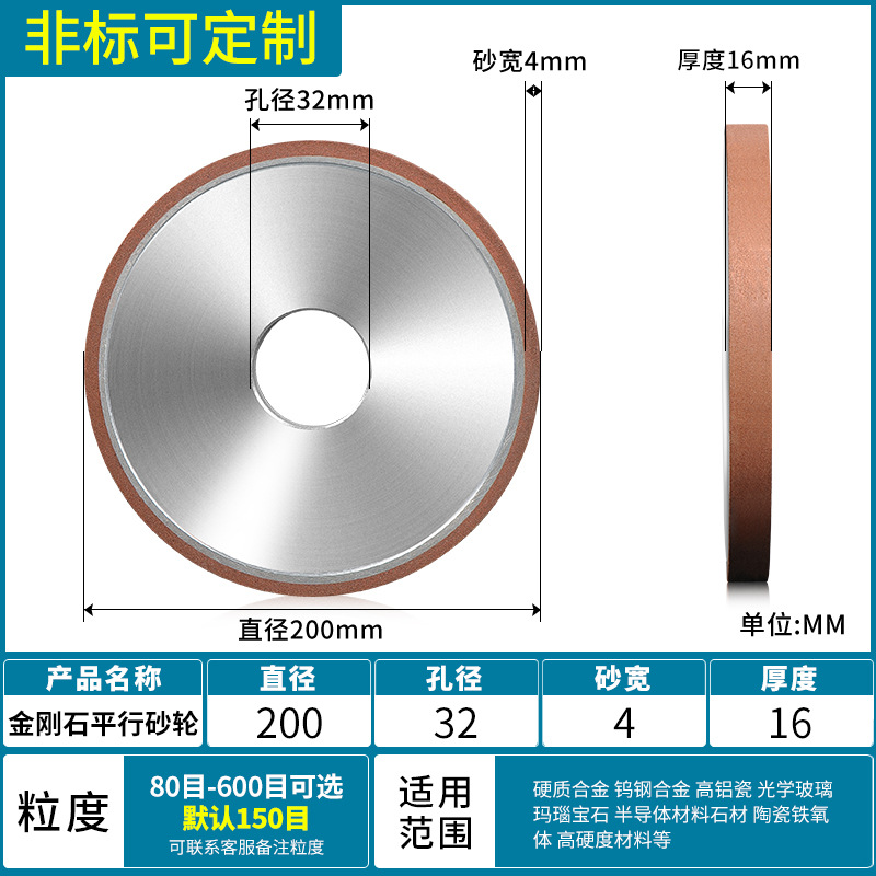 • 다이아몬드 연삭 휠 200*16*32 구멍*4(80 메쉬-600 메쉬 옵션) 기본 150 메쉬
