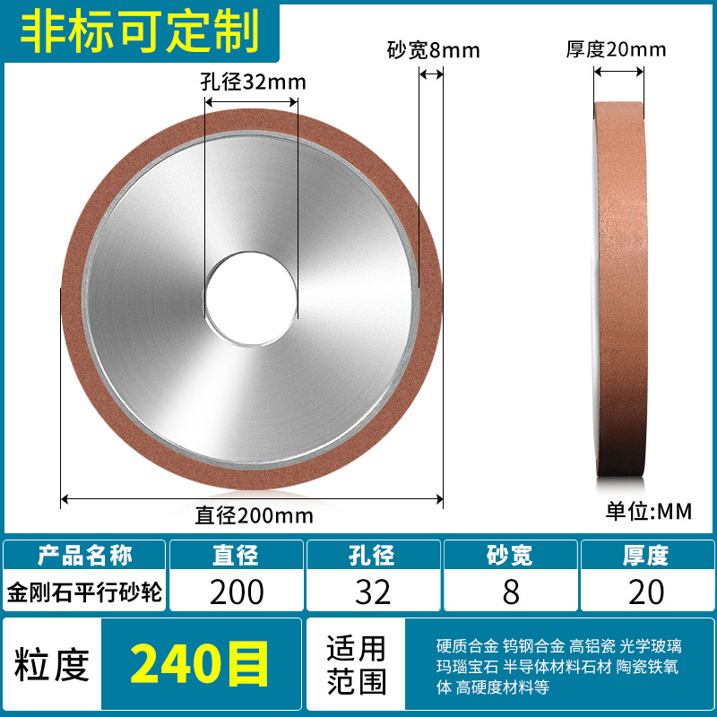 • 다이아몬드 연삭 휠 200*20*32 구멍*4(80 메쉬-600 메쉬 옵션) 기본 150 메쉬