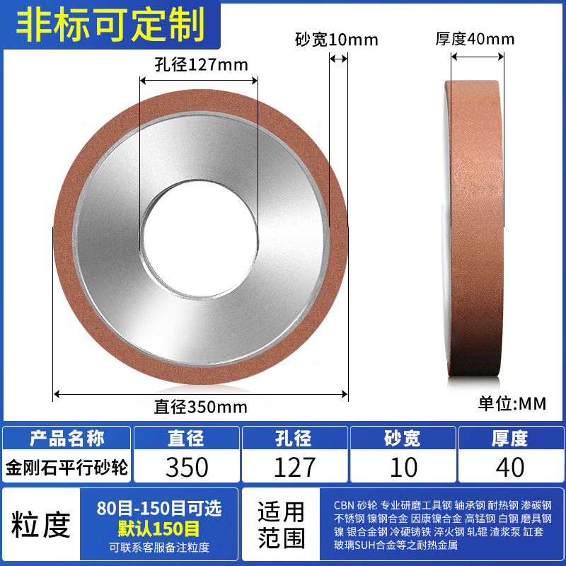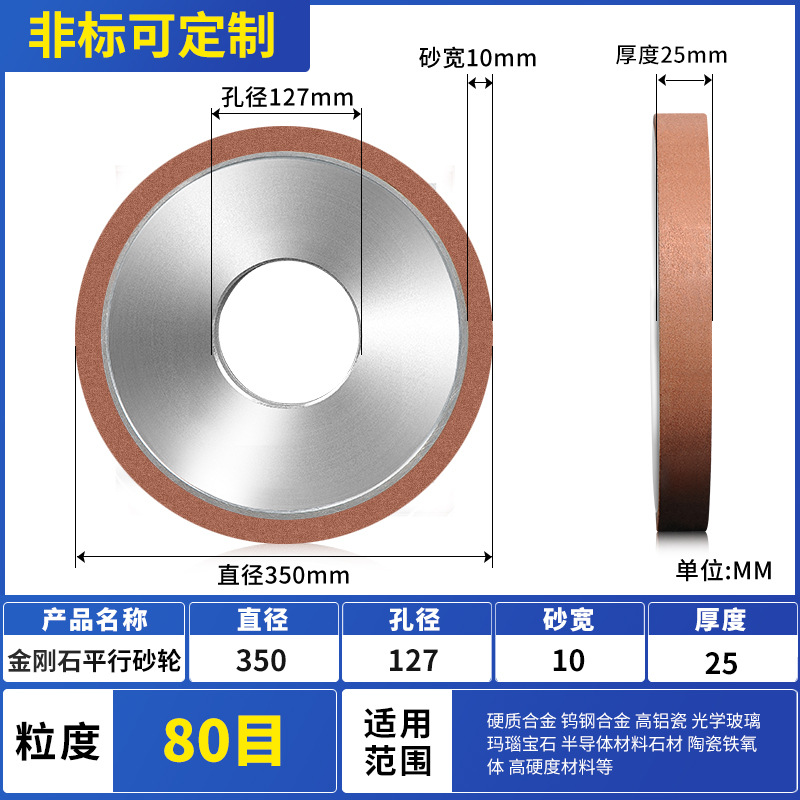 • 다이아몬드 연삭 휠 350*25*127 구멍*10 (80 메쉬)