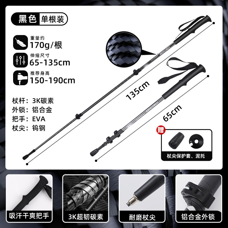 Kuangtu 야외 탄소 전문 하이킹 등반 스틱 3K 탄소 섬유 등반 스틱 망원경 등반 스틱 전문 야외스토어 가기