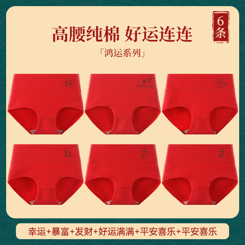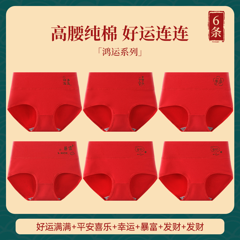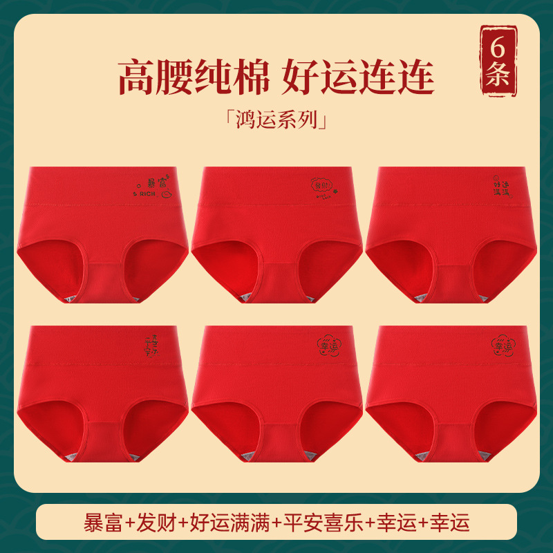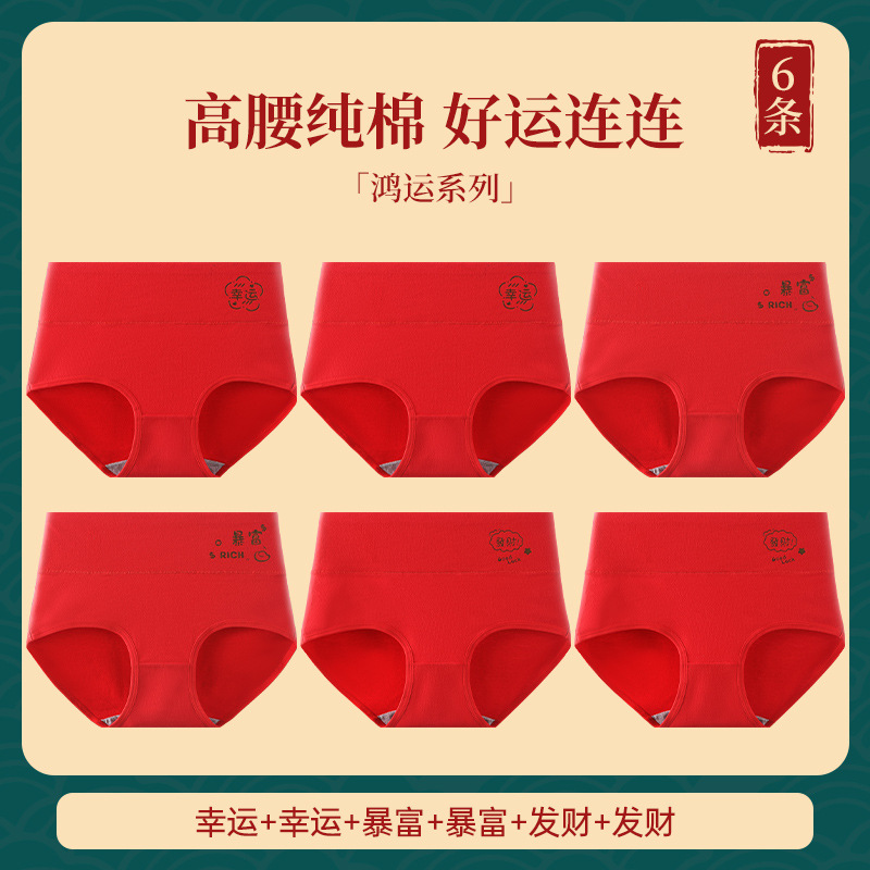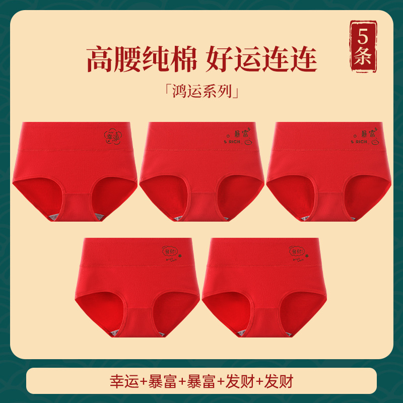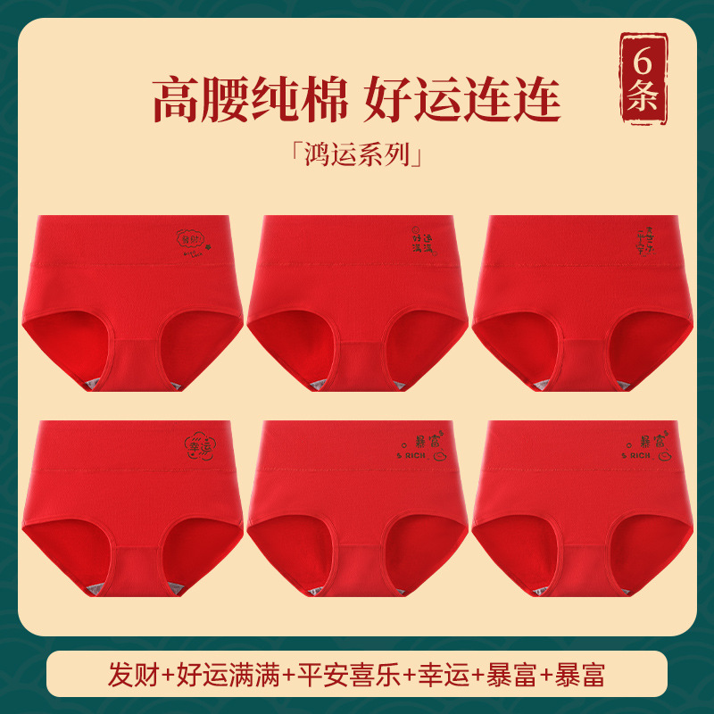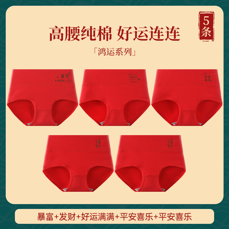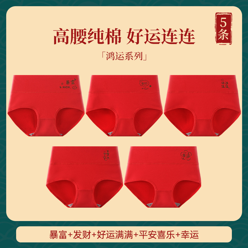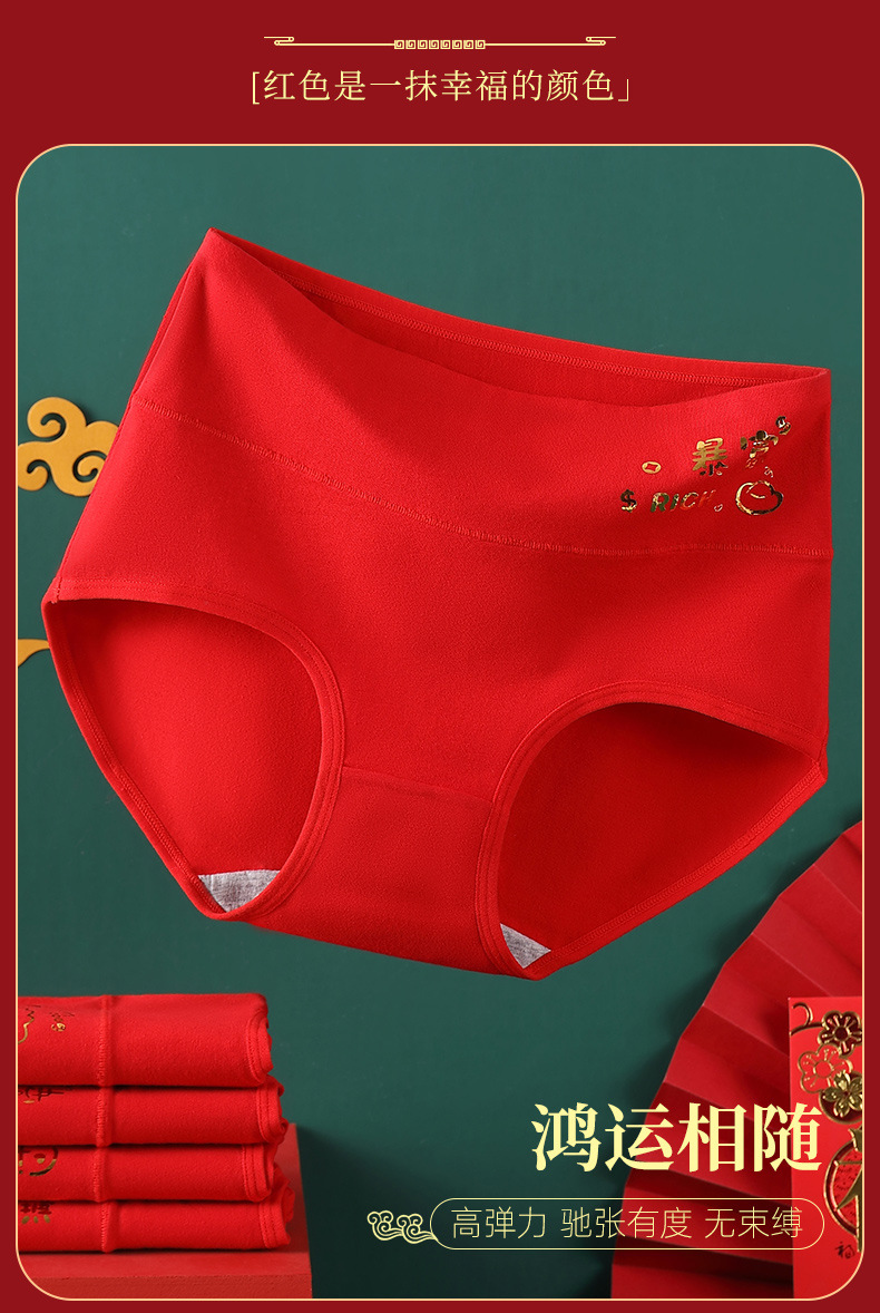Yalu 여성용 속옷 여성용 빅 레드 브리프 브닝 니안 반바지 뱀 반바지 머리 항균 내부 크로트 반바지 높은 허리