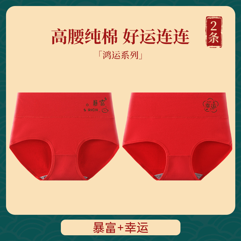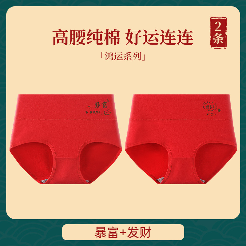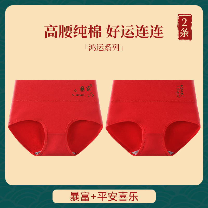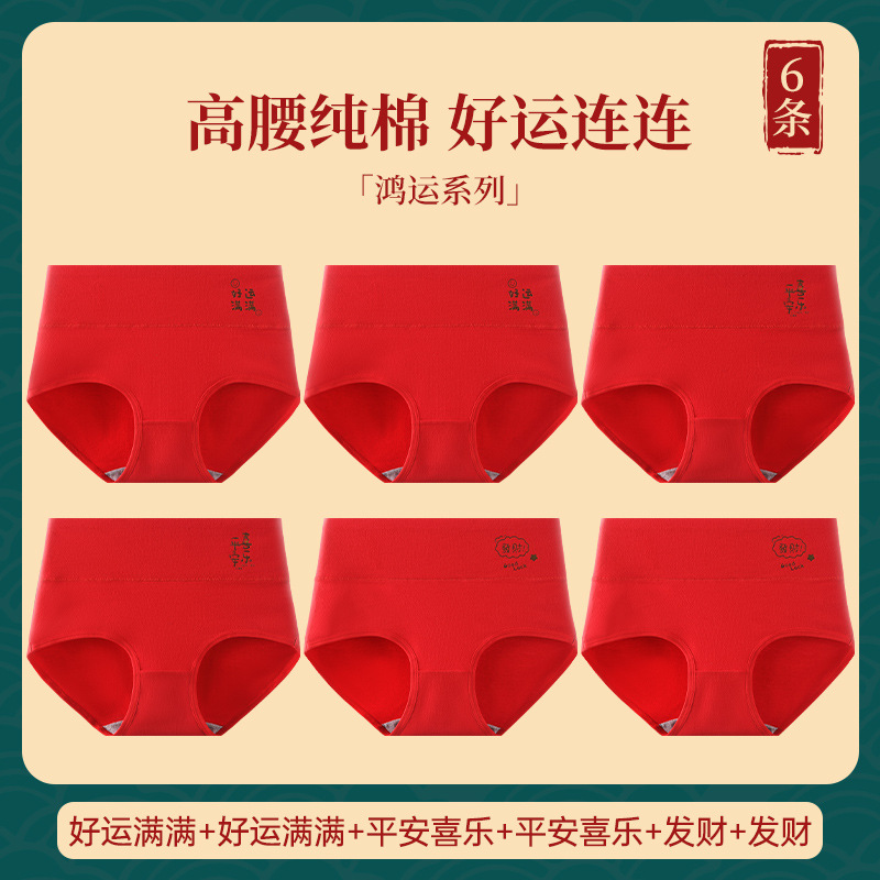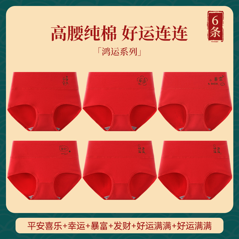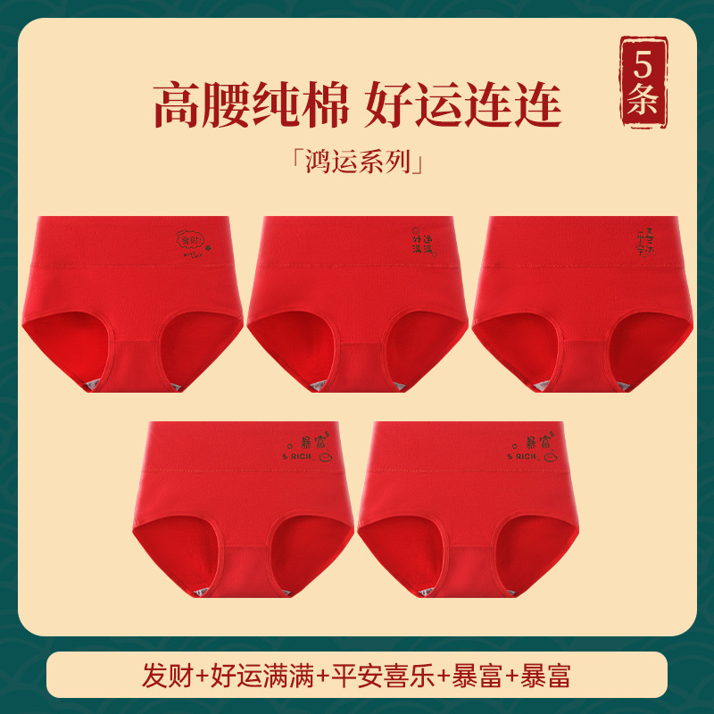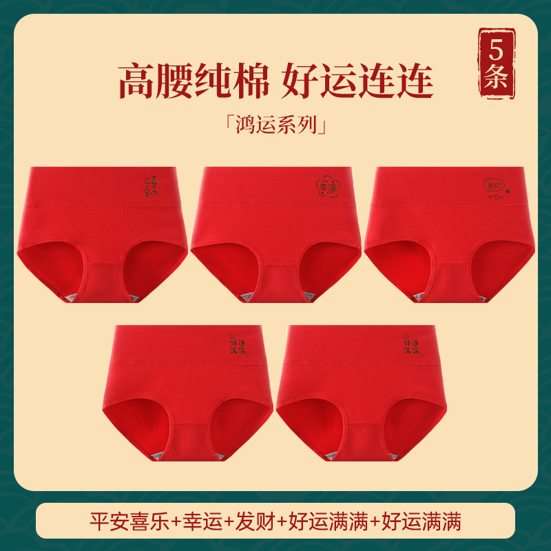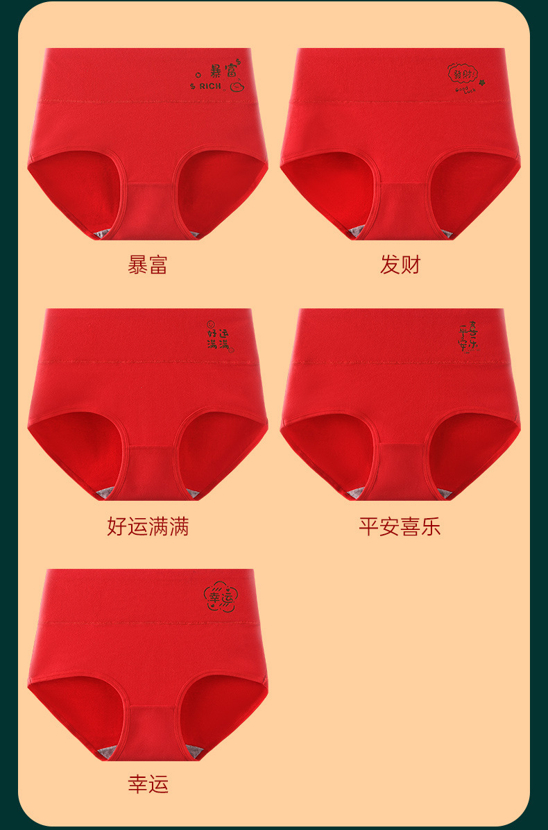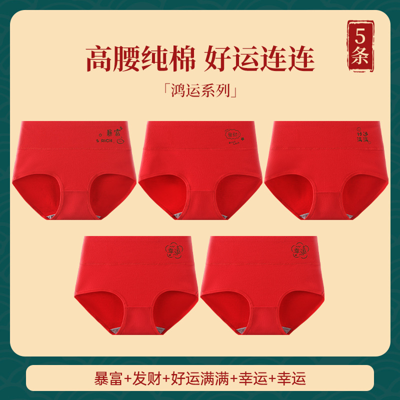 Yalu 여성용 속옷 여성용 빅 레드 브리프 브닝 니안 반바지 뱀 반바지 머리 항균 내부 크로트 반바지 높은 허리