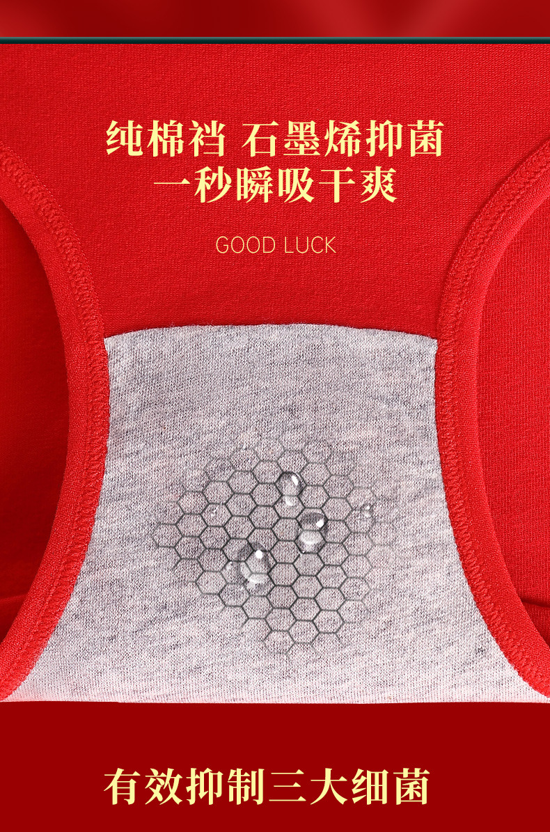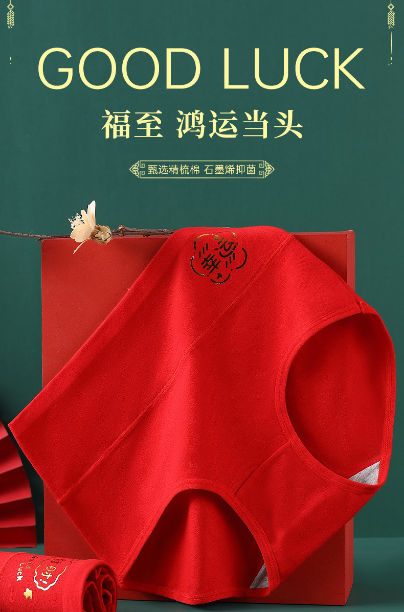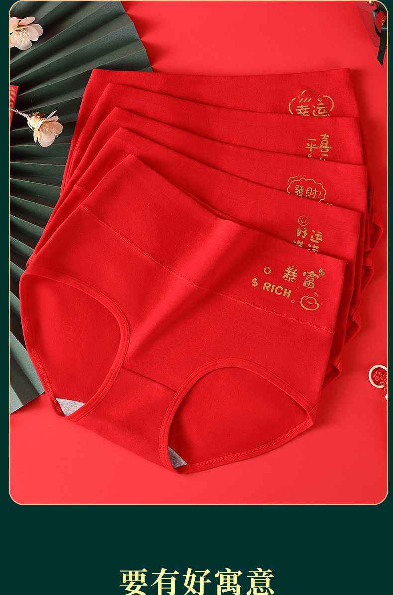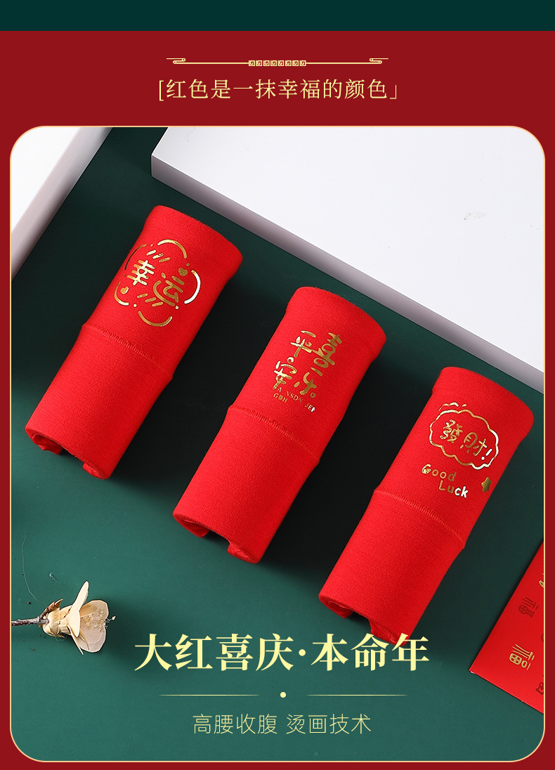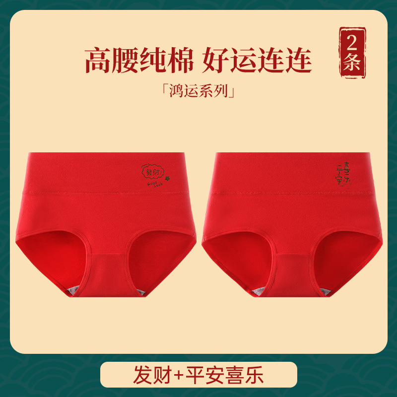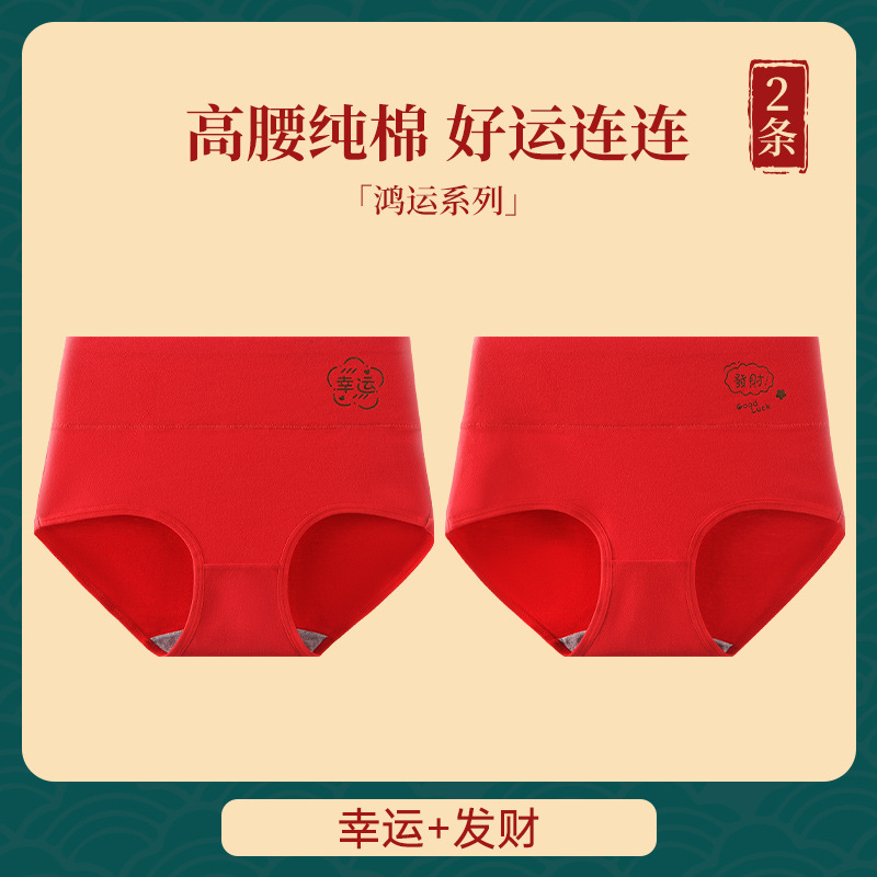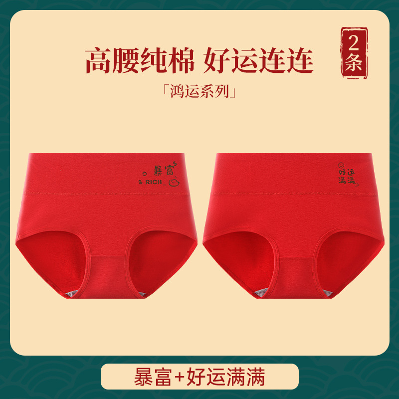 Yalu 여성용 속옷 여성용 빅 레드 브리프 브닝 니안 반바지 뱀 반바지 머리 항균 내부 크로트 반바지 높은 허리