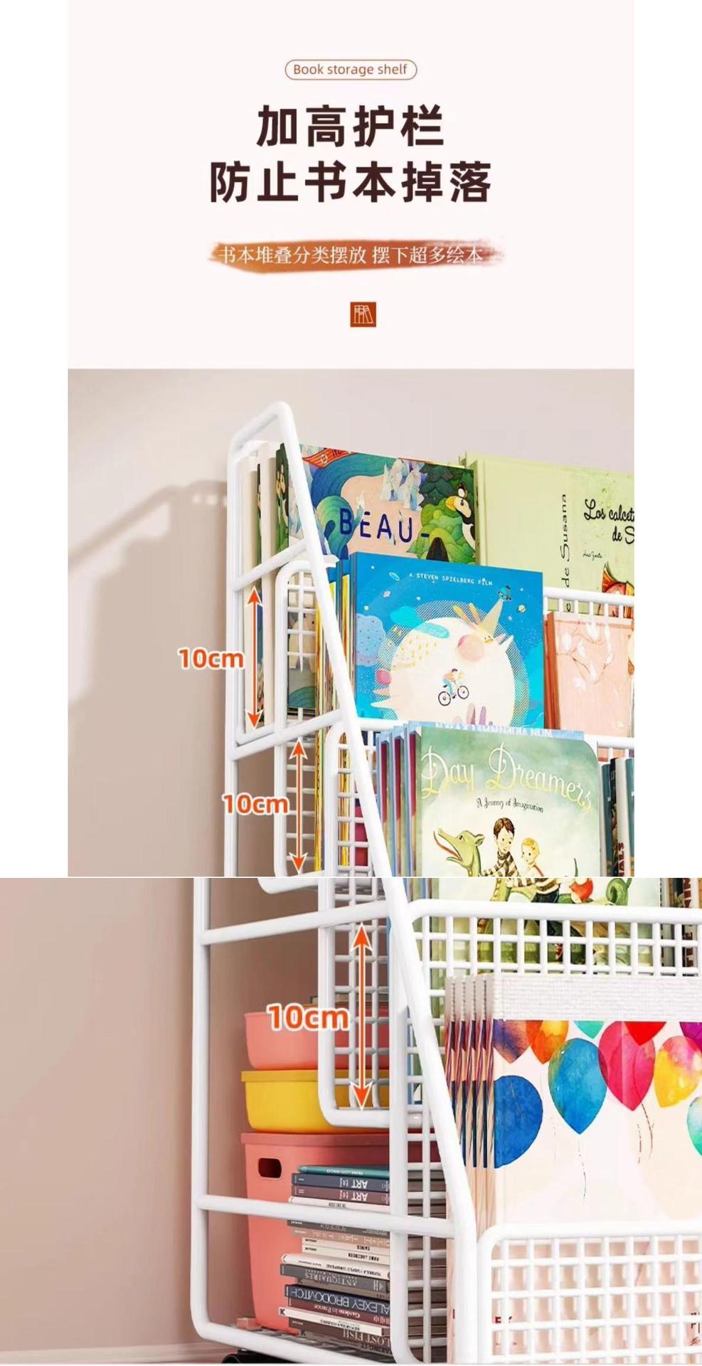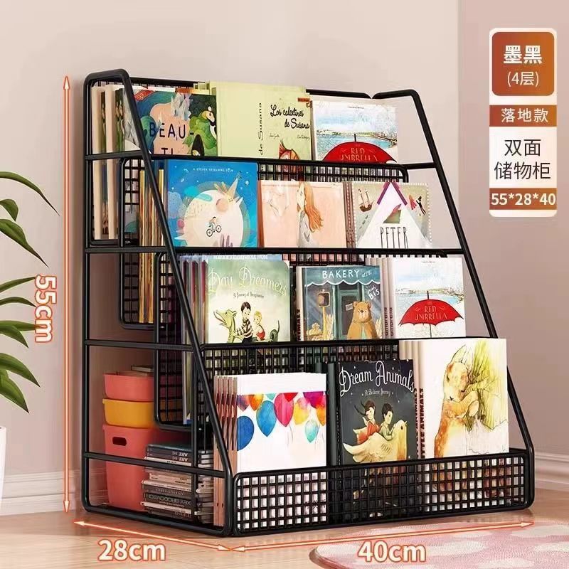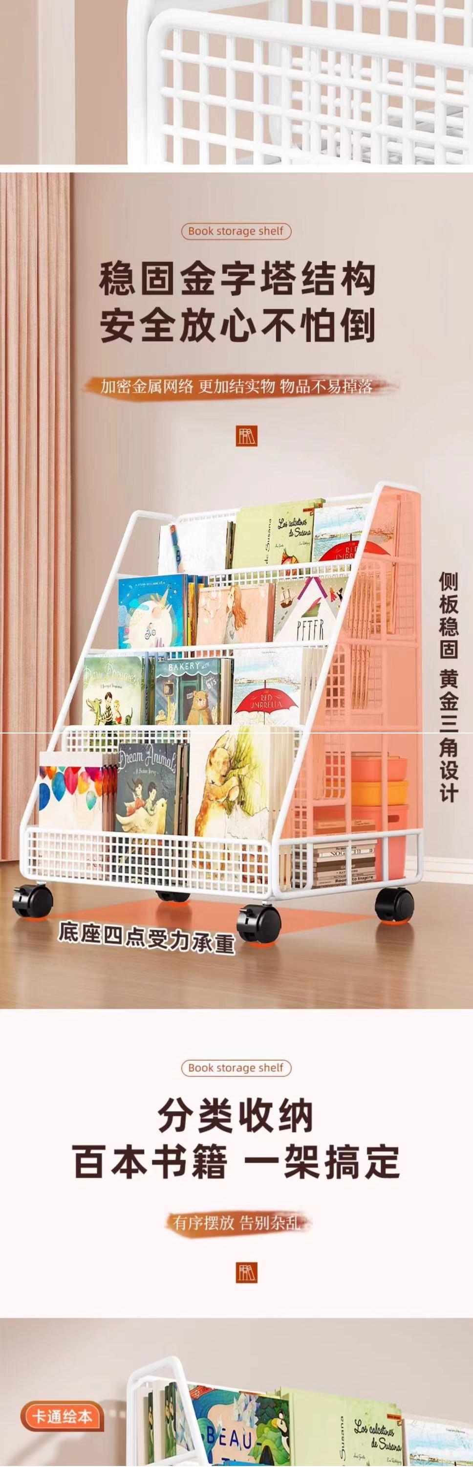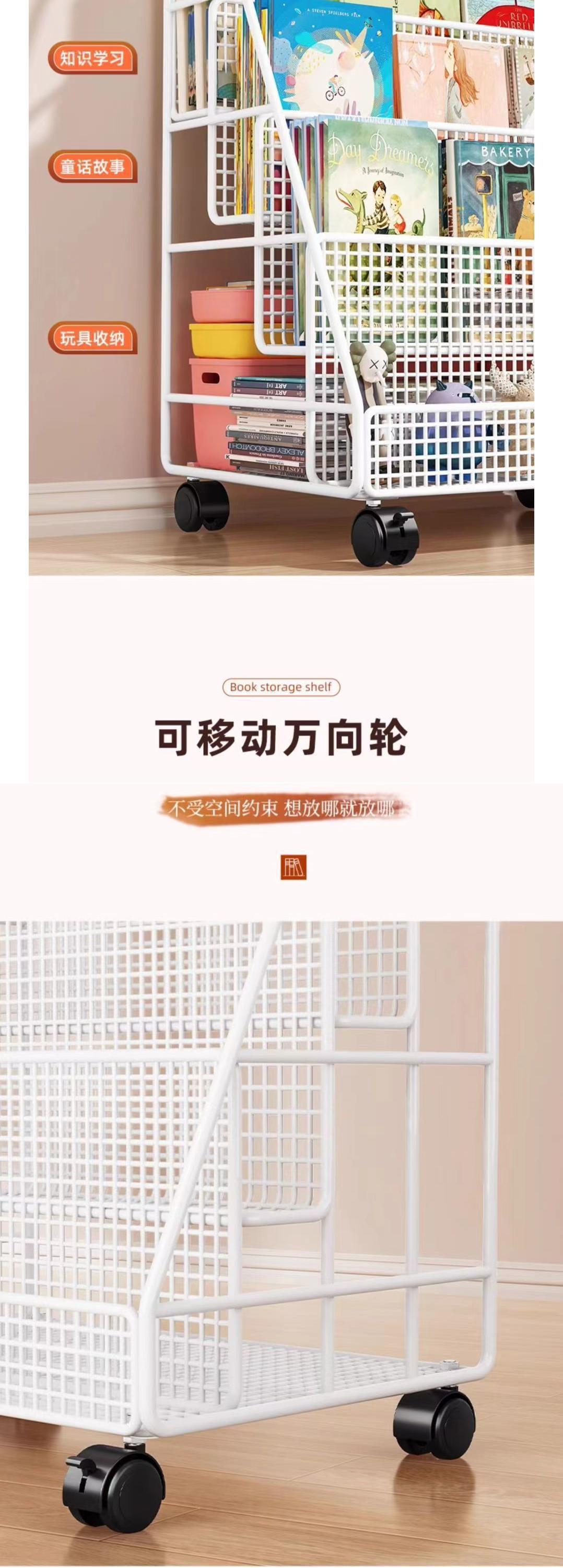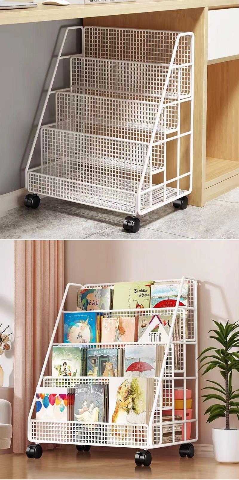 그림책 보관 랙 테이블 아래 이동식 책장 보관 랙 바닥-스탠딩 휠 가정용 독서 랙 아기 어린이 책장