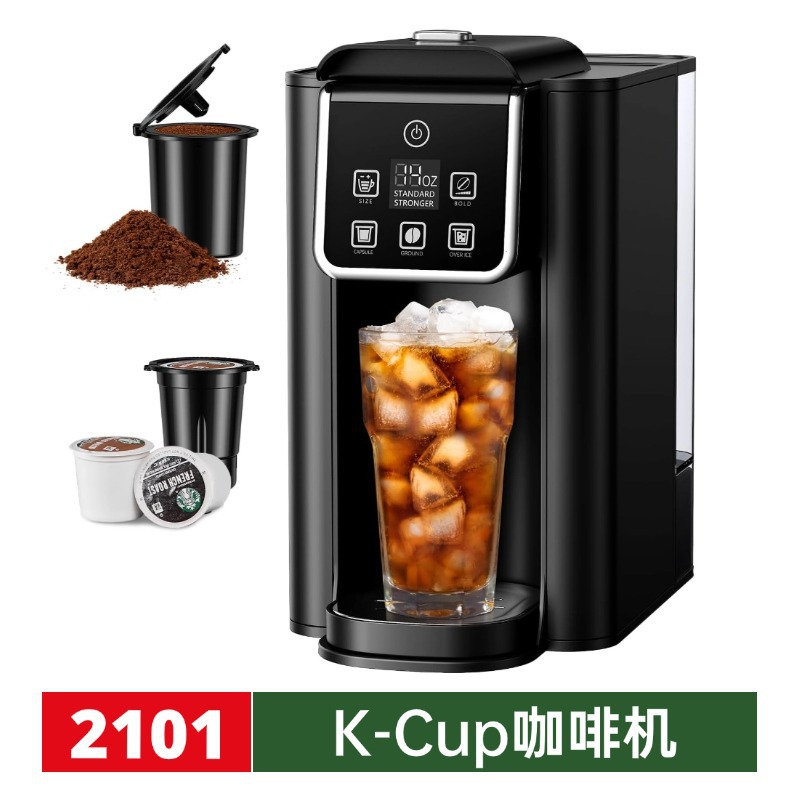 Hot and Iced Coffee Machine for K-Cup Pods & Ground Coffee, 6 to 14 oz Brew Sizes,Fast brew time s than 2minuts
