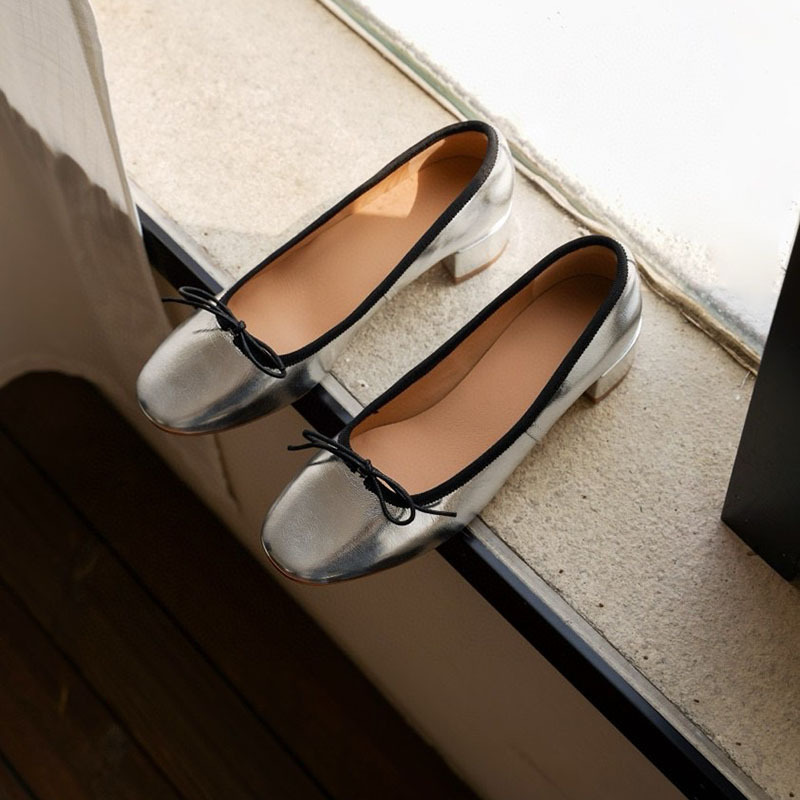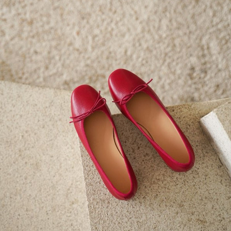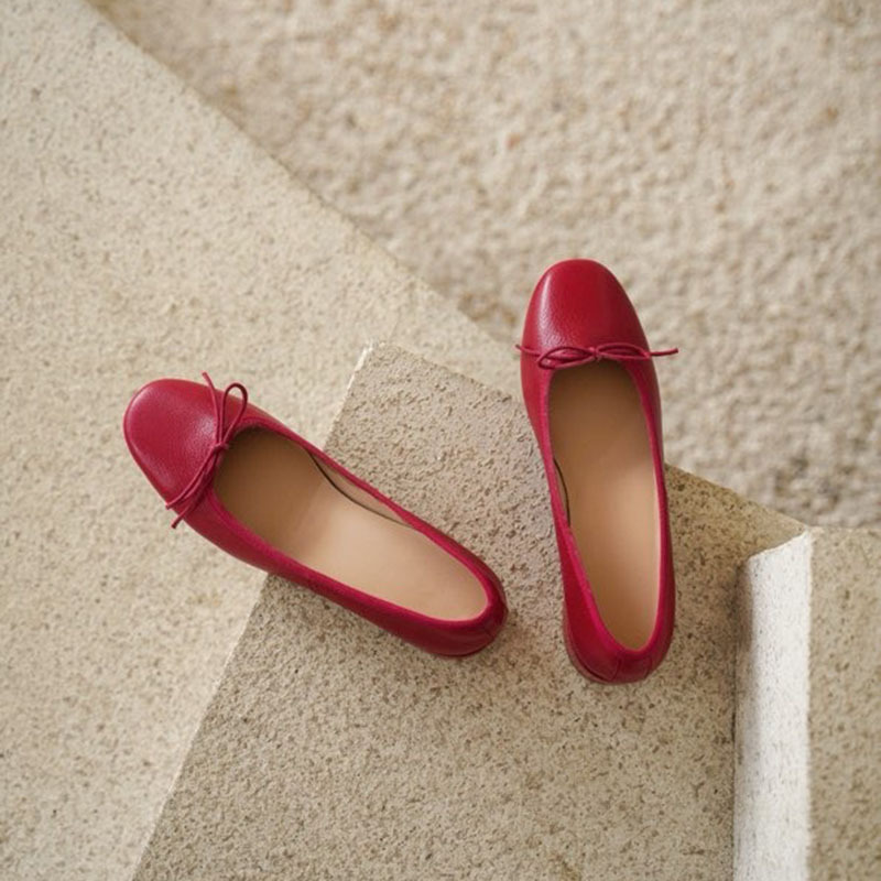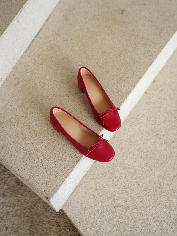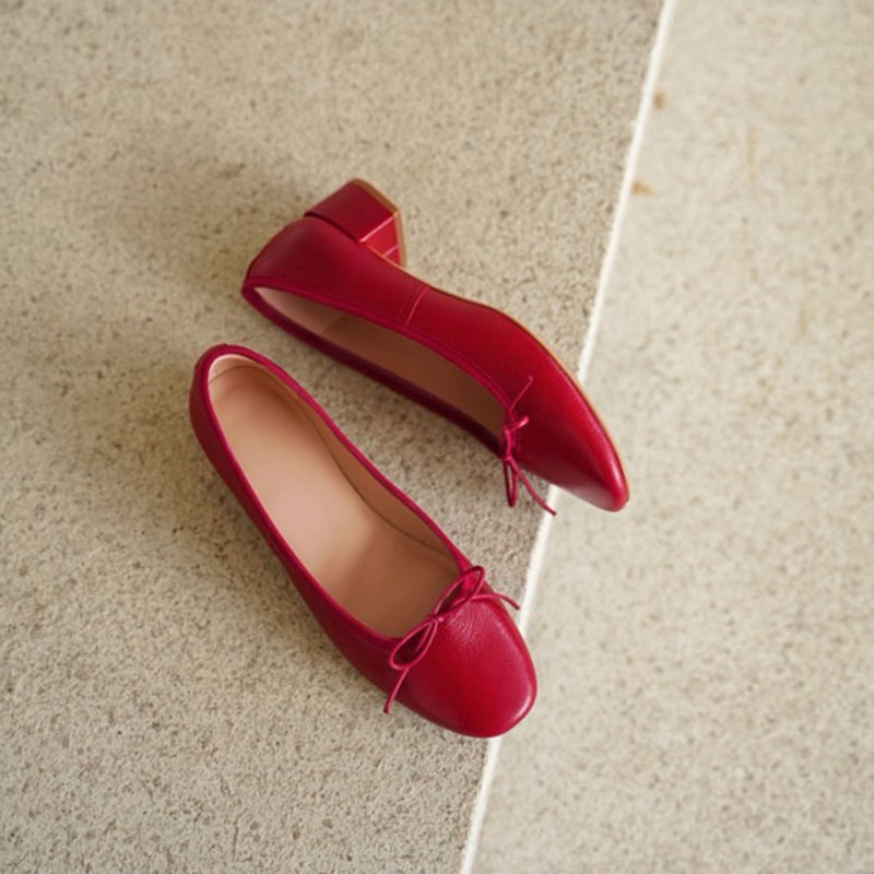 Xiaoxiang 스타일 얕은 입 신발 여성용 둥근 발가락 두꺼운 힐 레드 웨딩 신발 활 발레 신발 가죽 통기성 메리 제인