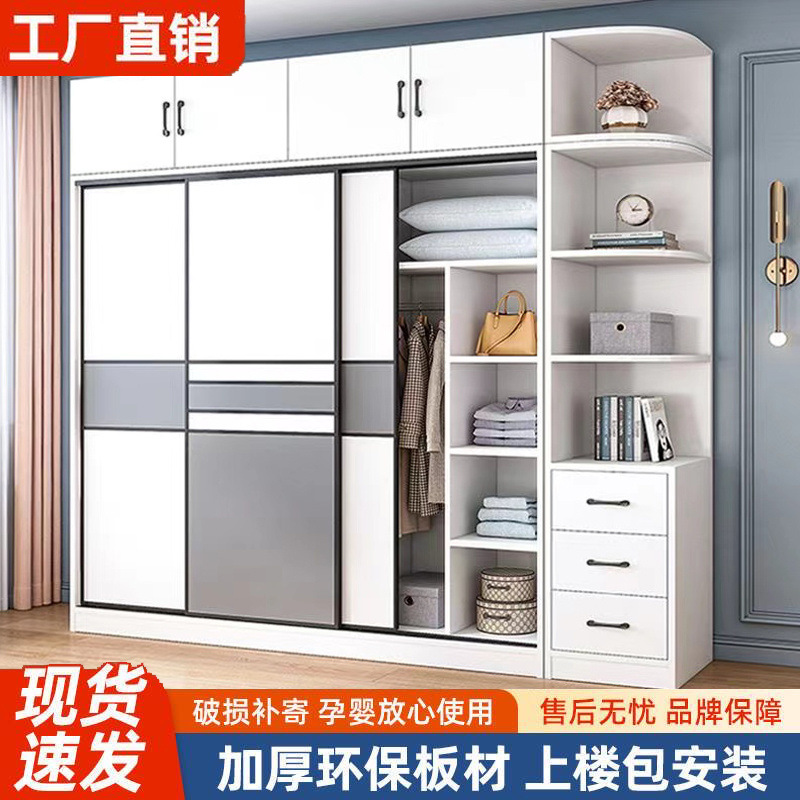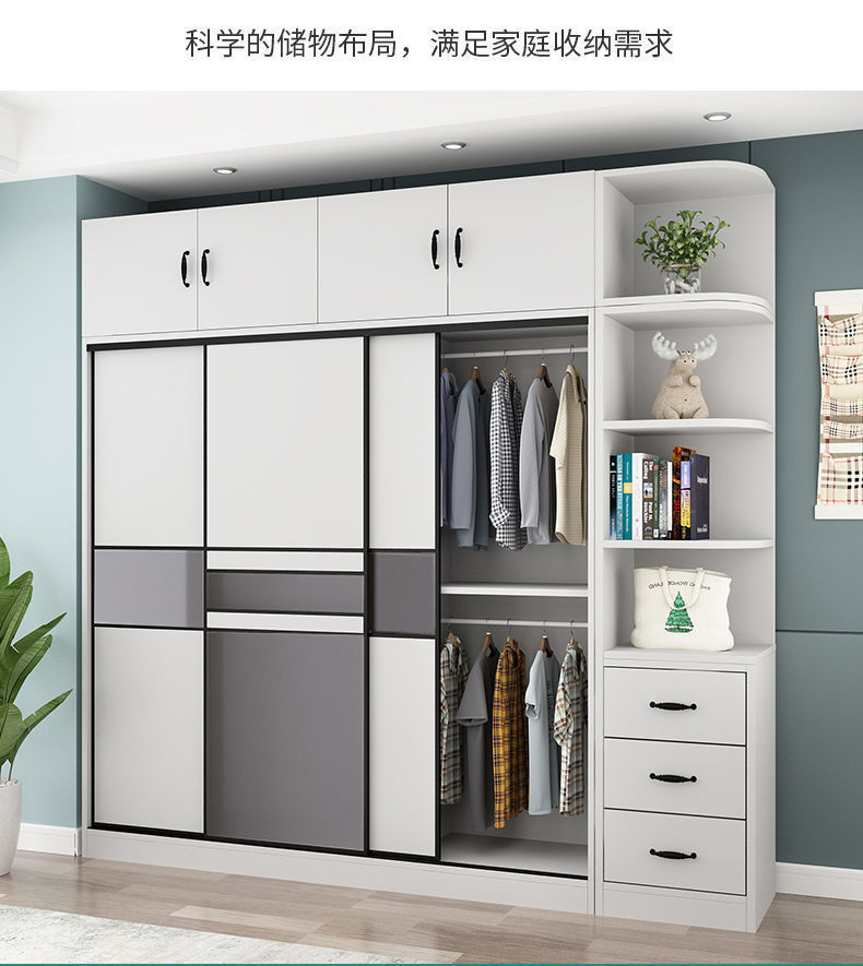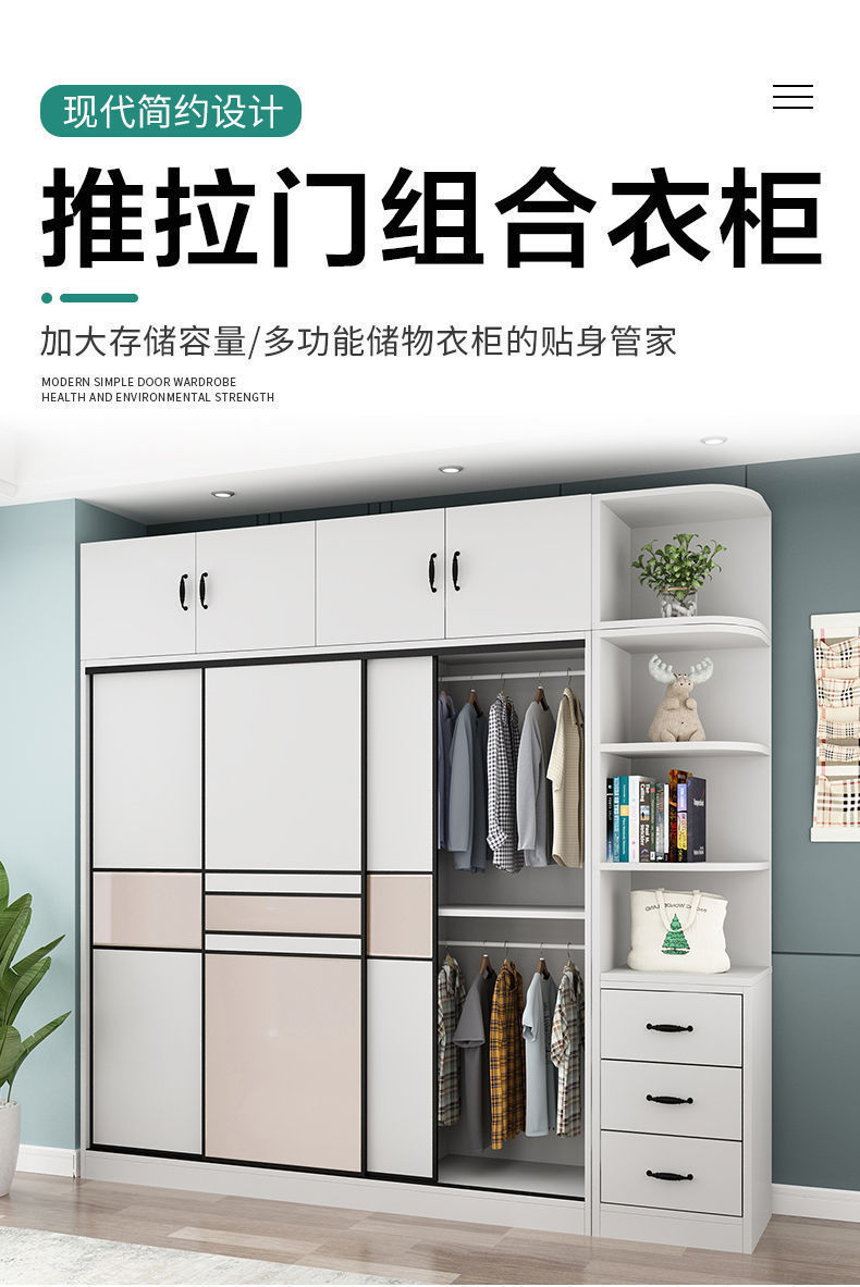 패키지 설치 옷장 홈 침실 슬라이딩 도어 현대적인 간단한 단단한 나무 판 유형 보관 캐비닛 슬라이딩 도어 넓어진 옷장스토어 가기