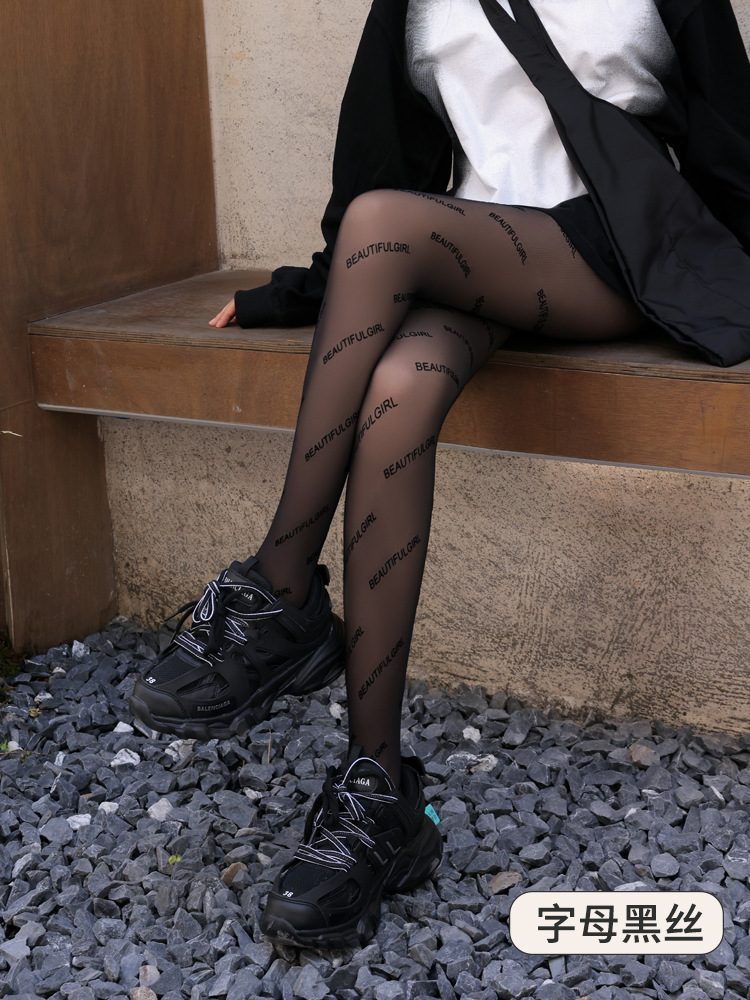 트렌디 한 브랜드 인쇄 레깅스 편지 블랙 실크 스타킹 라이트 레그 아티팩트 여성을위한 봄 가을 가을 겨울 기모 두꺼운 알몸 느낌