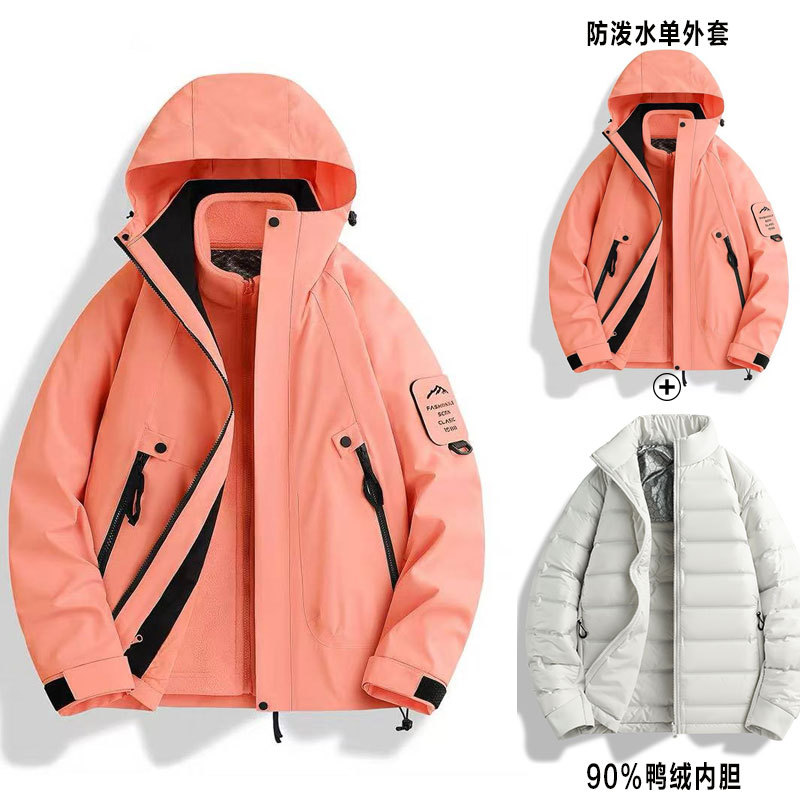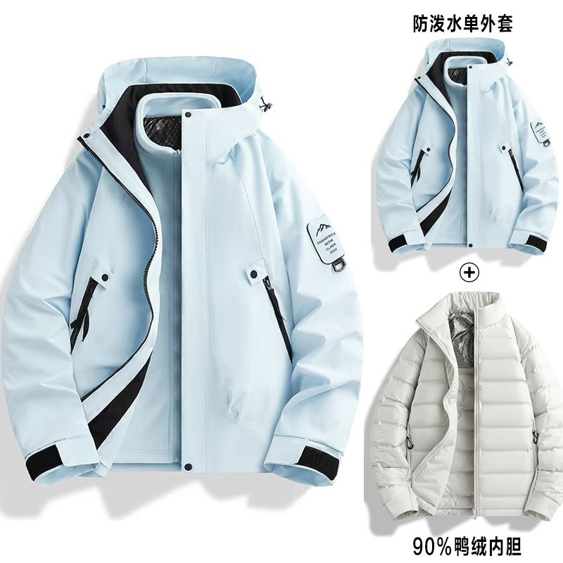 3-in-1 여성용 탈착식 가을 겨울 투피스 아웃도어 윈드 브레이커 재킷 남성용 발수 대형 등산복스토어 가기