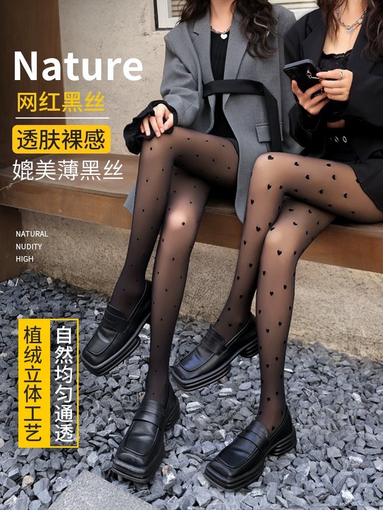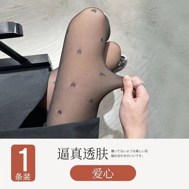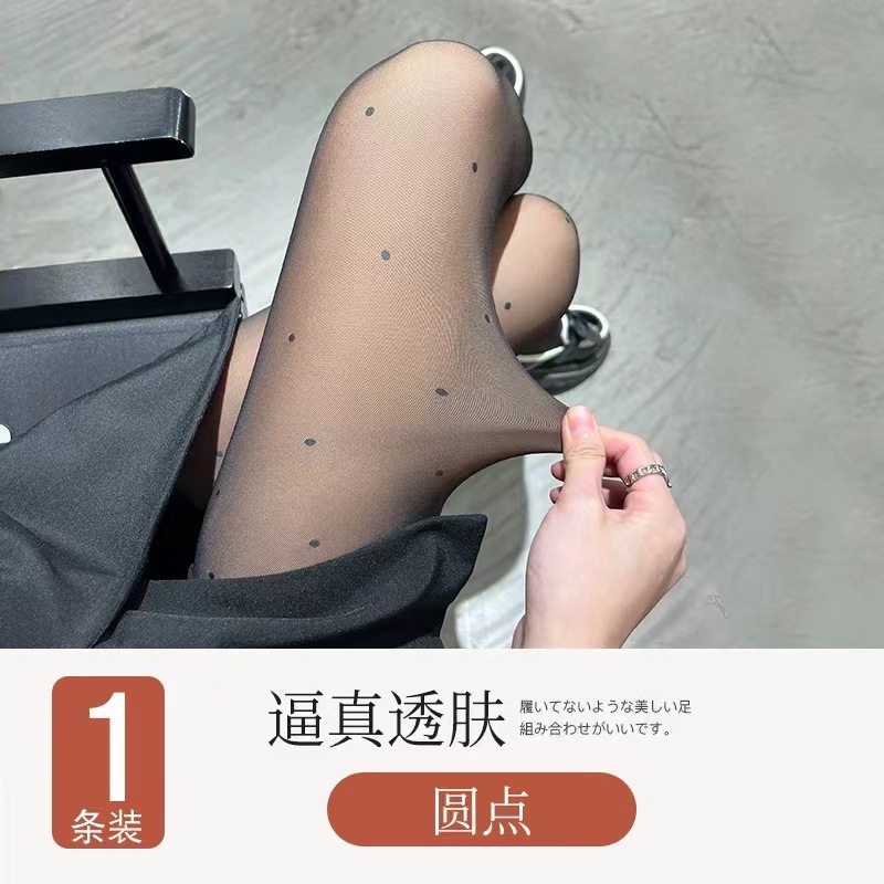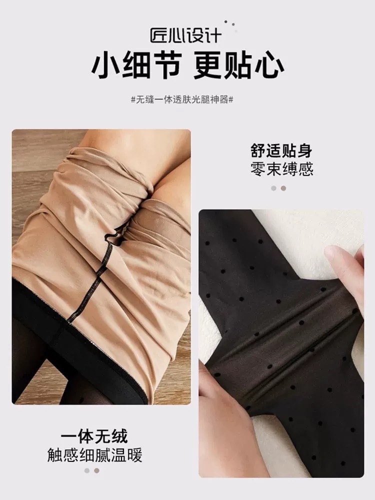 사랑의 웨이브 도트 여성의 기모 두꺼운 가을과 겨울 검은 피부-투명 빛 다리 아티팩트베이스 가짜 고기 팬티 스타킹
