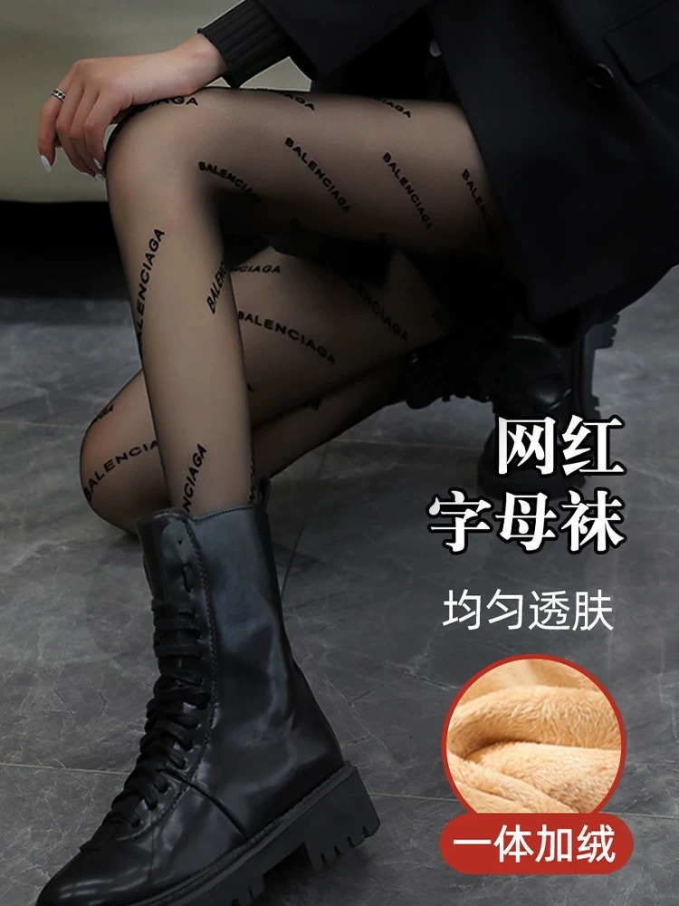 사랑의 웨이브 도트 여성의 기모 두꺼운 가을과 겨울 검은 피부-투명 빛 다리 아티팩트베이스 가짜 고기 팬티 스타킹스토어 가기