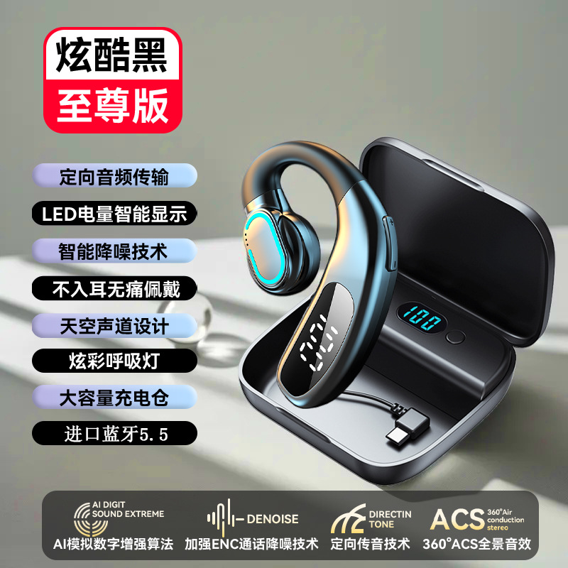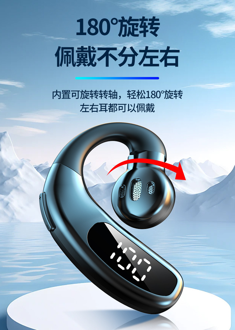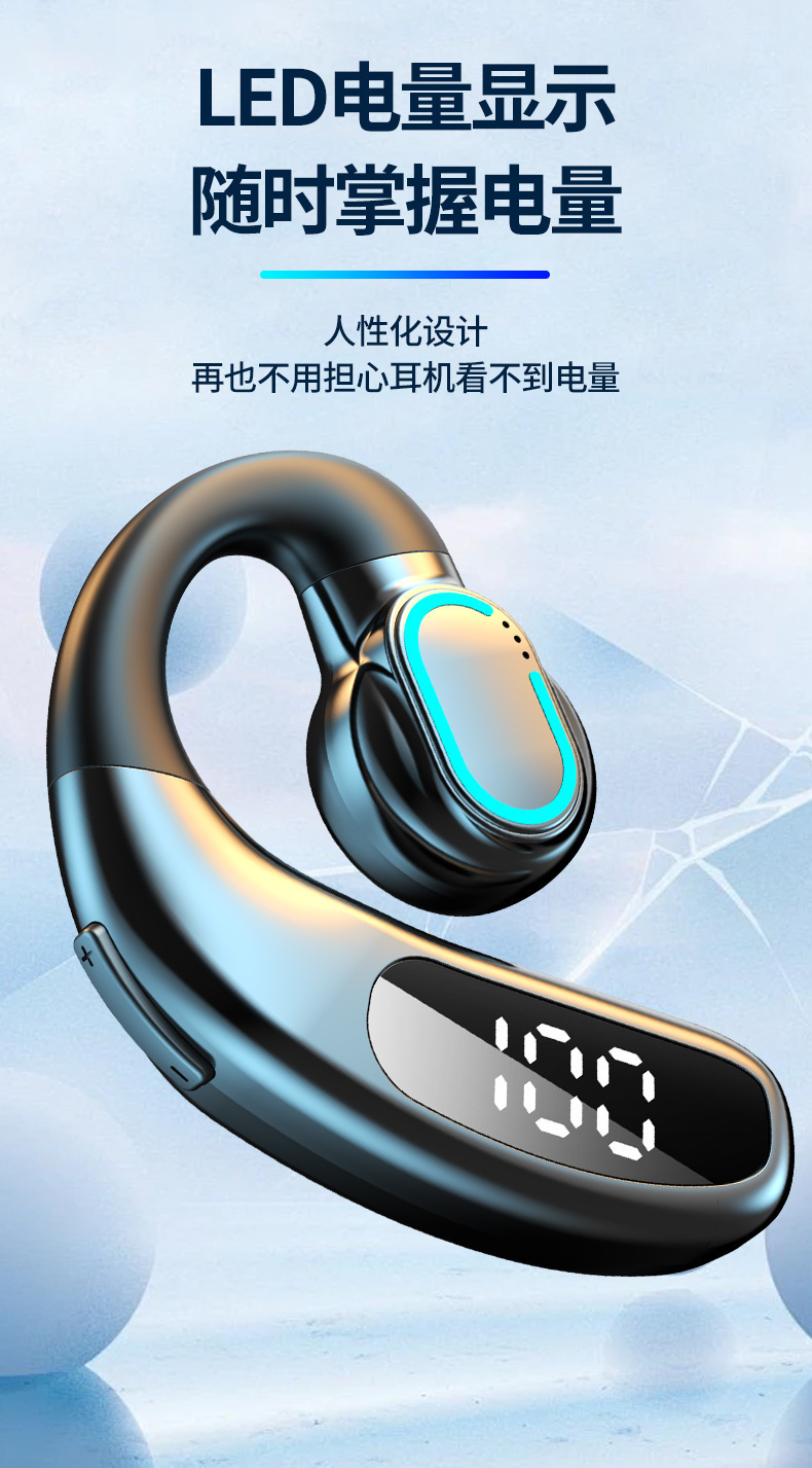 새로운 무선 블루투스 헤드셋 F80 귀 매달려 비 귀 비즈니스 가스 전도 단일 귀 디지털 디스플레이 국경 도매