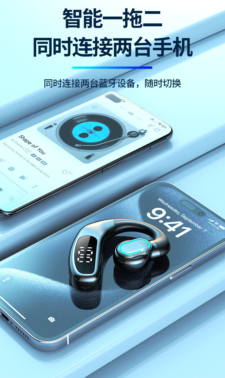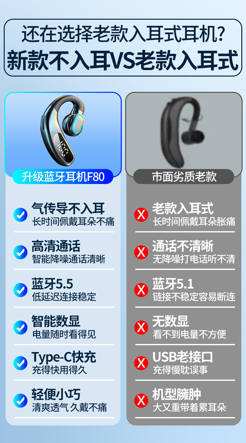 새로운 무선 블루투스 헤드셋 F80 귀 매달려 비 귀 비즈니스 가스 전도 단일 귀 디지털 디스플레이 국경 도매스토어 가기