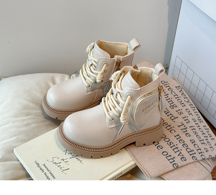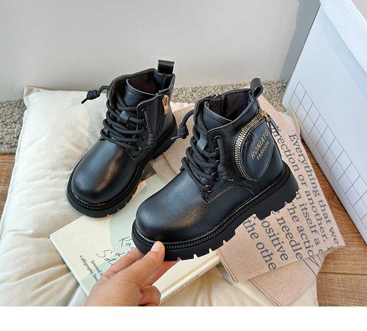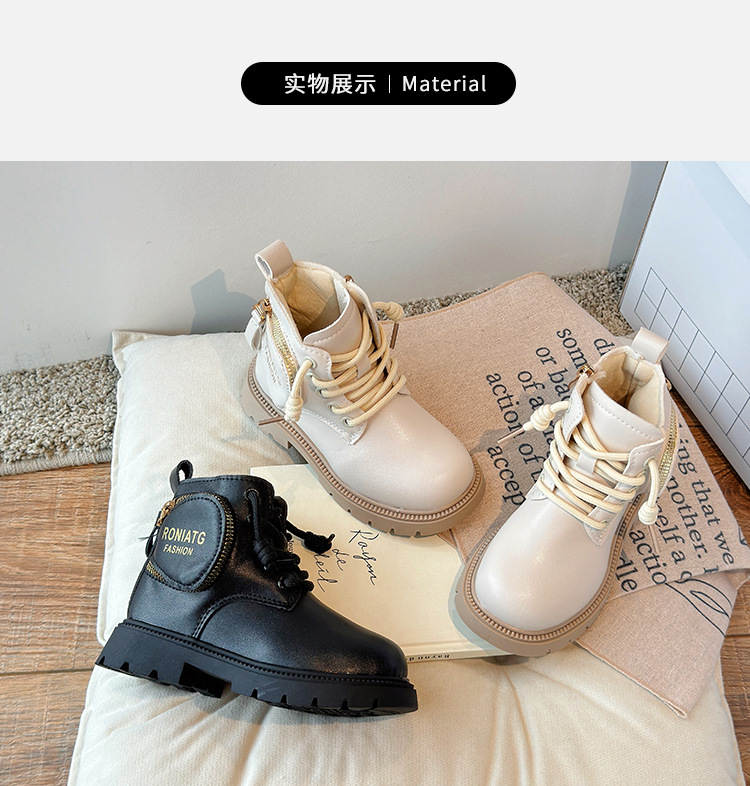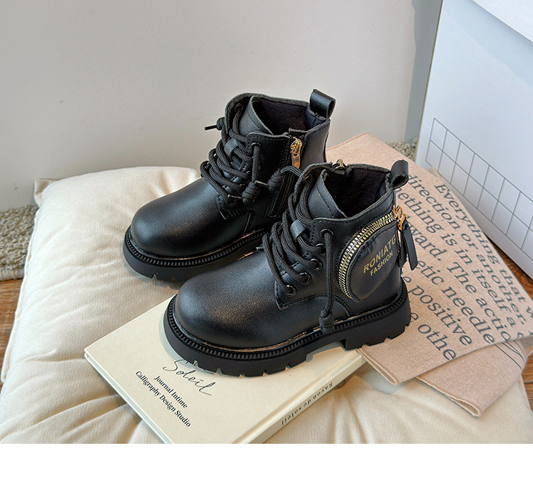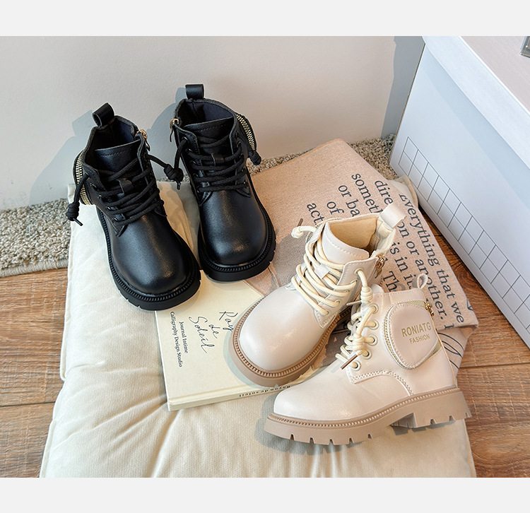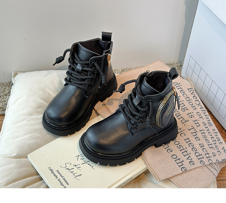 소년 영국 스타일 2024 봄과 가을 새 소녀 싱글 라이닝 편안한 사이드 지퍼 가죽 부츠 어린이 두꺼운 밑창 마틴 부츠스토어 가기