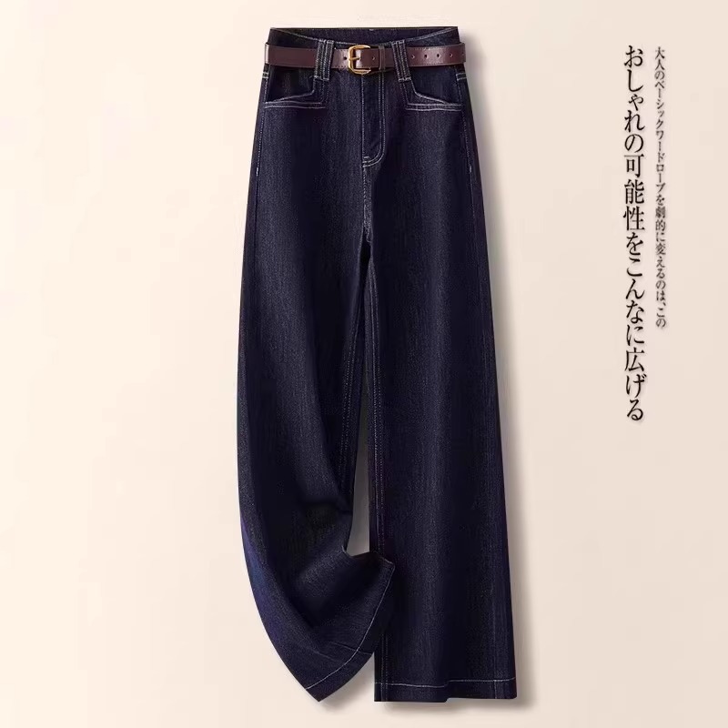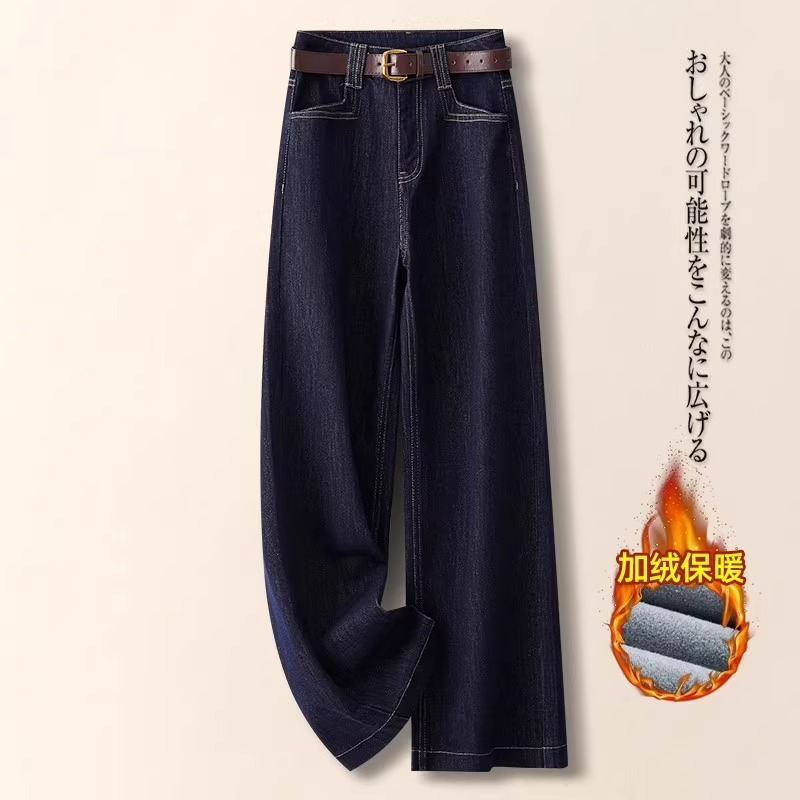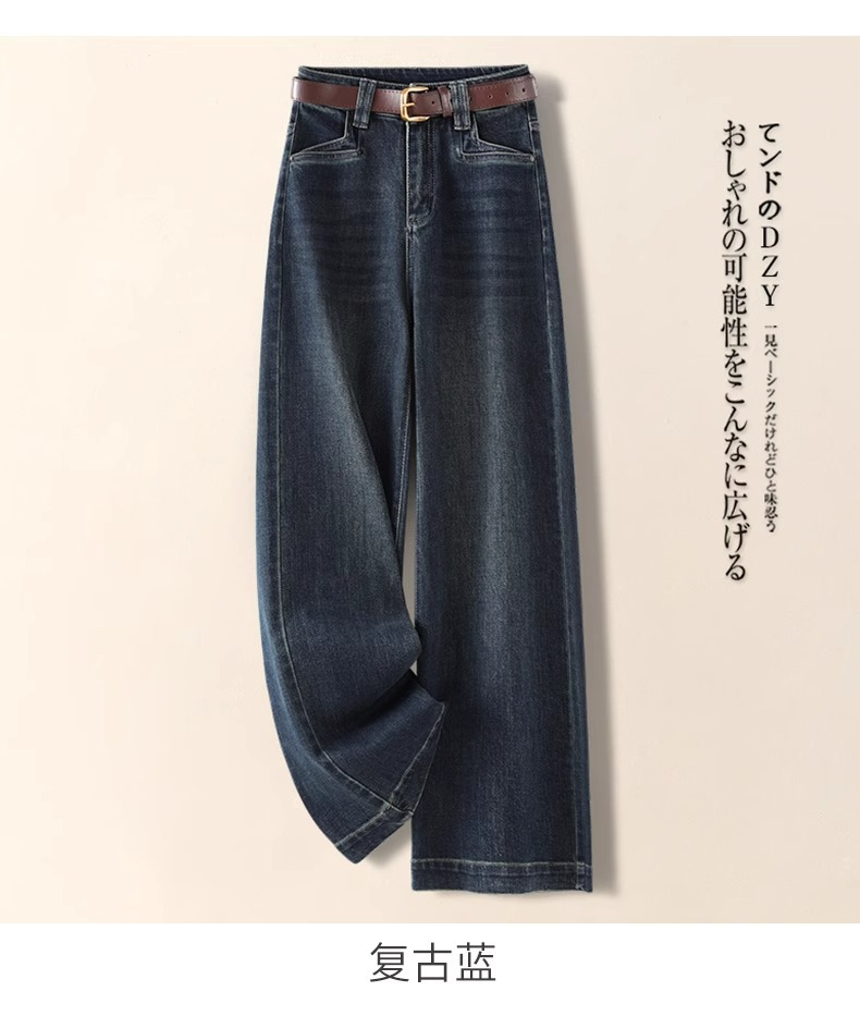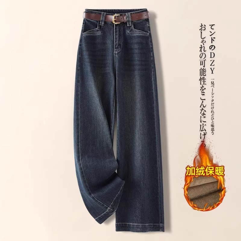 레트로 데님 블루 와이드 팬츠 여성용 가을 겨울 2025 신상 인기 루즈핏 플리스 안감 슬림핏 스트레이트 팬츠