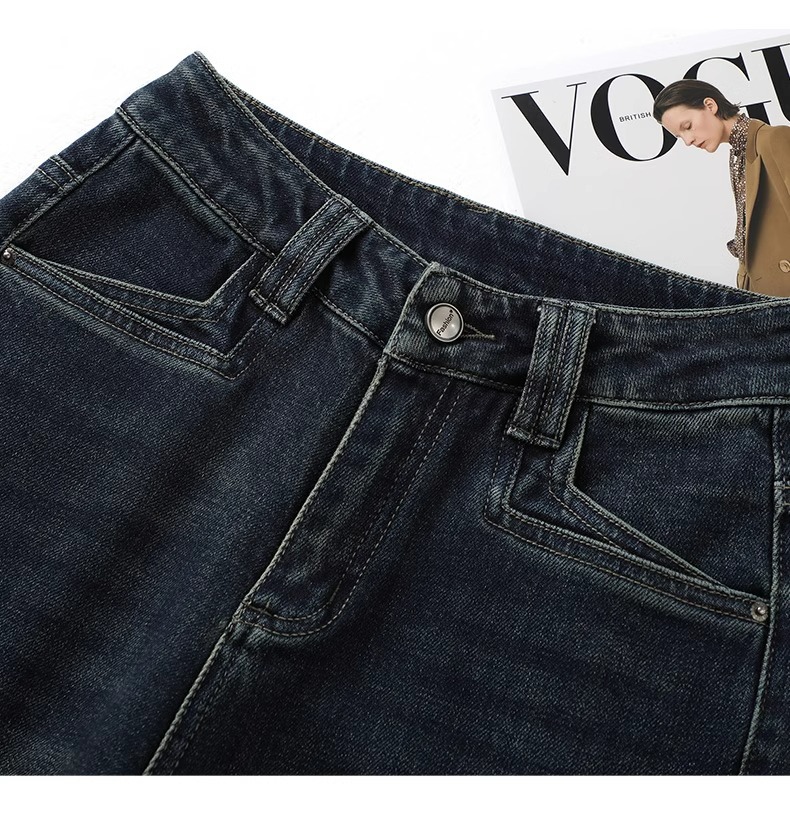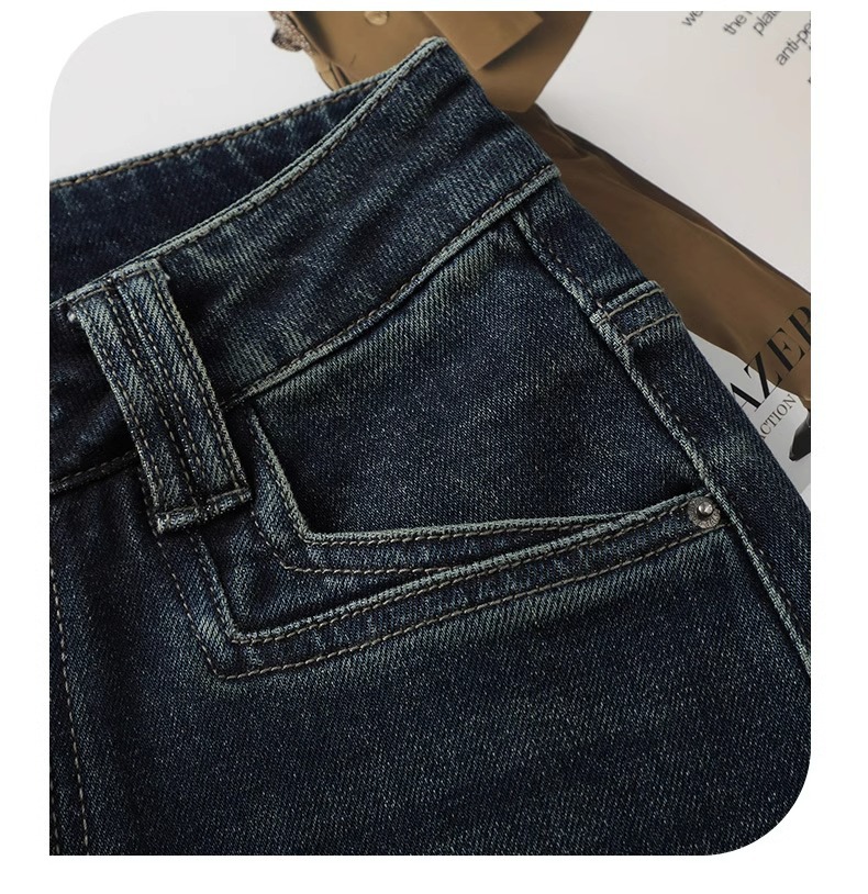 레트로 데님 블루 와이드 팬츠 여성용 가을 겨울 2025 신상 인기 루즈핏 플리스 안감 슬림핏 스트레이트 팬츠스토어 가기