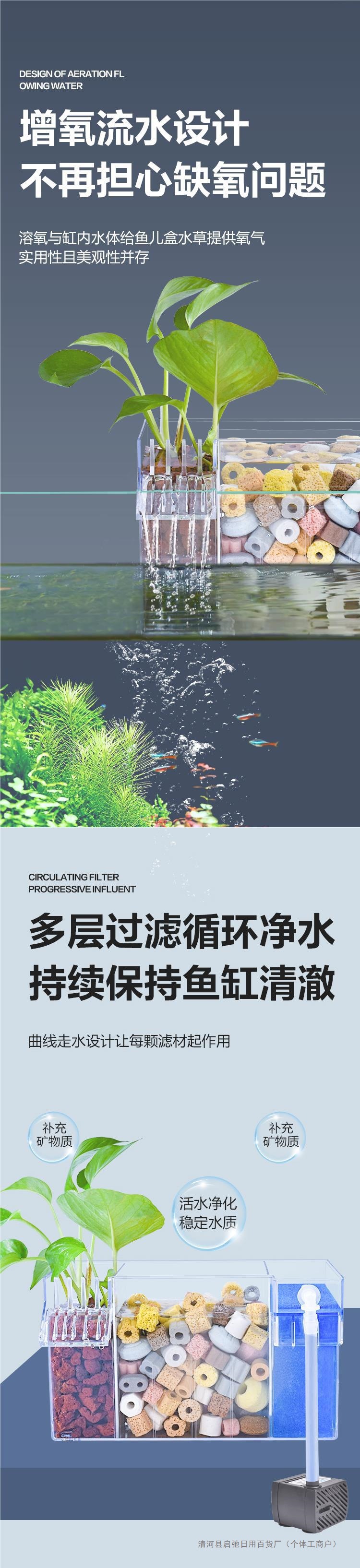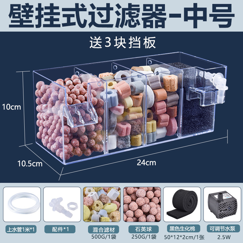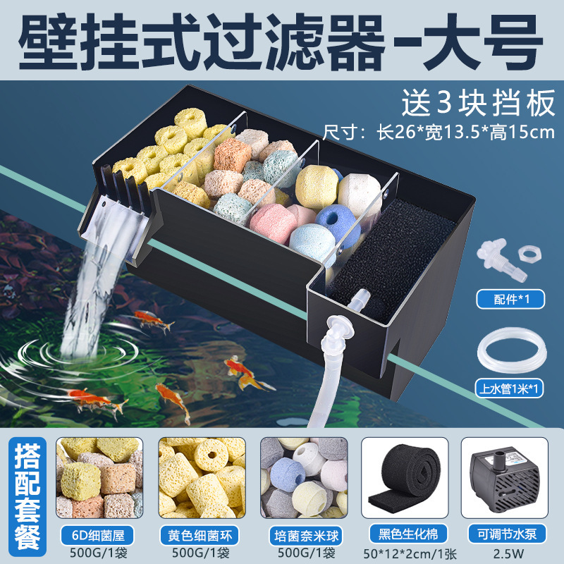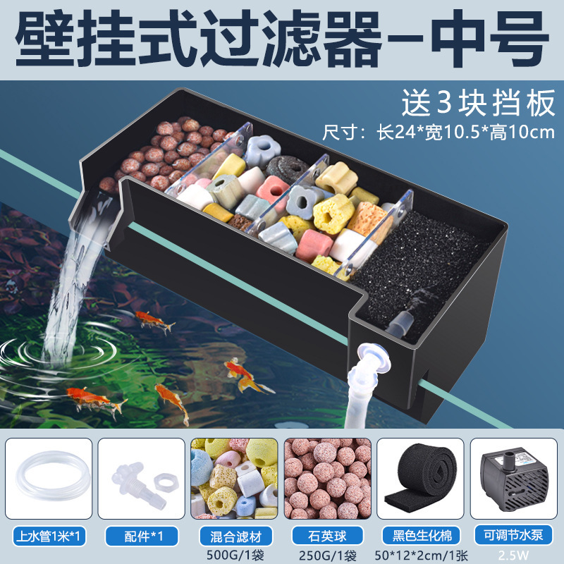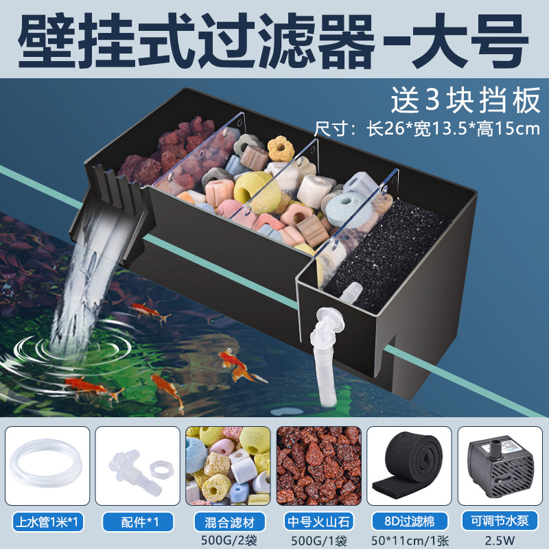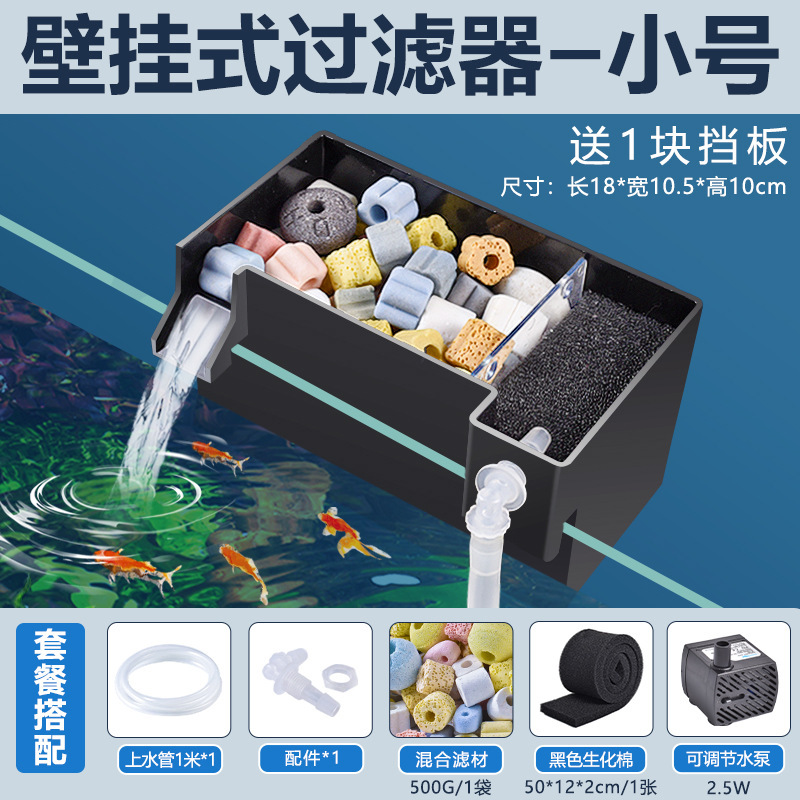 어항 벽에 장착 된 필터 정수 사이클 3 대 1 필터 상자 탱크 산소 증가 박테리아 음소거 상단 물방울 상자