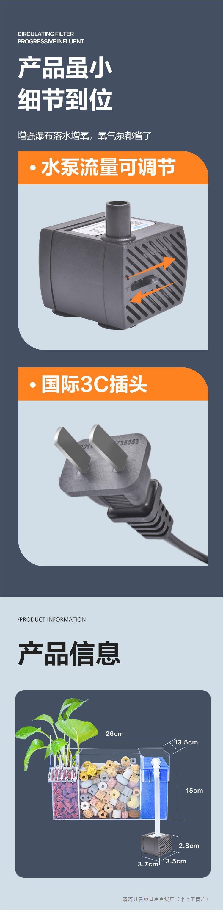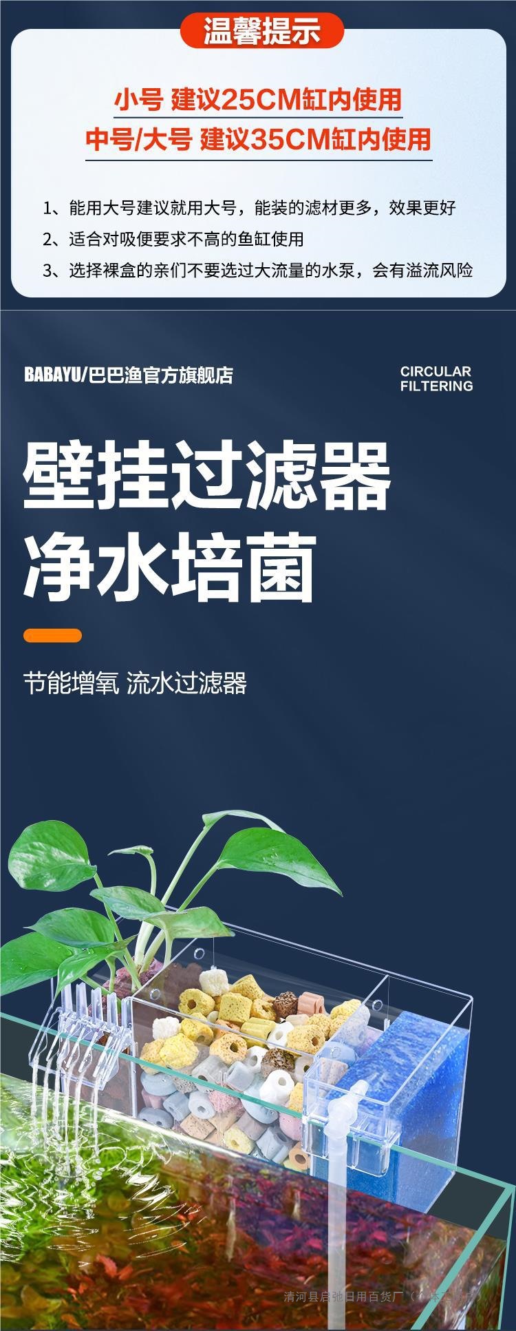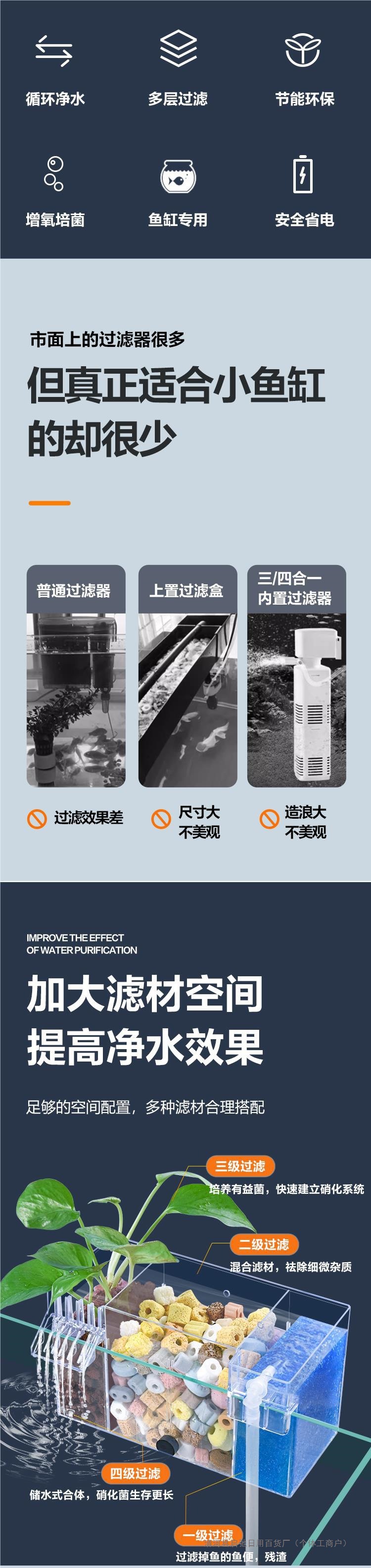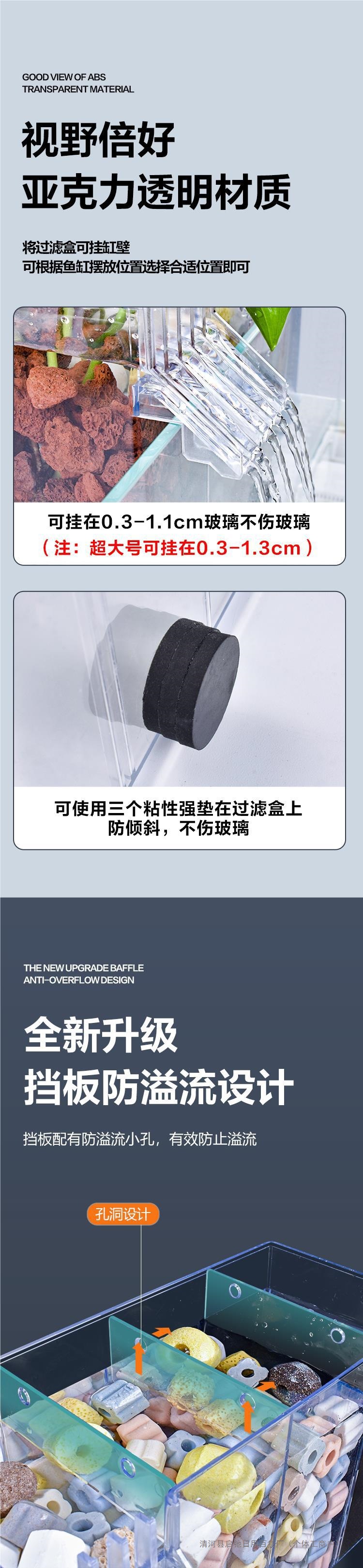 어항 벽에 장착 된 필터 정수 사이클 3 대 1 필터 상자 탱크 산소 증가 박테리아 음소거 상단 물방울 상자