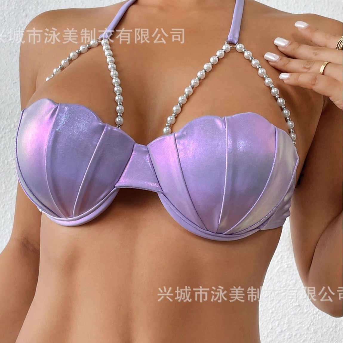 2025 새로운 국경 솔리드 컬러 스플릿 수영복 유럽과 미국의 섹시한 3 점 수영복 쉘 비키니 여성 유럽과 미국스토어 가기