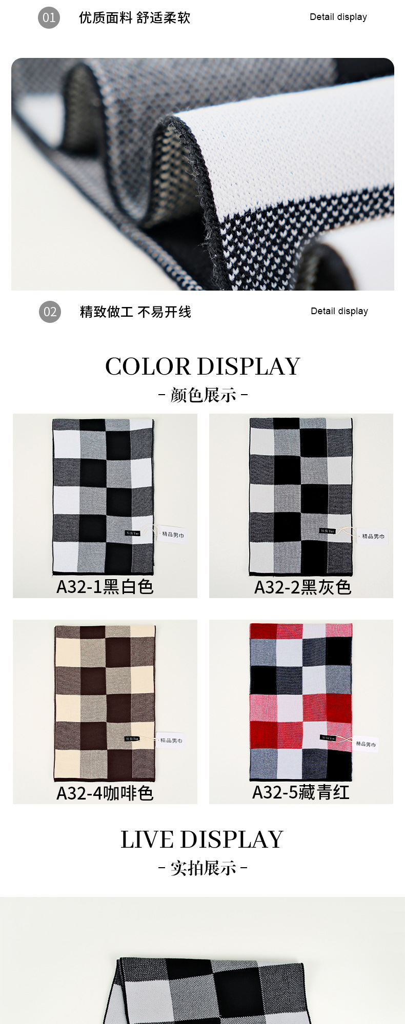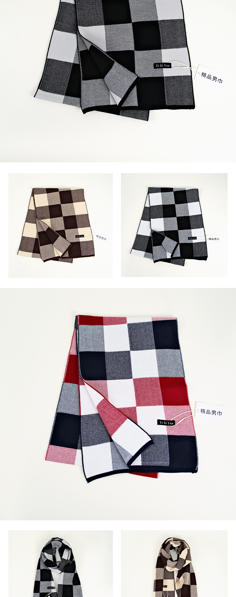 가을과 겨울 새로운 남자 스카프 광장 격자 무늬 고급 대비 컬러 캐시미어 니트 따뜻한 캐주얼 올 매치 스카프스토어 가기