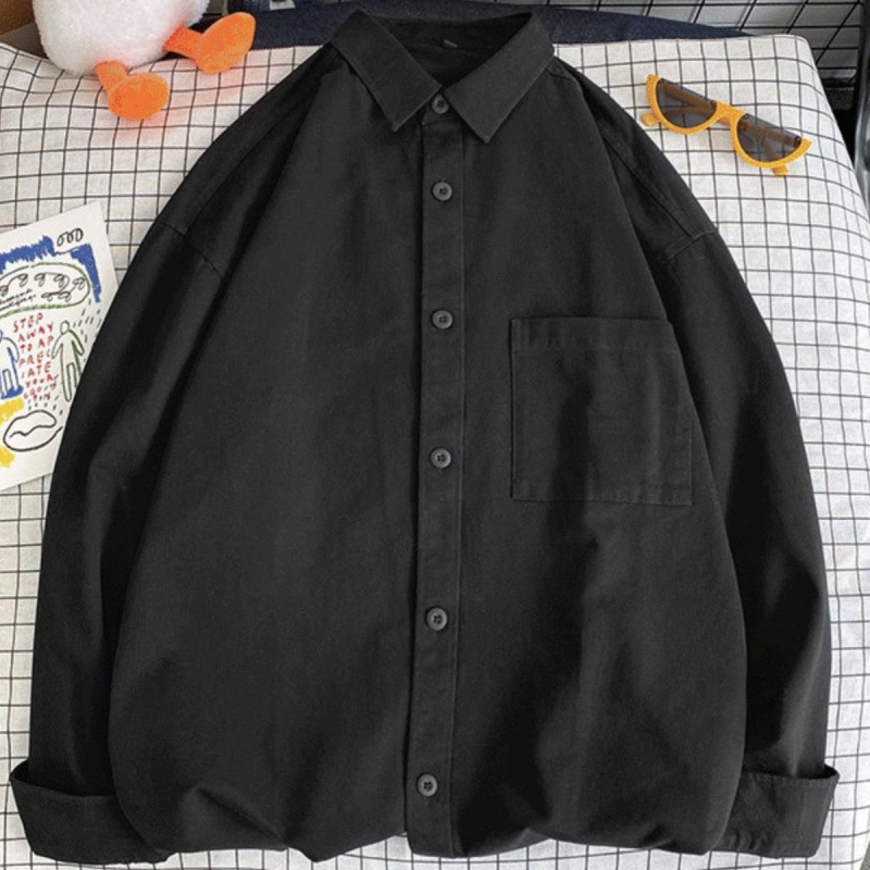 셔츠 남자 봄과 가을 한국 스타일 올 매치 솔리드 컬러 느슨한 내부 긴팔 셔츠 패션 아카데미 스타일 플러스 사이즈 재킷스토어 가기