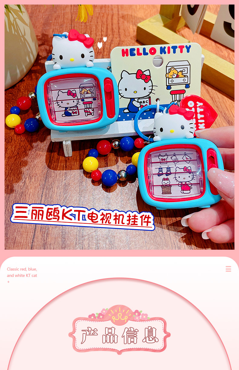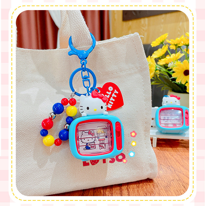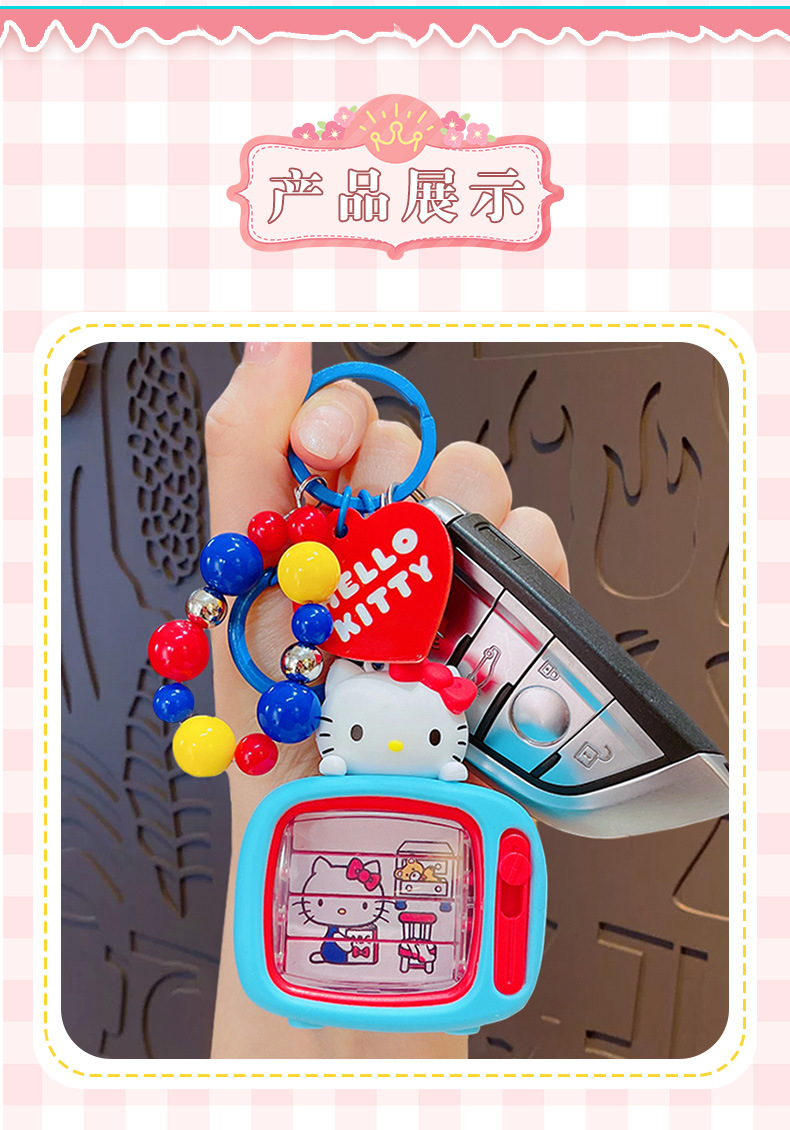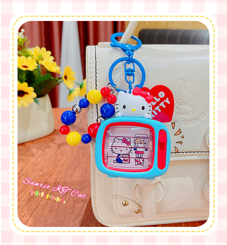 정품 산리오 KT 고양이 TV 키 체인 인형 펜던트 여성 만화 커플 자동차 키 체인 작은 펜던트스토어 가기