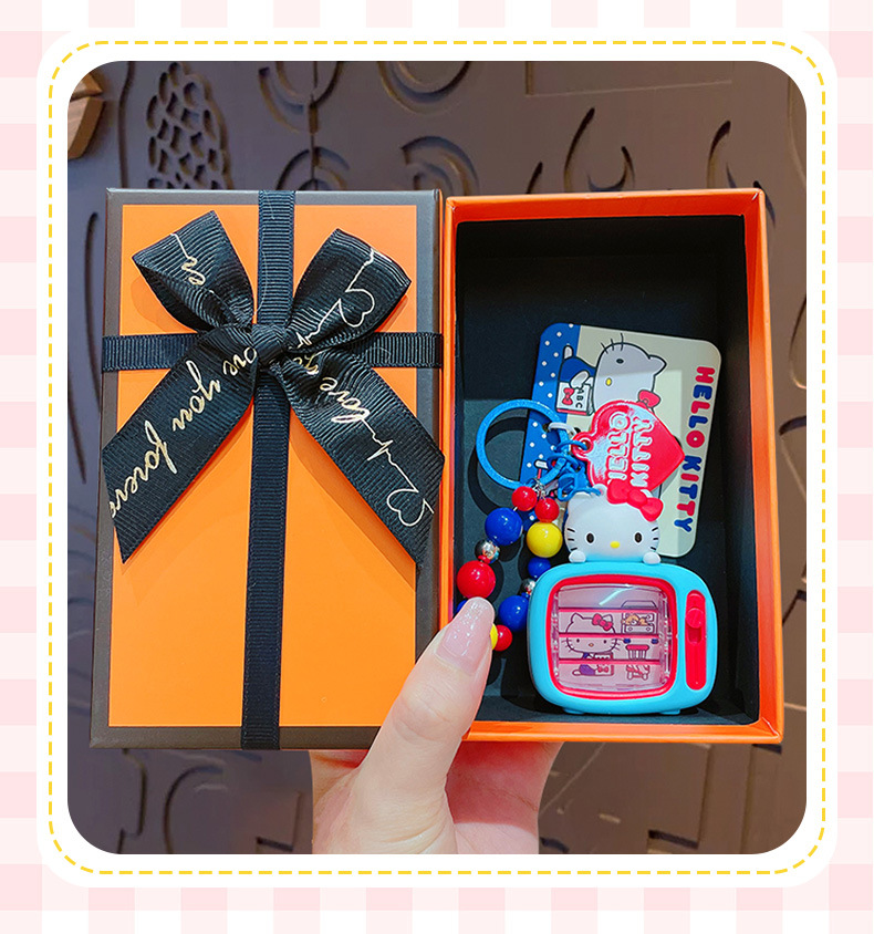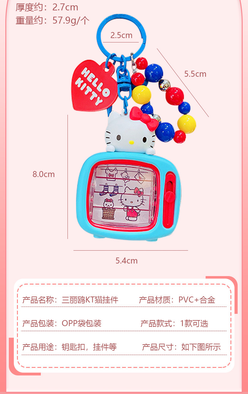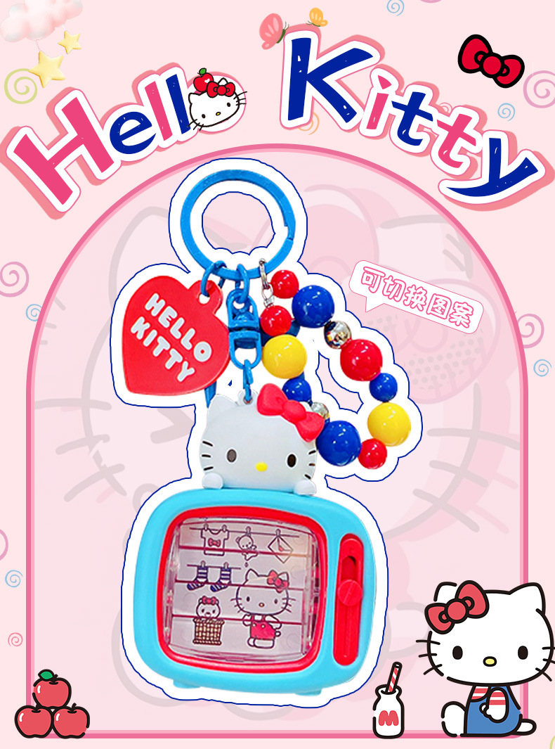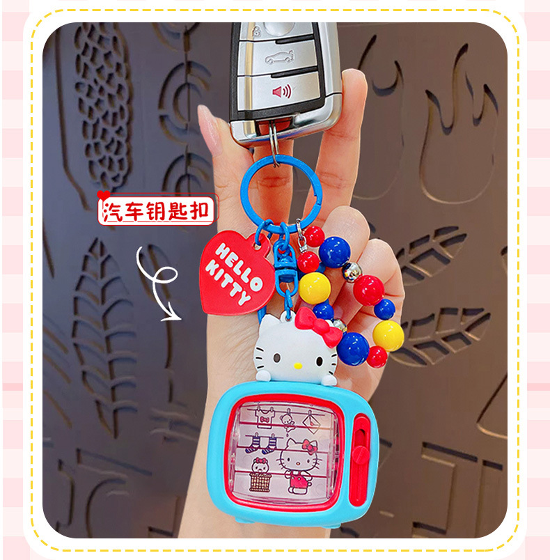 정품 산리오 KT 고양이 TV 키 체인 인형 펜던트 여성 만화 커플 자동차 키 체인 작은 펜던트스토어 가기