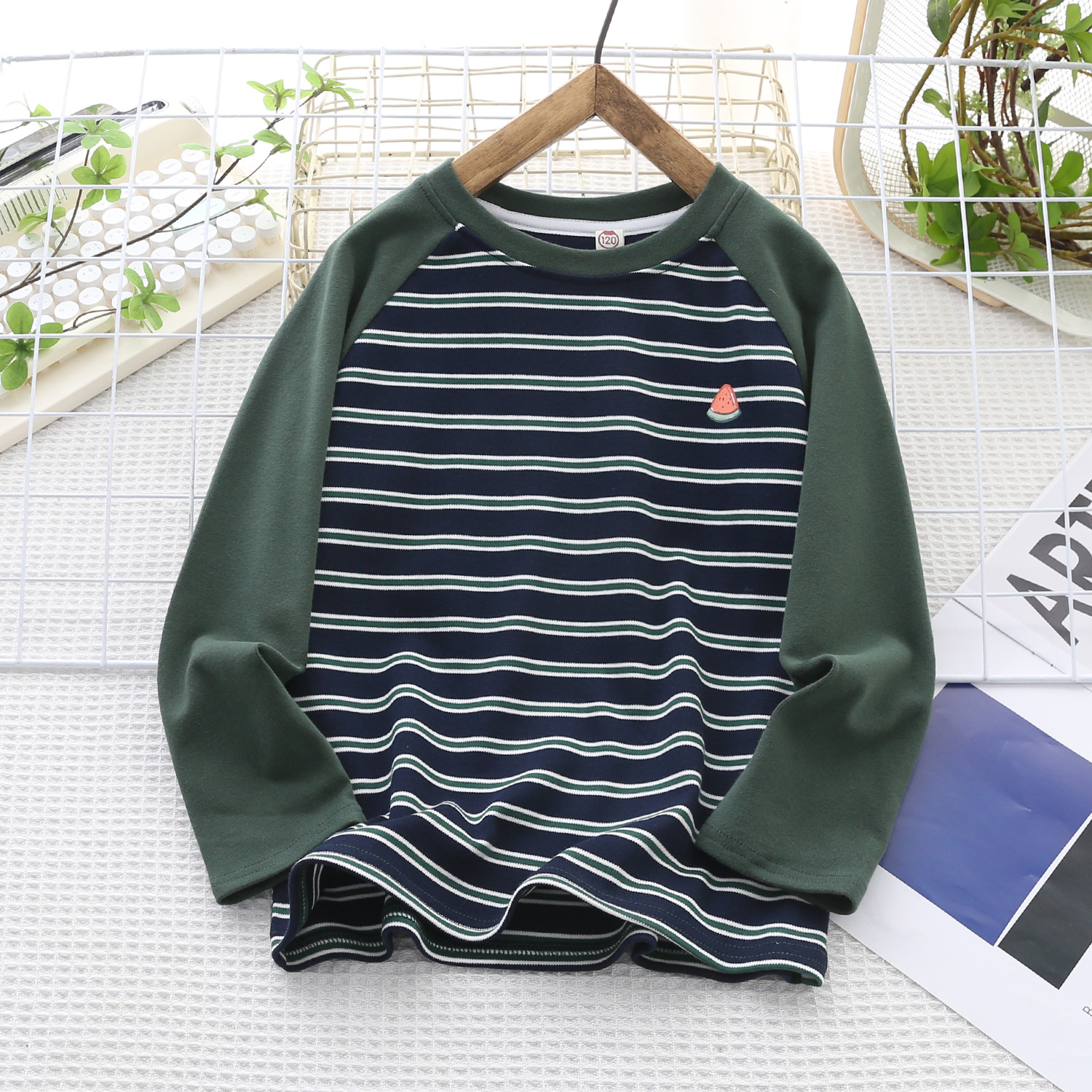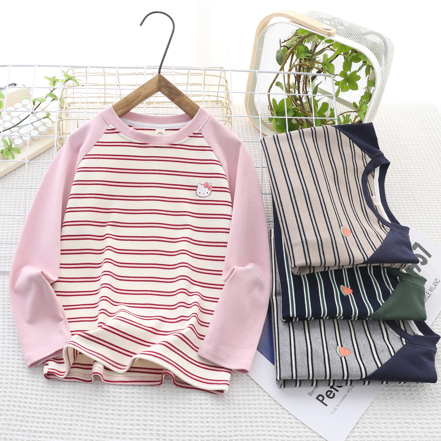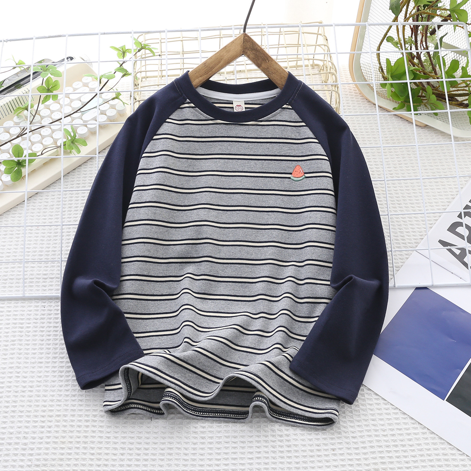 백업 셔츠 소년 스트라이프 스웨터 봄 2025 새로운 라운드 넥 아동복 외부 착용 조커 캐주얼 재킷 도매스토어 가기