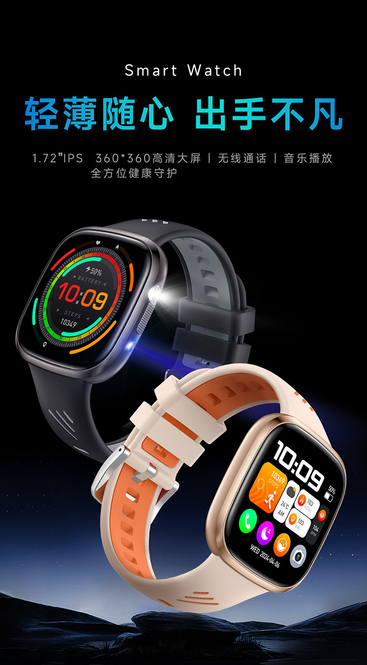 국경을 넘는 HT31 스마트워치 심박수 블루투스 통화 LED 손전등 맞춤형 다이얼 만보계 스포츠 시계