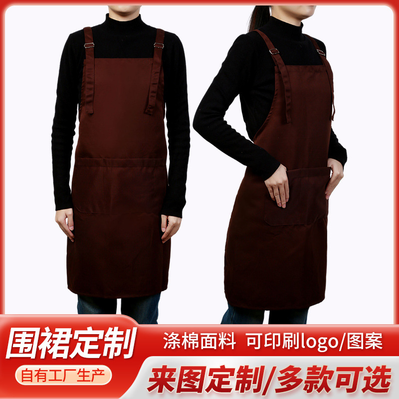 폴리 에스터 코튼 스트랩 앞치마 맞춤형 주방 가사 스커트 케이터링 우유 차 커피 숍 턱받이 멀티 컬러 옵션스토어 가기