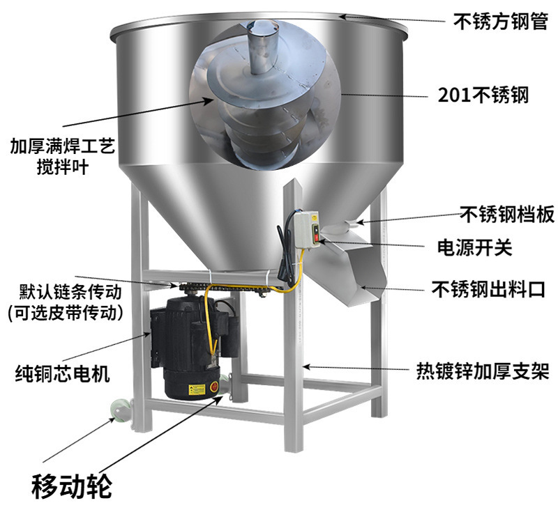 스테인레스 스틸 피드 믹서 플라스틱 과립 혼합 혼합 약 혼합 비료 믹서 종자 코팅 가정용 농장스토어 가기