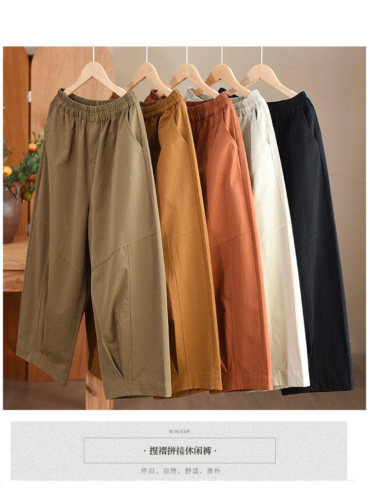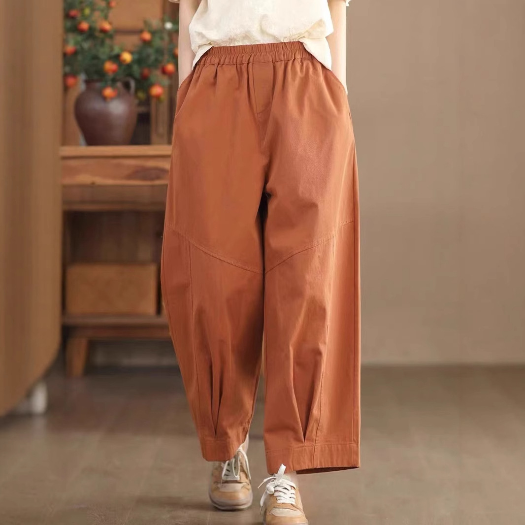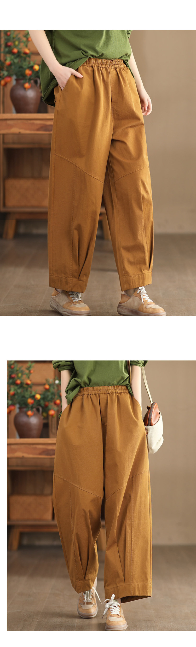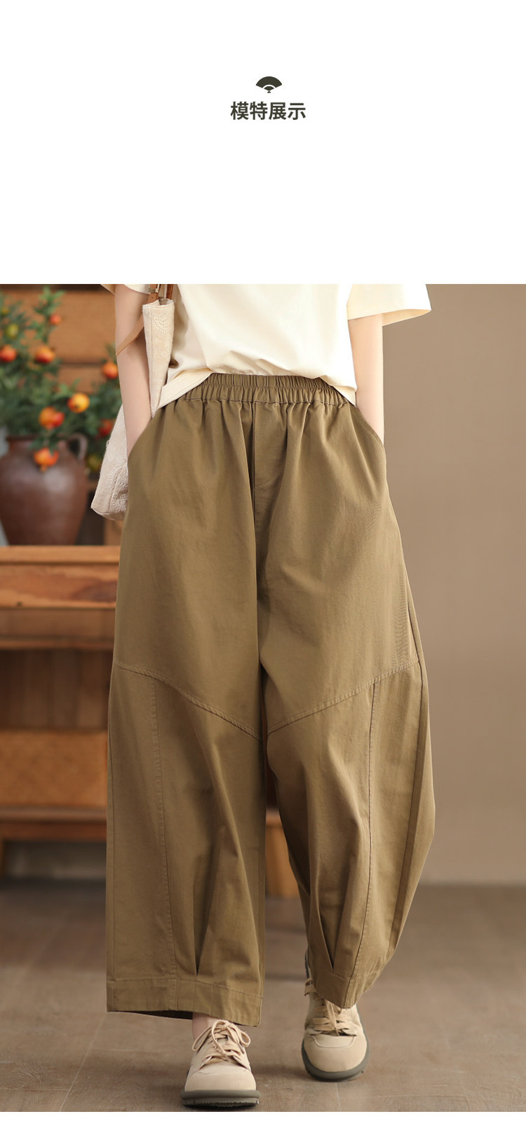 3 차원 바느질 코튼 캐주얼 바지 여성의 느슨한 느슨한 단색 예술적 할린 바지스토어 가기