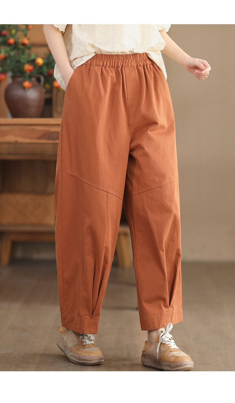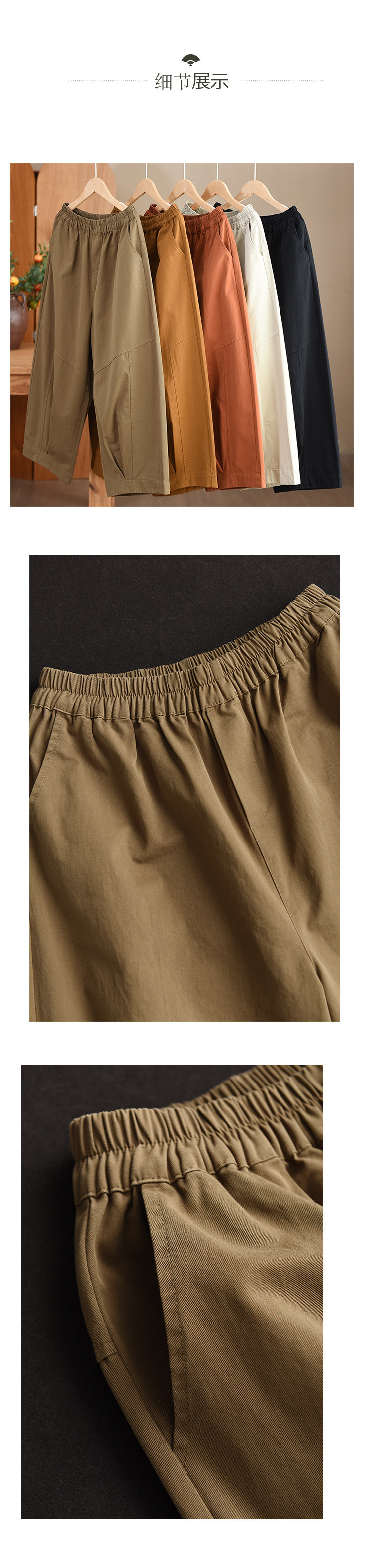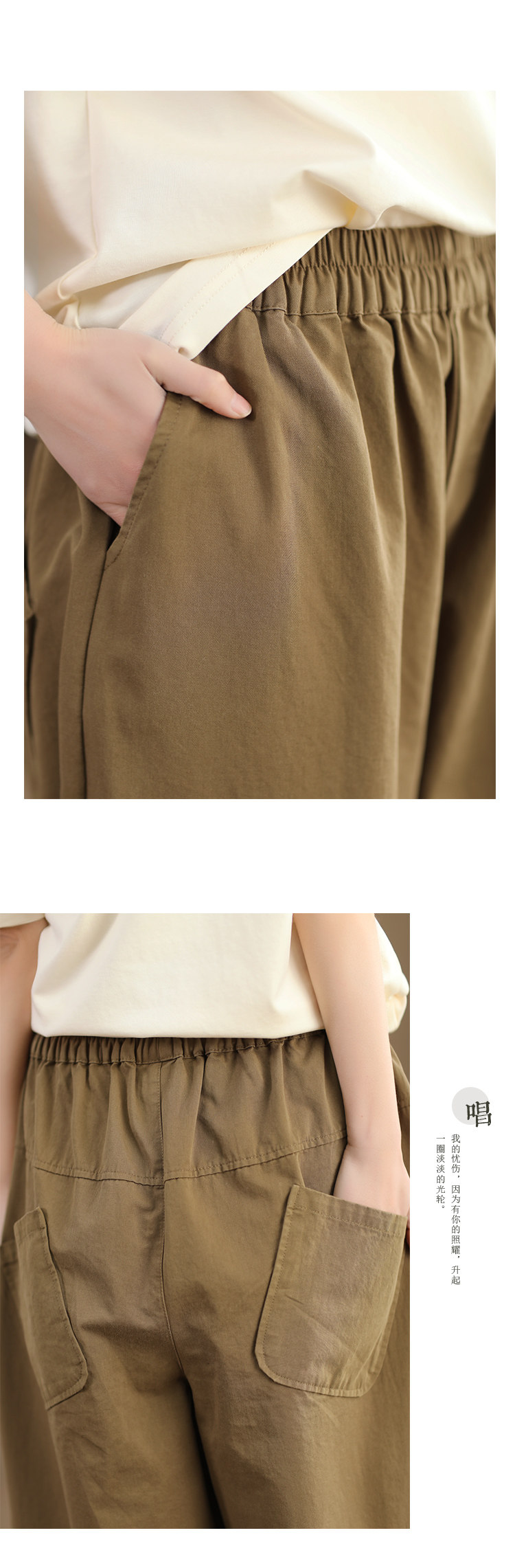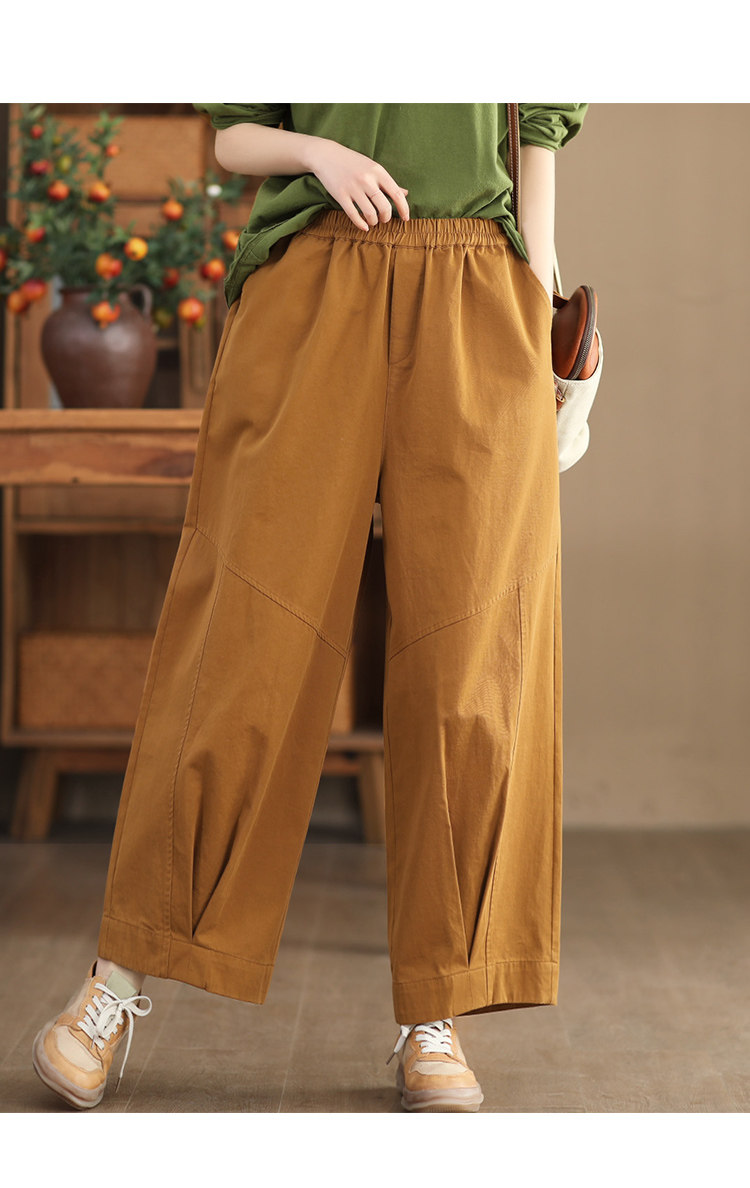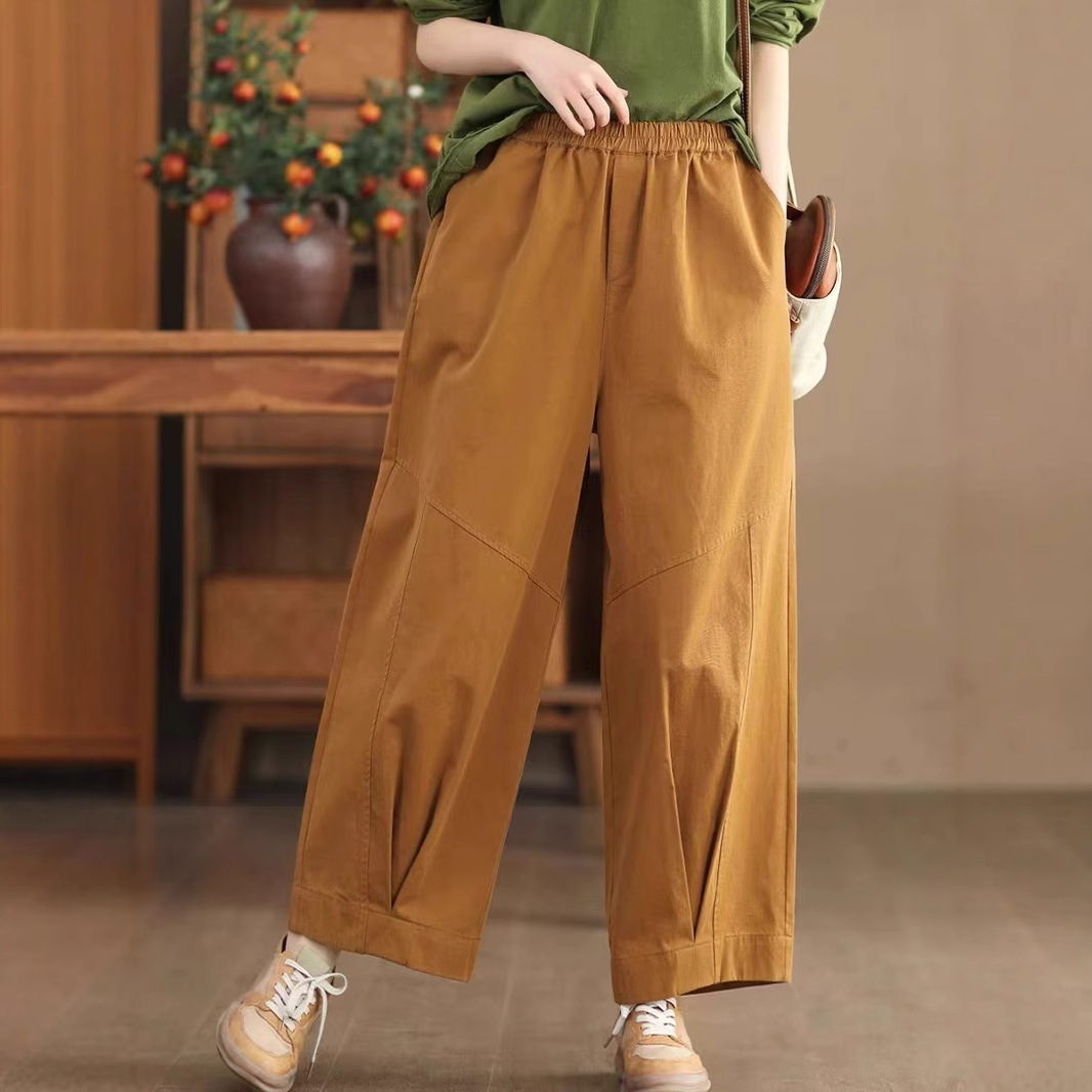 3 차원 바느질 코튼 캐주얼 바지 여성의 느슨한 느슨한 단색 예술적 할린 바지스토어 가기