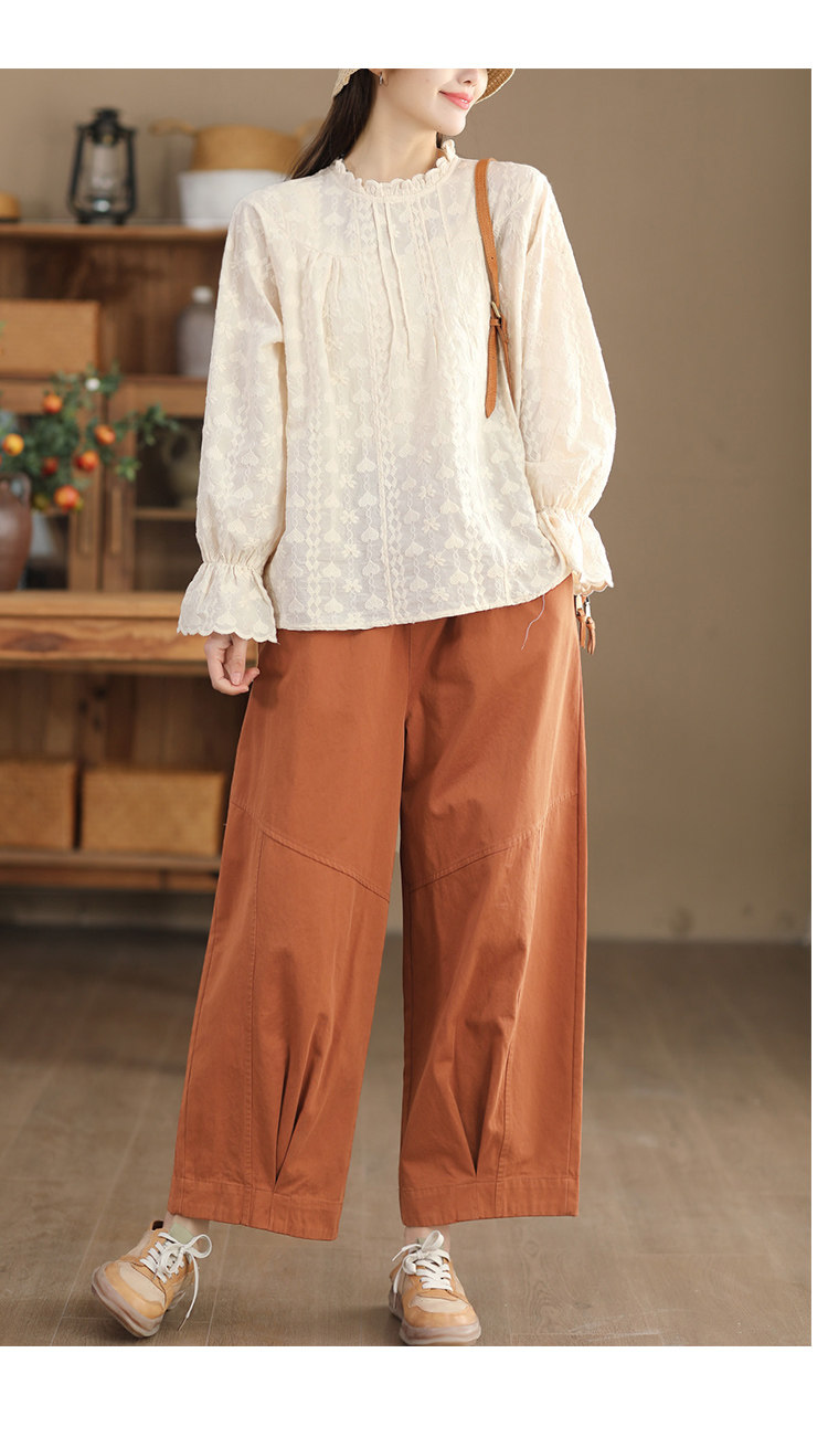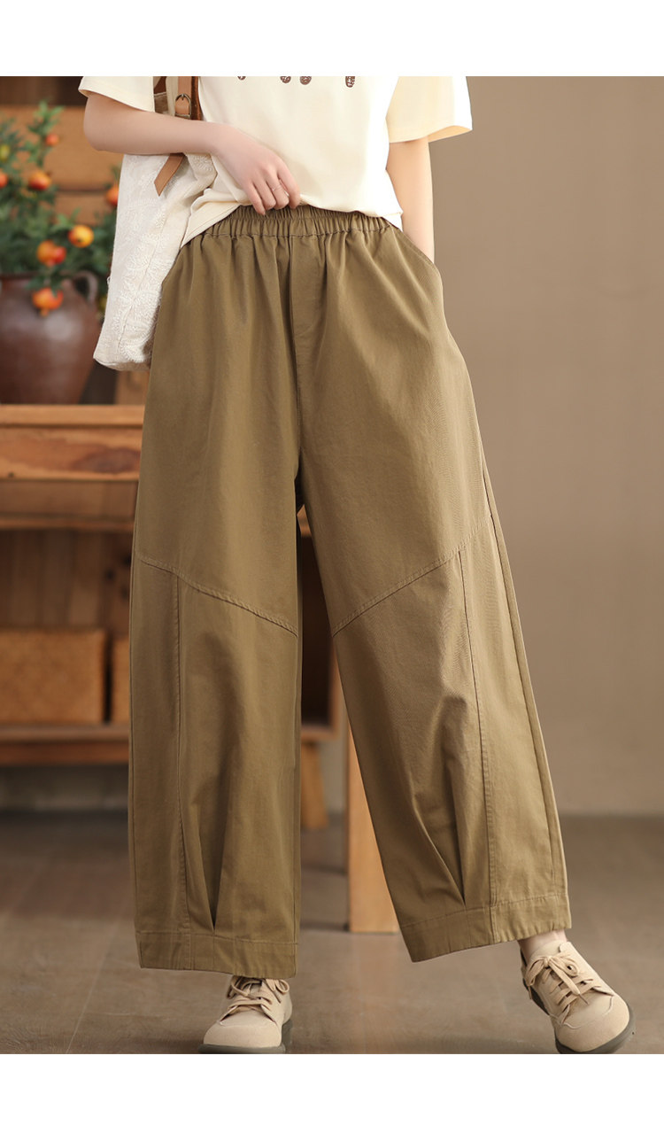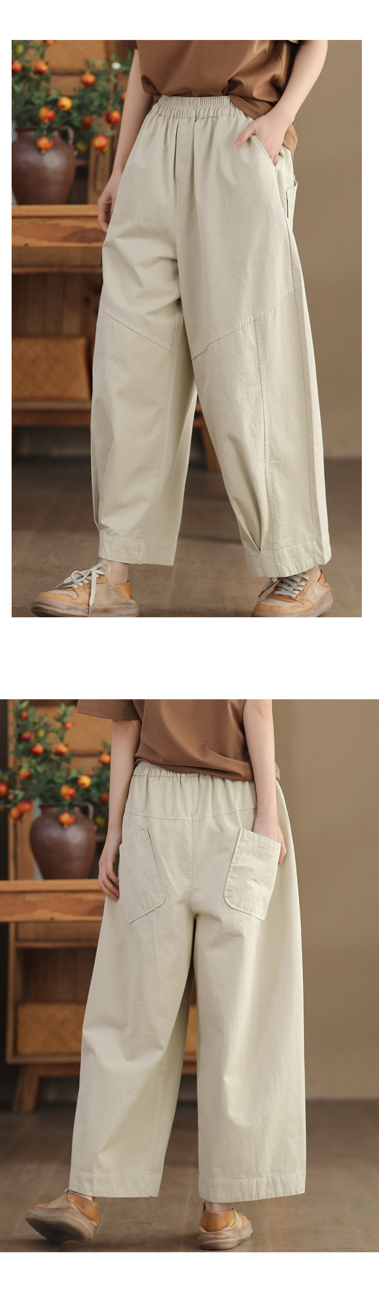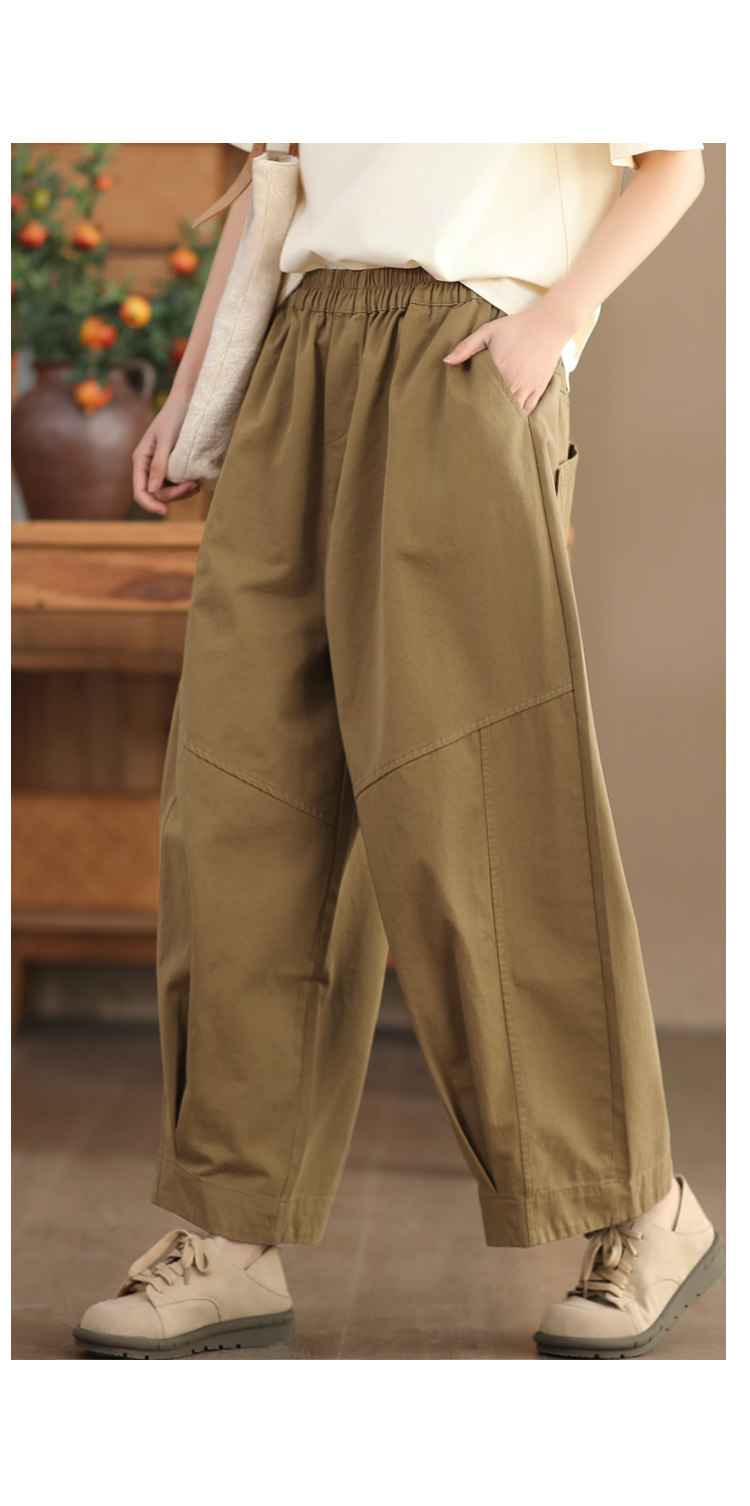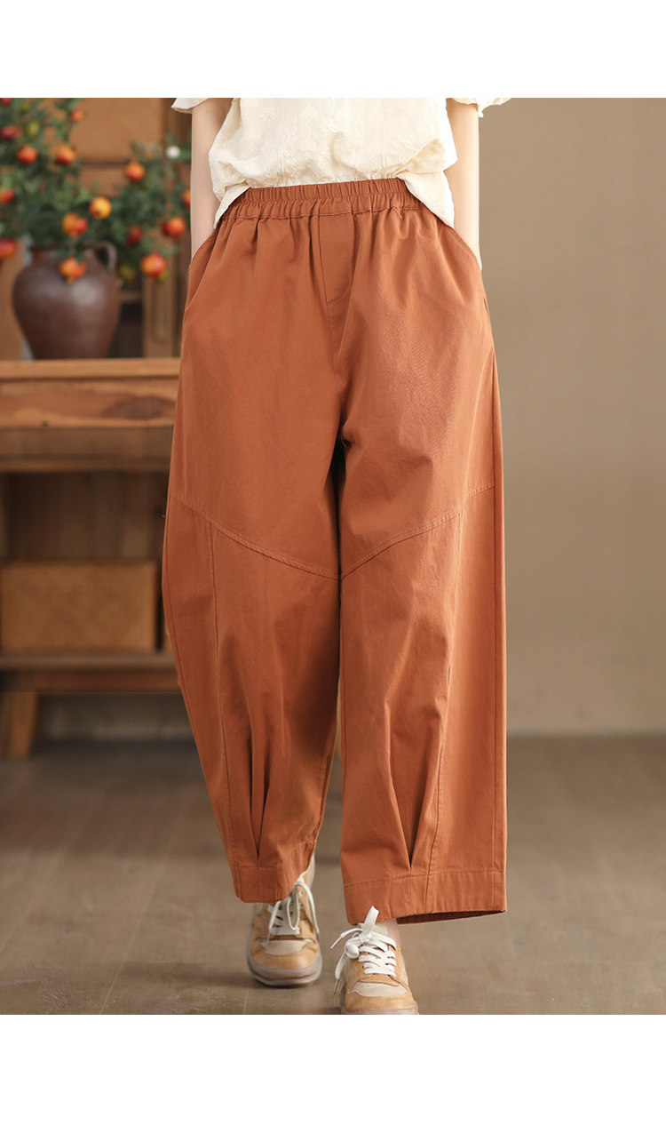 3 차원 바느질 코튼 캐주얼 바지 여성의 느슨한 느슨한 단색 예술적 할린 바지스토어 가기