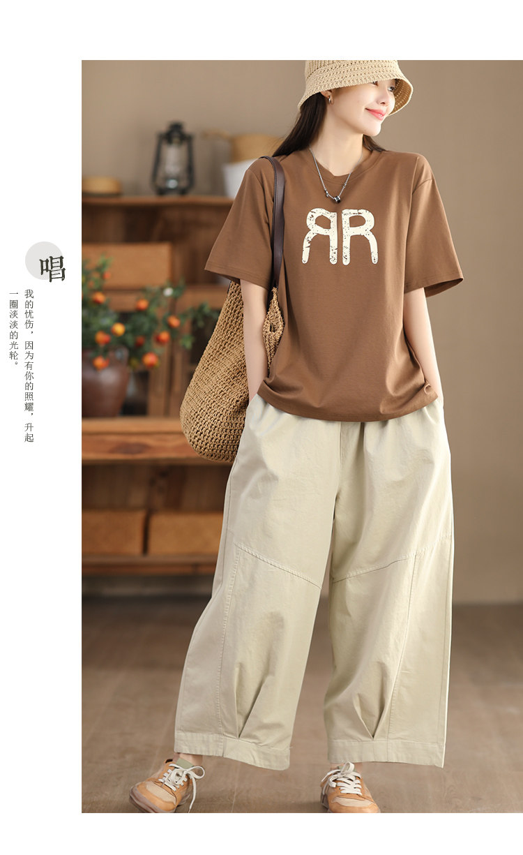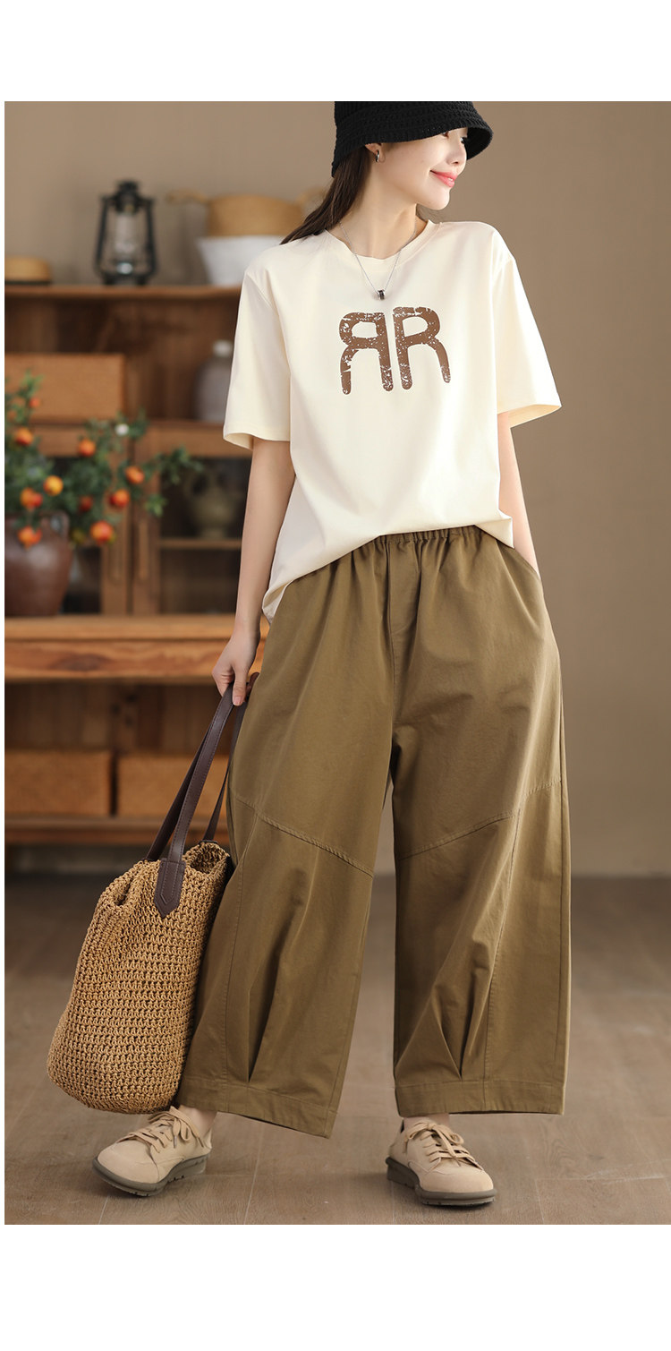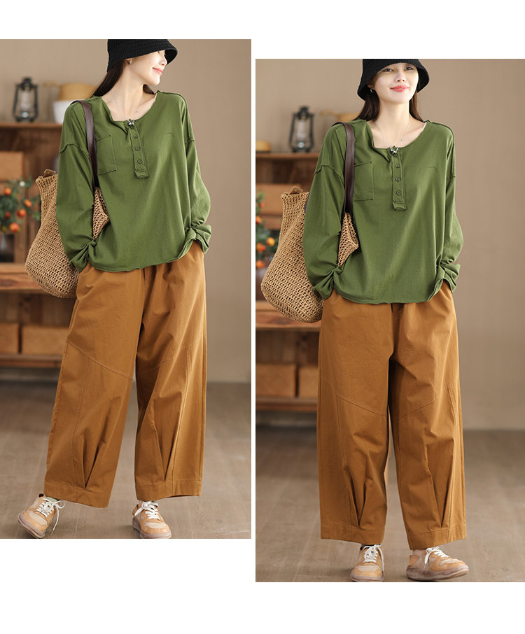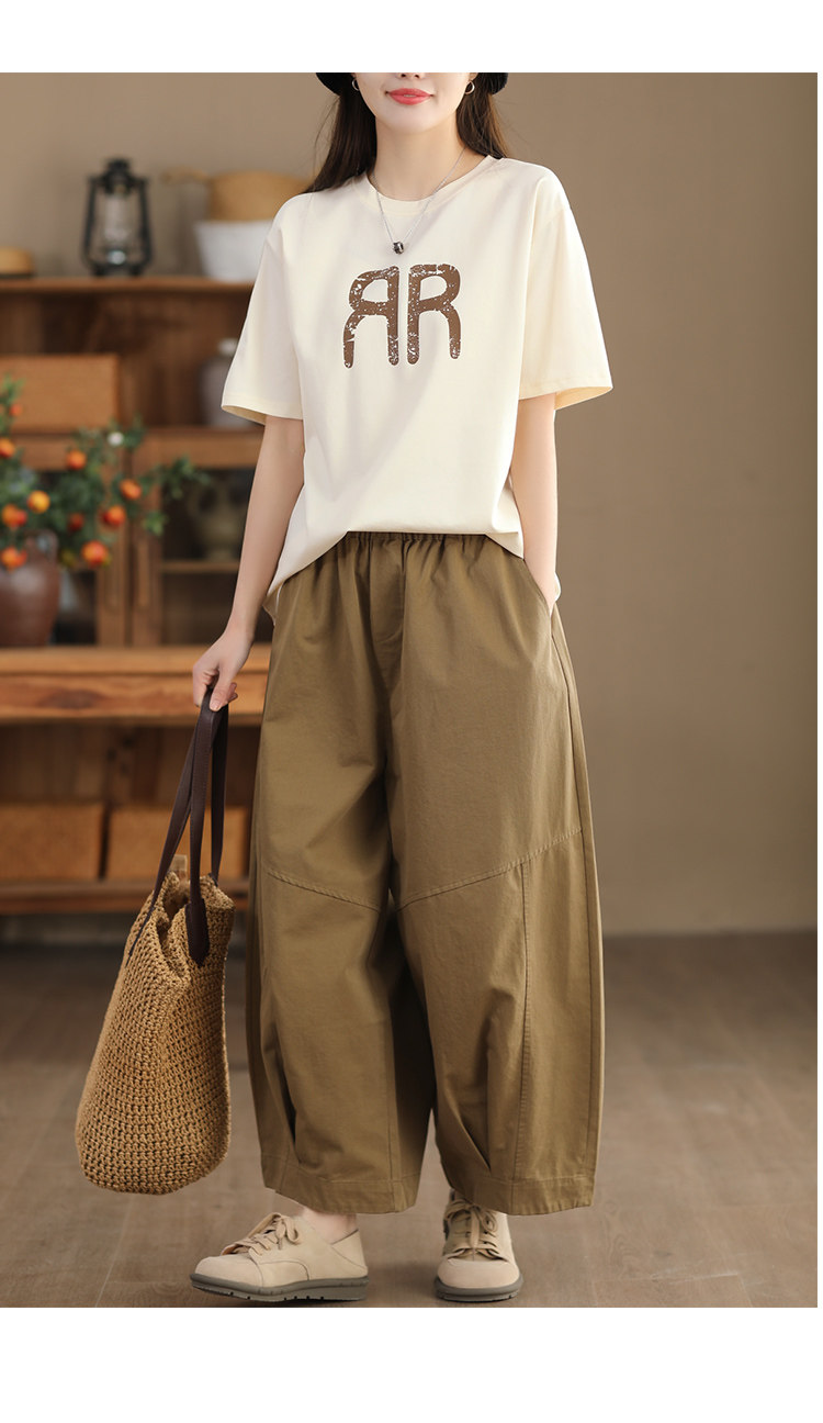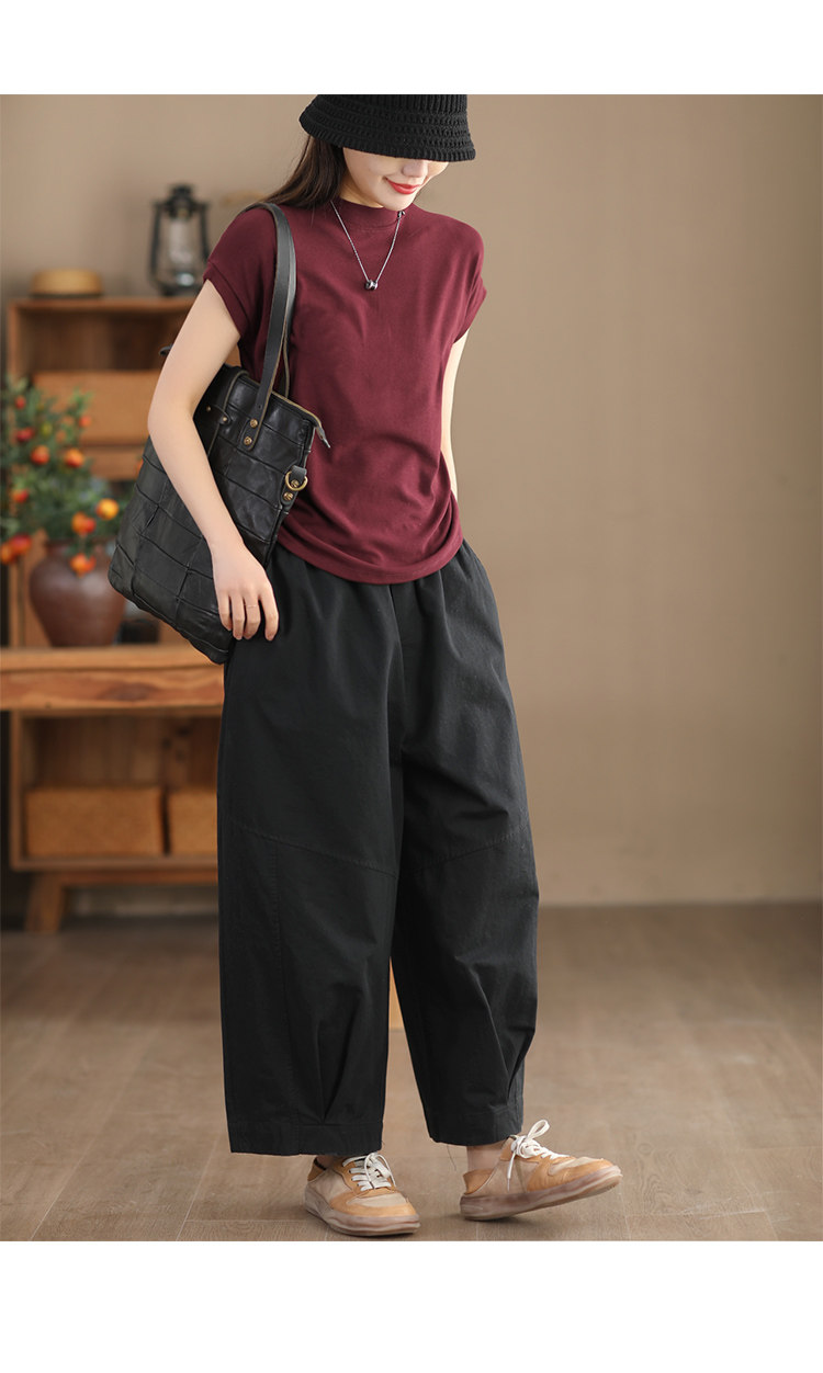 3 차원 바느질 코튼 캐주얼 바지 여성의 느슨한 느슨한 단색 예술적 할린 바지스토어 가기